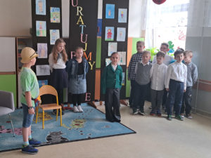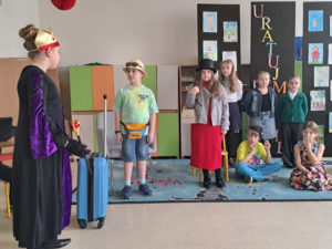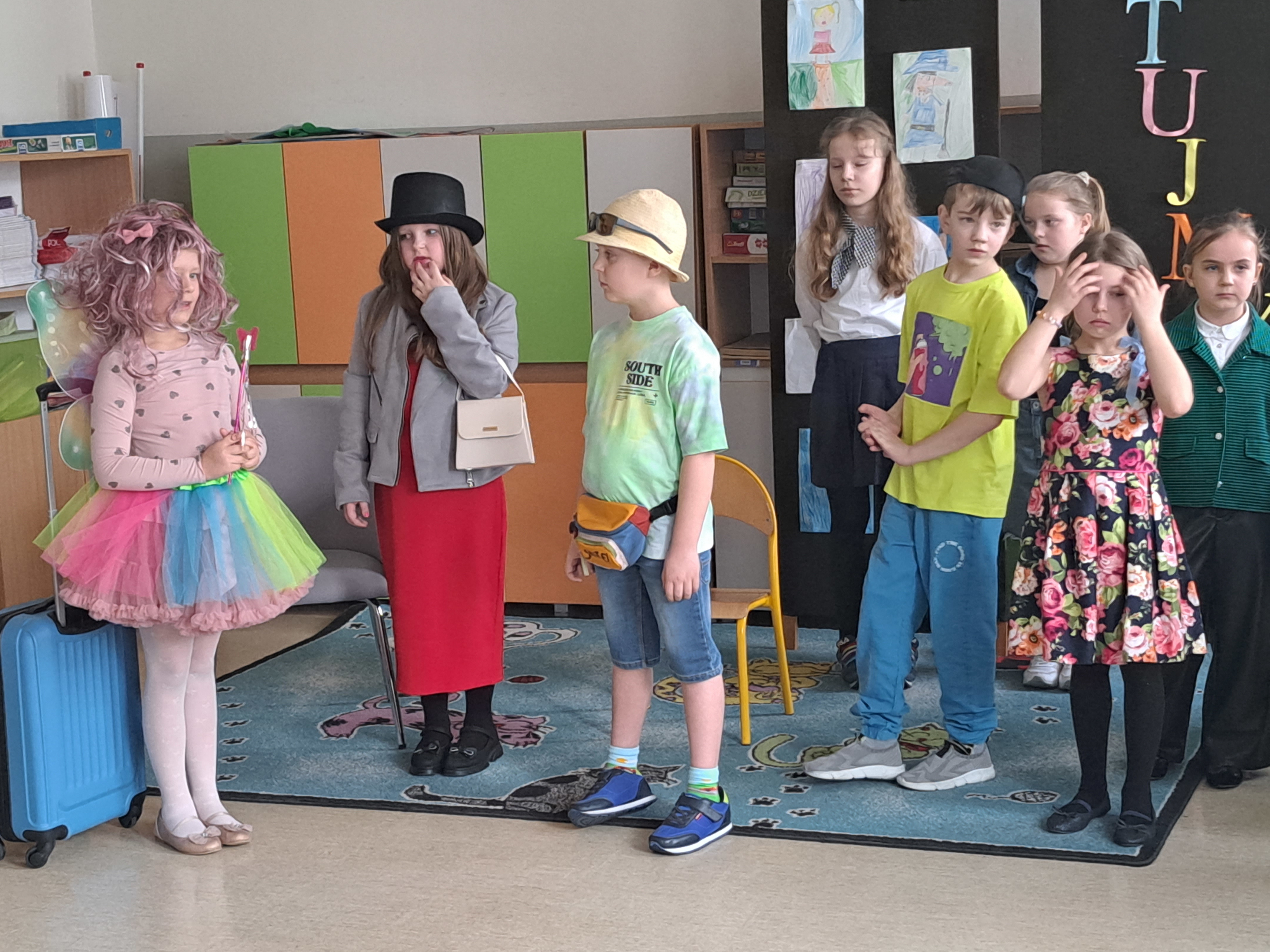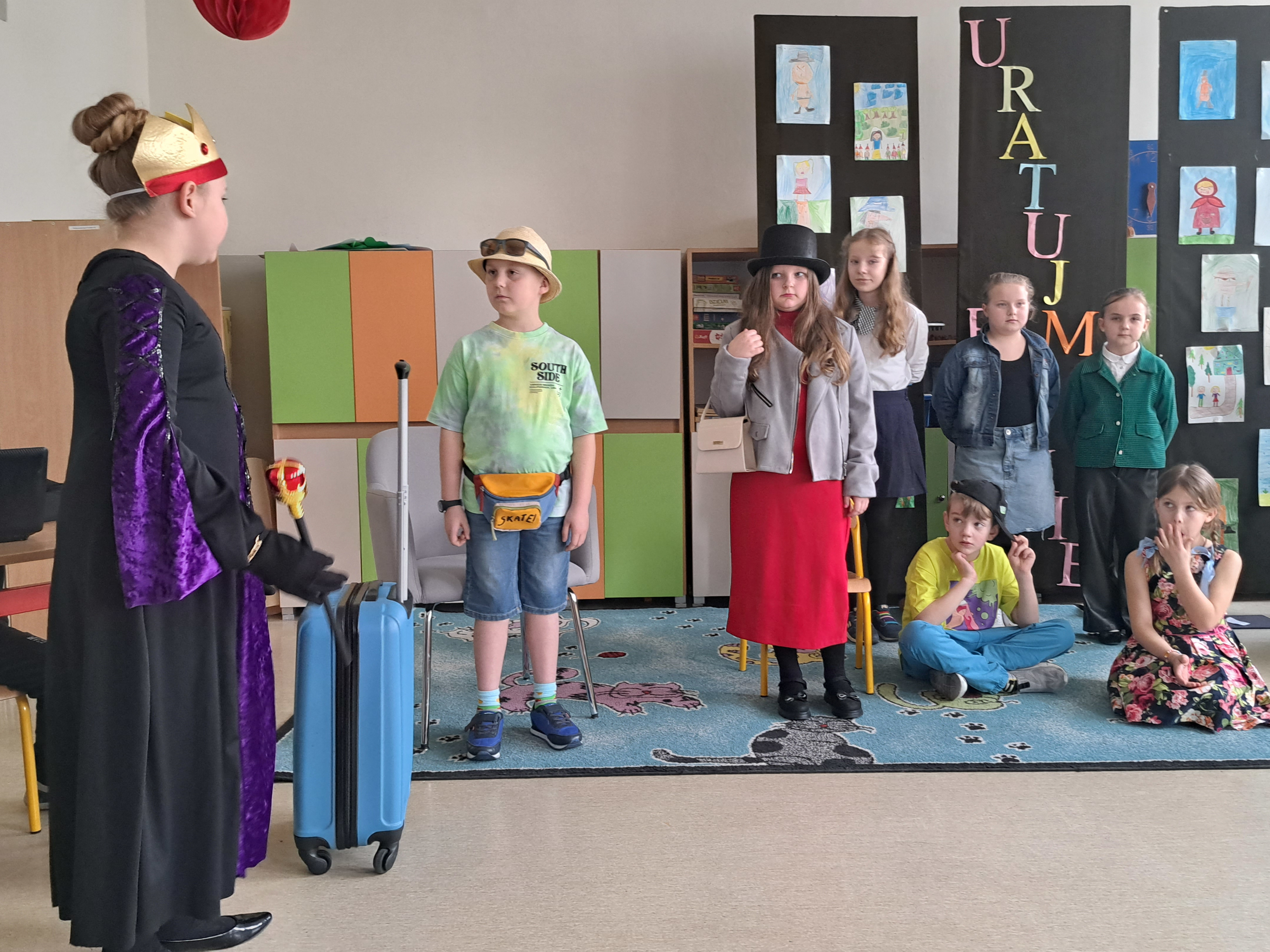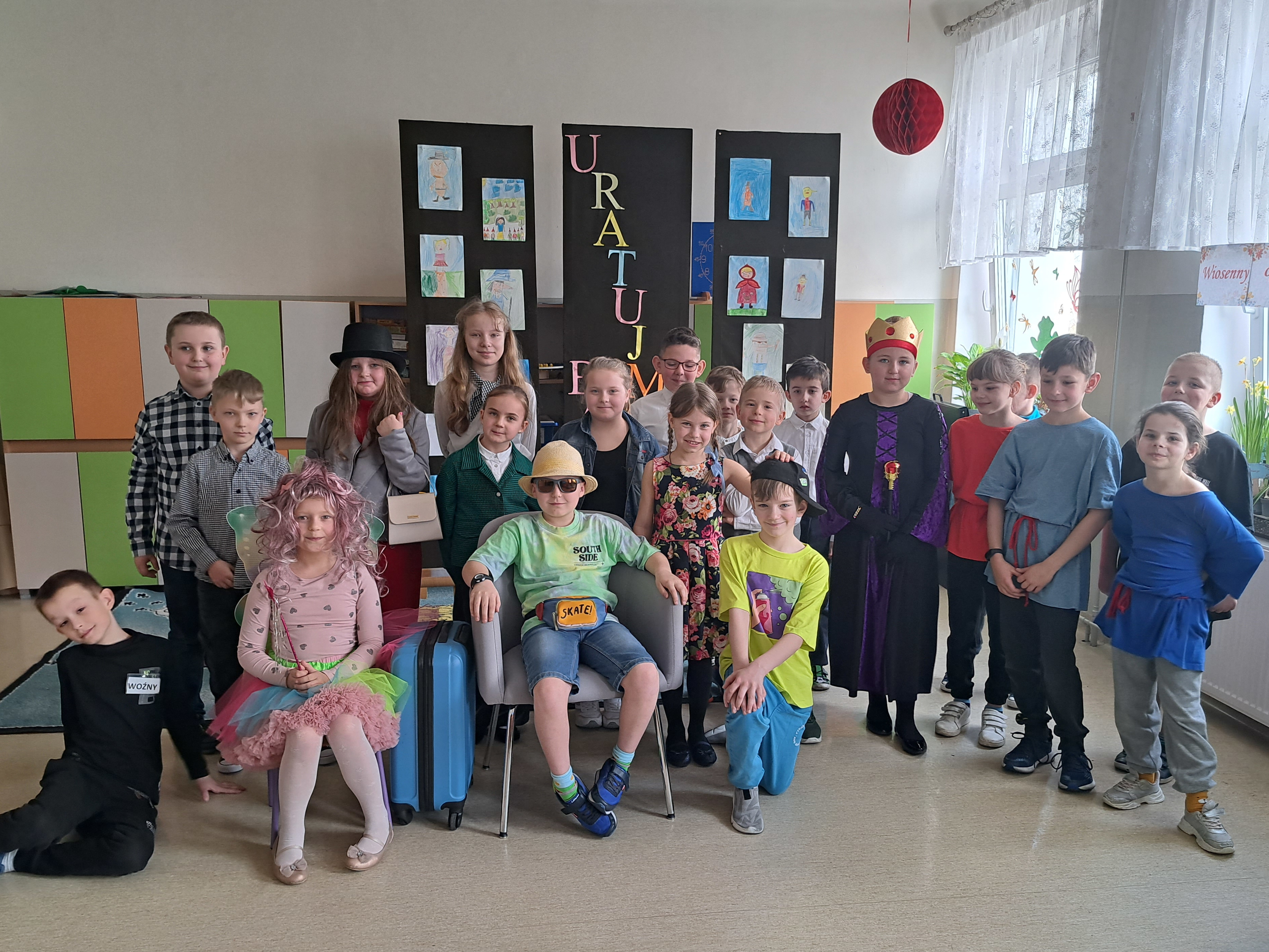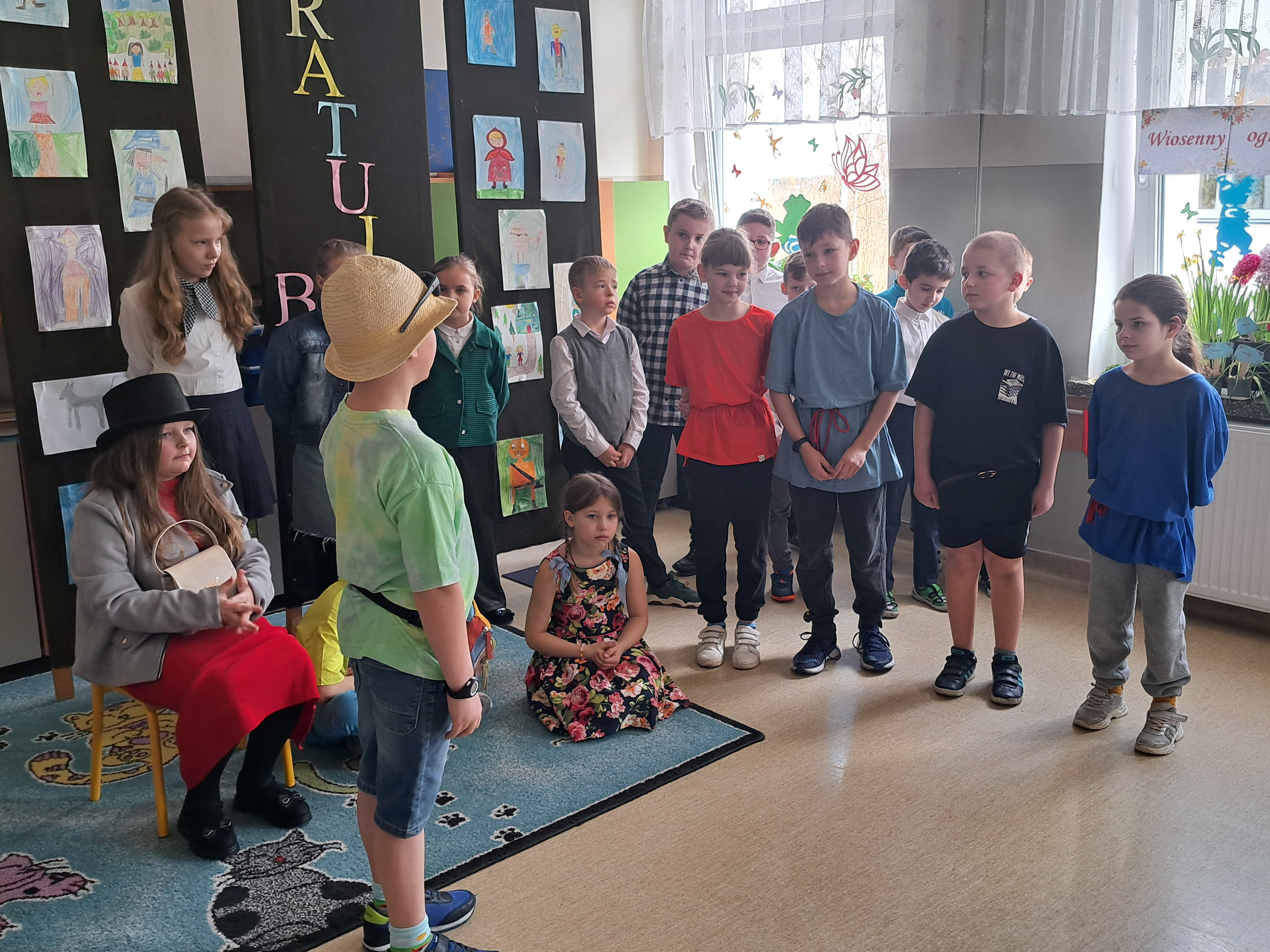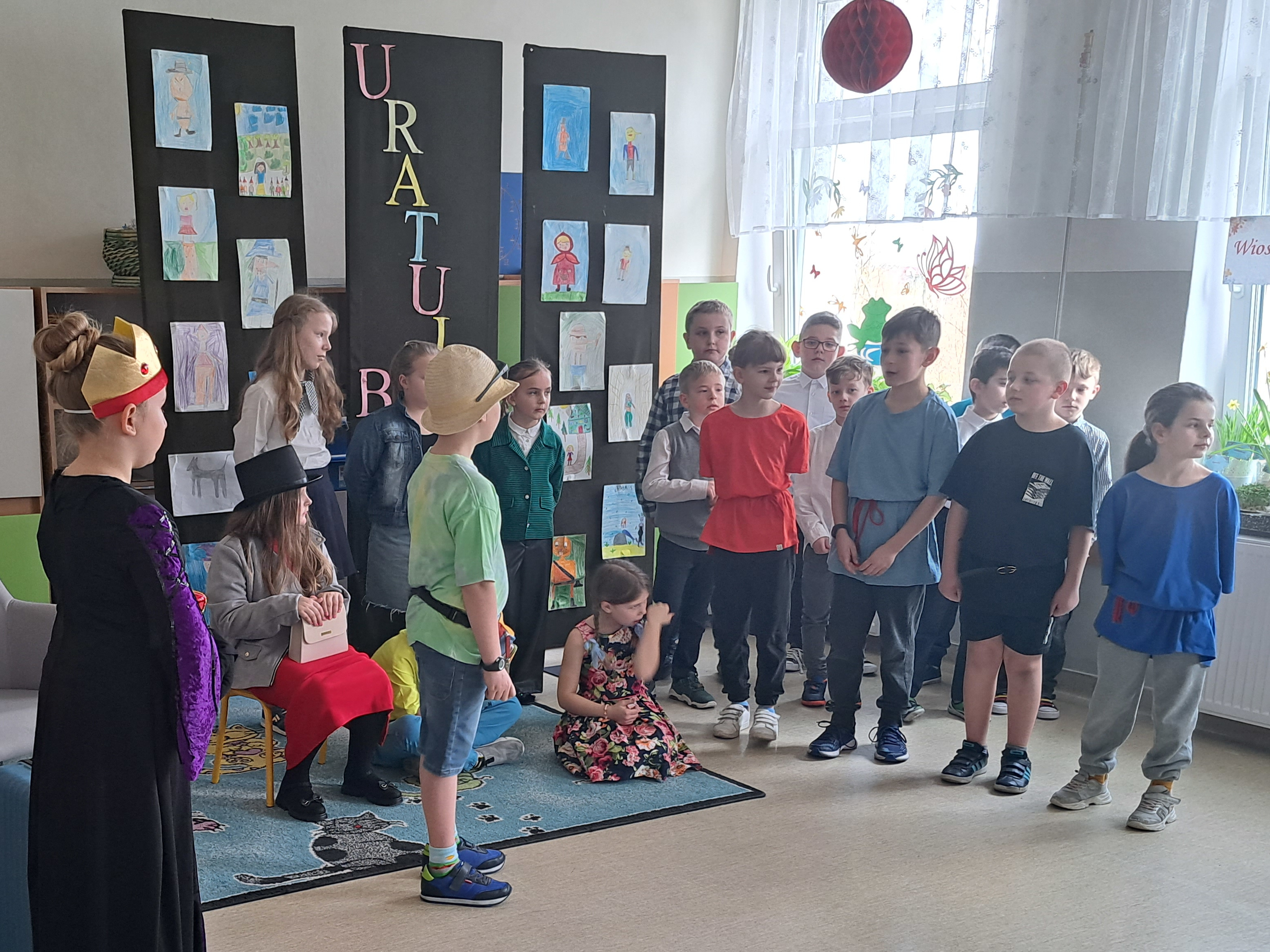 31 kwietnia 2023 r. uczniowie z klasy 2a zaprezentowali przedstawienie pt. „Uratujmy baśnie”. Na scenie spotkały się różne postacie baśniowe, takie jak: Jaś i Małgosia, zła królowa, krasnoludki, Baba Jaga, Baj, Fantazja. Głównym celem przedstawienia było promowanie i zachęcenie najmłodszych do czytania książek. Dodatkowo ukazany został współczesny problem uzależnienia od urządzeń i technologii cyfrowych. Zgromadzona społeczność uczniowska z ogromnym zaciekawieniem oglądała występ. Sztuka była humorystyczna, wesoła i oryginalna. Piękna dekoracja i kostiumy małych aktorów budziły zachwyt wśród oglądających. Przedstawienie zostało przygotowane pod kierunkiem p. Małgorzaty Stajniak.