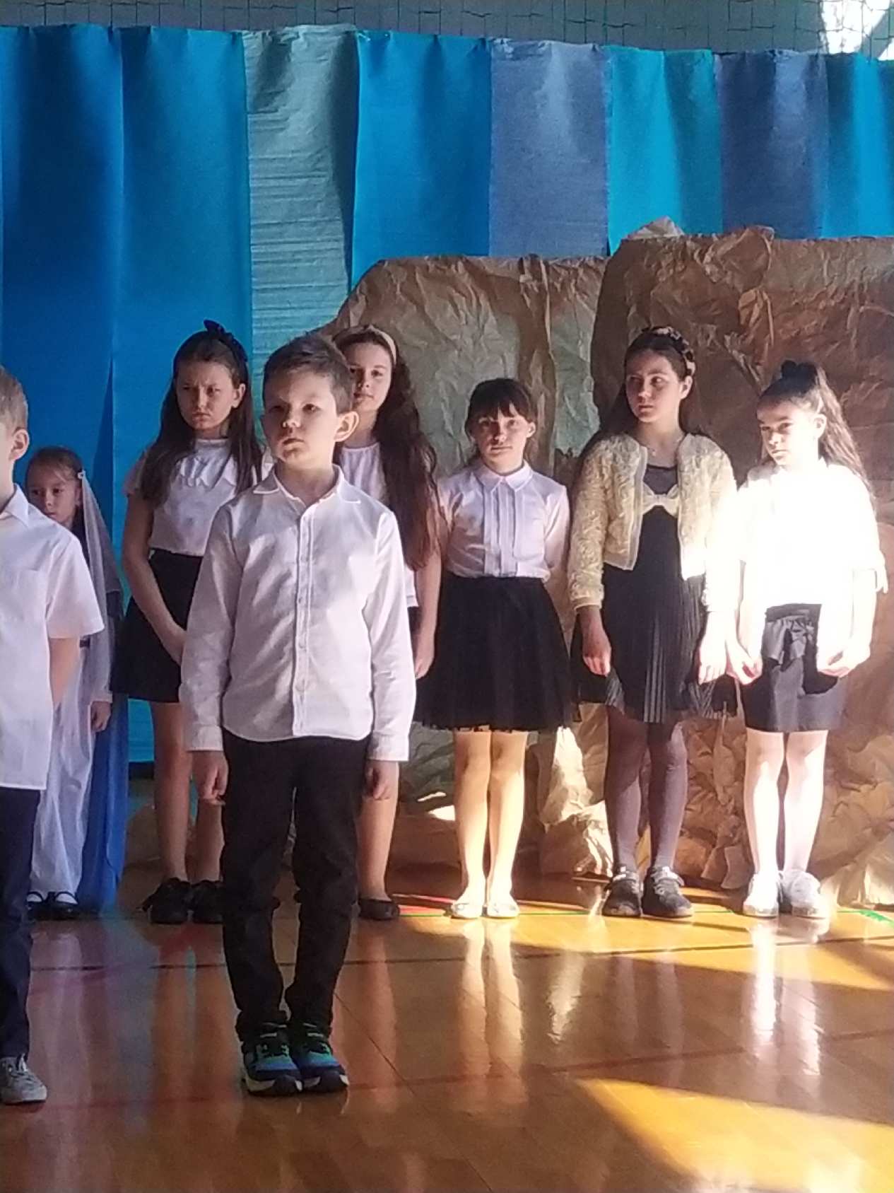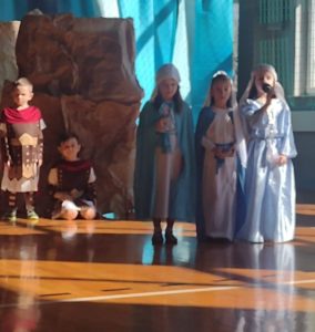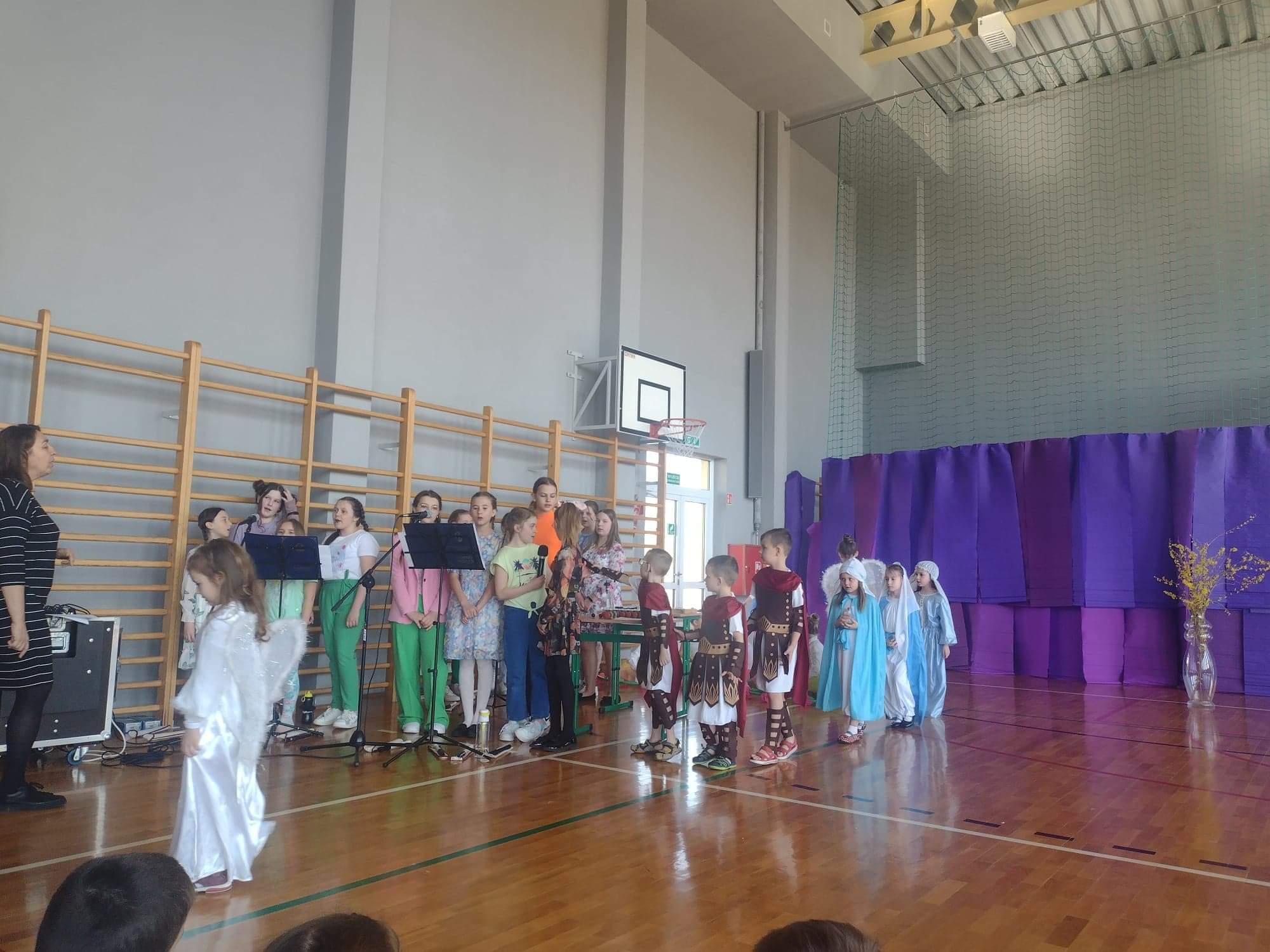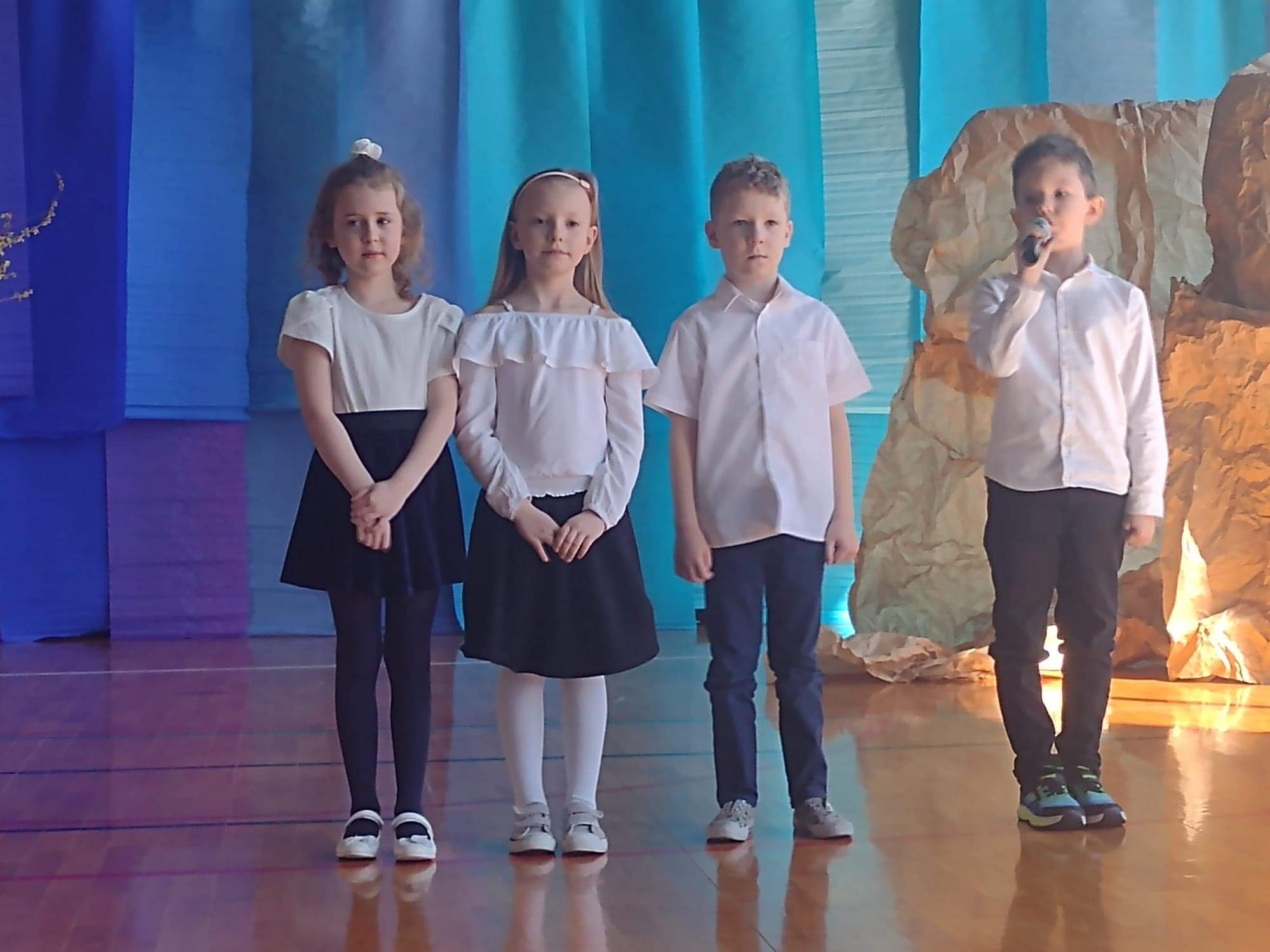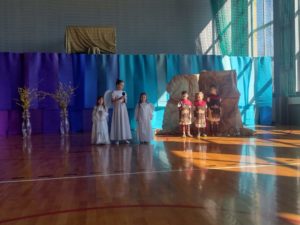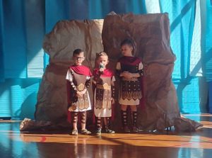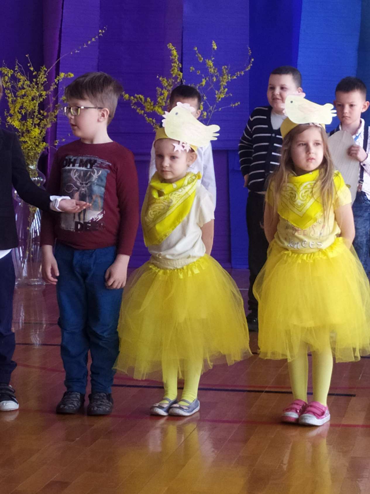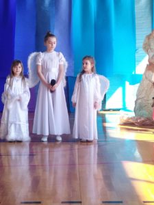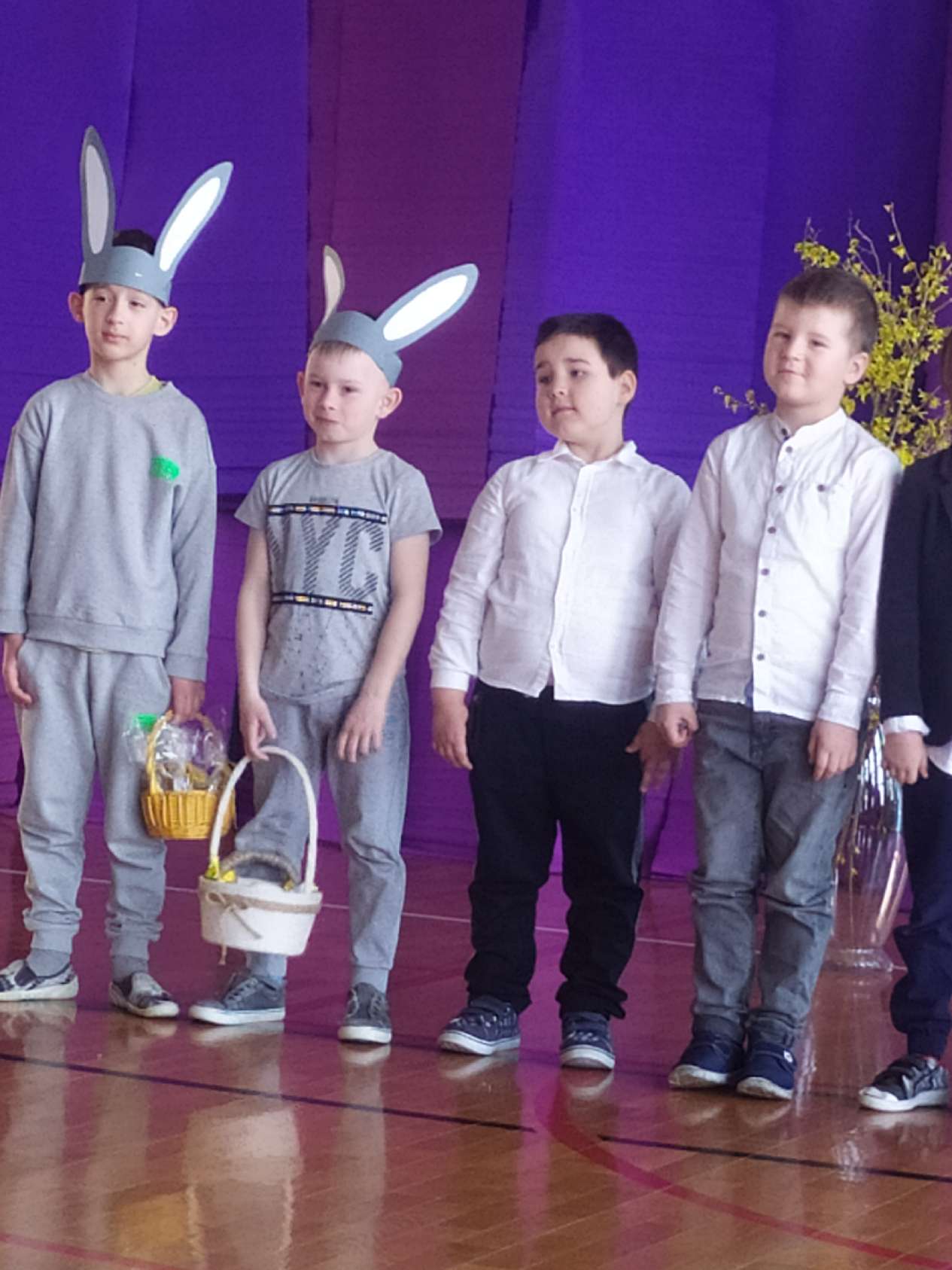 13 kwietnia w naszej szkole odbyło się uroczyste przedstawienie z okazji zbliżających się Świąt Wielkanocnych. W programie artystycznym przygotowanym przez panie: Ewelinę Wakułę i Katarzynę Tkaczyk wystąpiły dzieci z klas zerowych oraz uczniowie klas 0-3. Spektakularna dekoracja, przygotowana przez Panią Ewę Banaszczyk, nastorojowe piosenki w wykonaniu szkolnego chóru pod opieką Pani Izabeli Tracz, przepiękny taniec dziewcząt z zespołu „Gracja”, który przygotowała Pani Paulina Pyzara oraz bogate stroje i duże zaangażowanie małych aktorów sprawiły, że występ został nagrodzony gromkimi brawami przez publiczność.