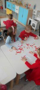 14 lutego 2025 roku był dla naszych przedszkolaków prawdziwym czerwonym dniem miłości i przyjaźni. W dniu św. Walentego panował wyjątkowy nastrój. Dzieci poznały tradycje walentynkowe, dowiedziały się, jak ważne jest okazywanie uczuć przyjaźni i sympatii w stosunku do innych ludzi. Wykonały prace plastyczne, które podarowały swoim bliskim. Prawiły sobie komplementy i mówiły miłe słowa. Wypowiadały swoje zdania, co według nich znaczy kochać kogoś i jak można to pokazać drugiej osobie 🙂