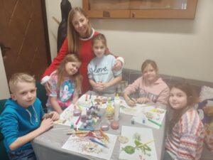 Uczestnicy wykonywali również różnorodne zadania o tematyce świątecznej, które sprzyjały integracji, współpracy oraz wzajemnemu poznawaniu się. Spotkanie okazało się znakomitym pomysłem – panowała miła i życzliwa atmosfera, a wspólnie spędzony czas przyniósł wiele radości i uśmiechu.