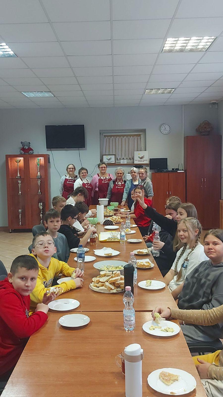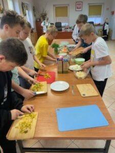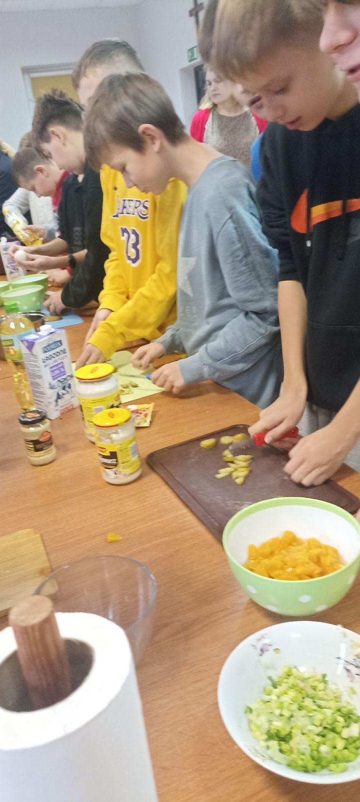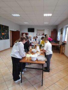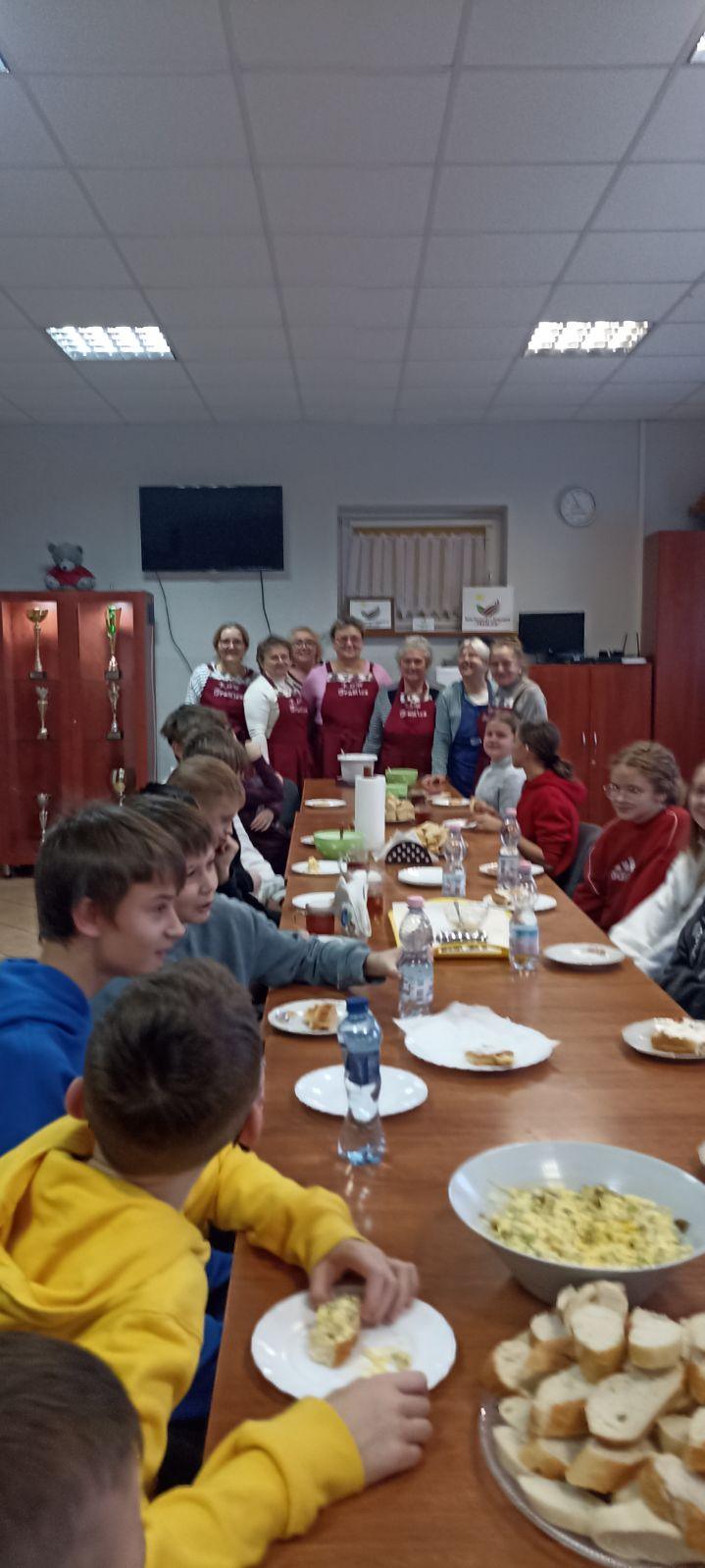 W dniach 15 i 22 listopada uczniowie klas 6 uczestniczyli w warsztatach dotyczących zdrowego śniadania. Zajęcia poprowadziły członkinie KGW. Pani Anna Zugaj, przewodnicząca Koła Gospodyń Wiejskich, przywitała uczniów i nauczycieli oraz przedstawiła plan spotkania. Uczniowie zostali podzieleni na grupy i wspólnie z członkiniami Koła przygotowywali zdrowe śniadanie.