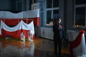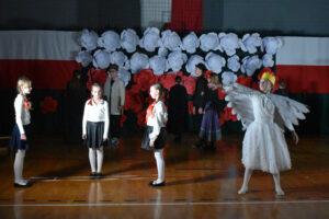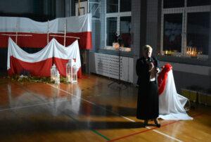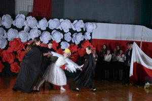 W części artystycznej Wieczoru Patriotycznego uczniowie szkoły zaprezentowali wzruszający i przejmujący montaż poetycko-muzyczny, w myśl hasła: Ojczyzna i Wolność. Niezwykły klimat, podkreślony scenografią w barwach narodowych oraz blaskiem świec i lampionów, udzielił się uczestnikom uroczystości podczas recytacji wierszy o tematyce patriotycznej, przeplatanej układami tanecznymi, scenkami aktorskimi i akordami pięknych melodii patriotycznych. Przed widzami jawiły się różne wydarzenia historyczne dotyczące naszego kraju. Okresy potęgi i wielkości, przeplatane były wojnami, niewolą, upadkiem, poświęceniem i miłością do Ojczyzny. Wieczór Patriotyczny dedykowany był nie tylko bohaterom, którzy oddali swe życie za naszą Niepodległą, ale też tym Polakom, którym zawdzięczamy teraźniejszą wolność.