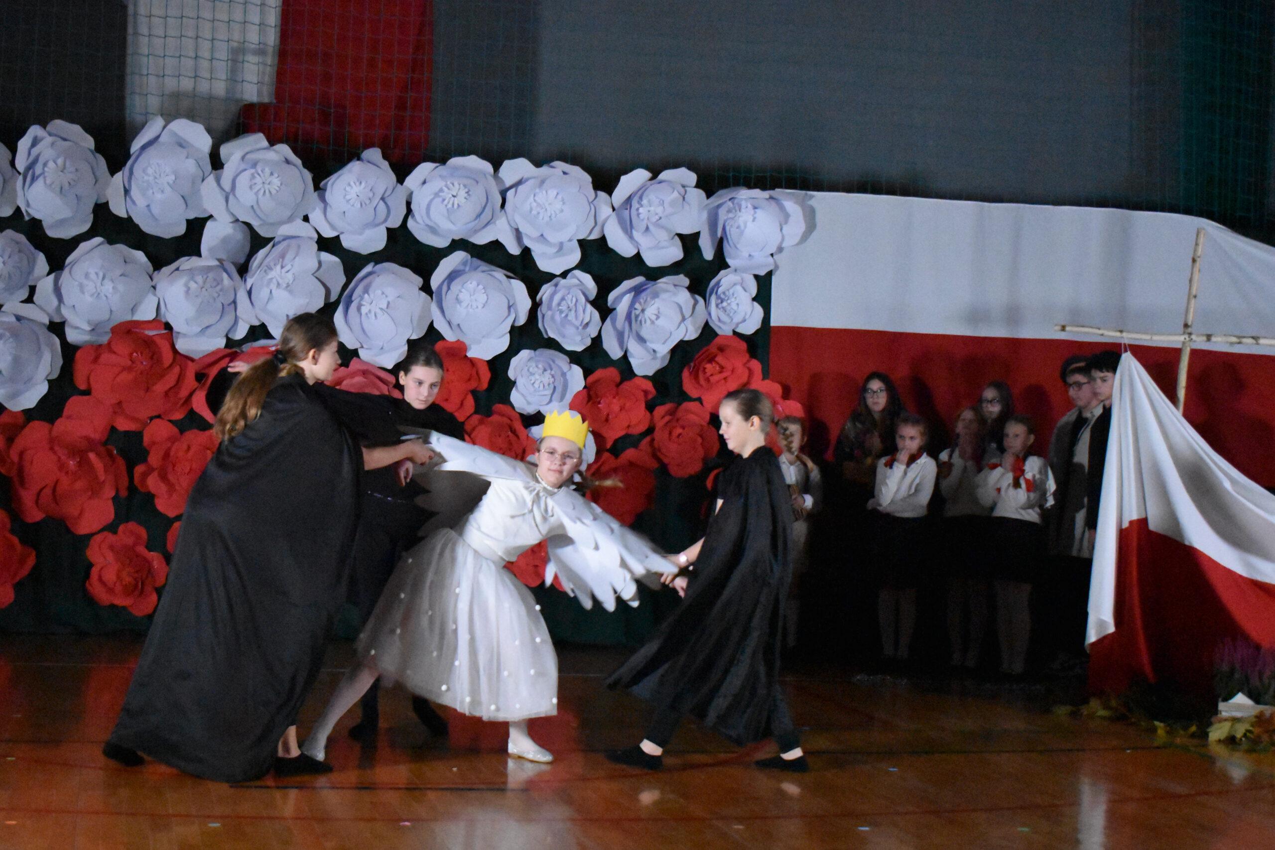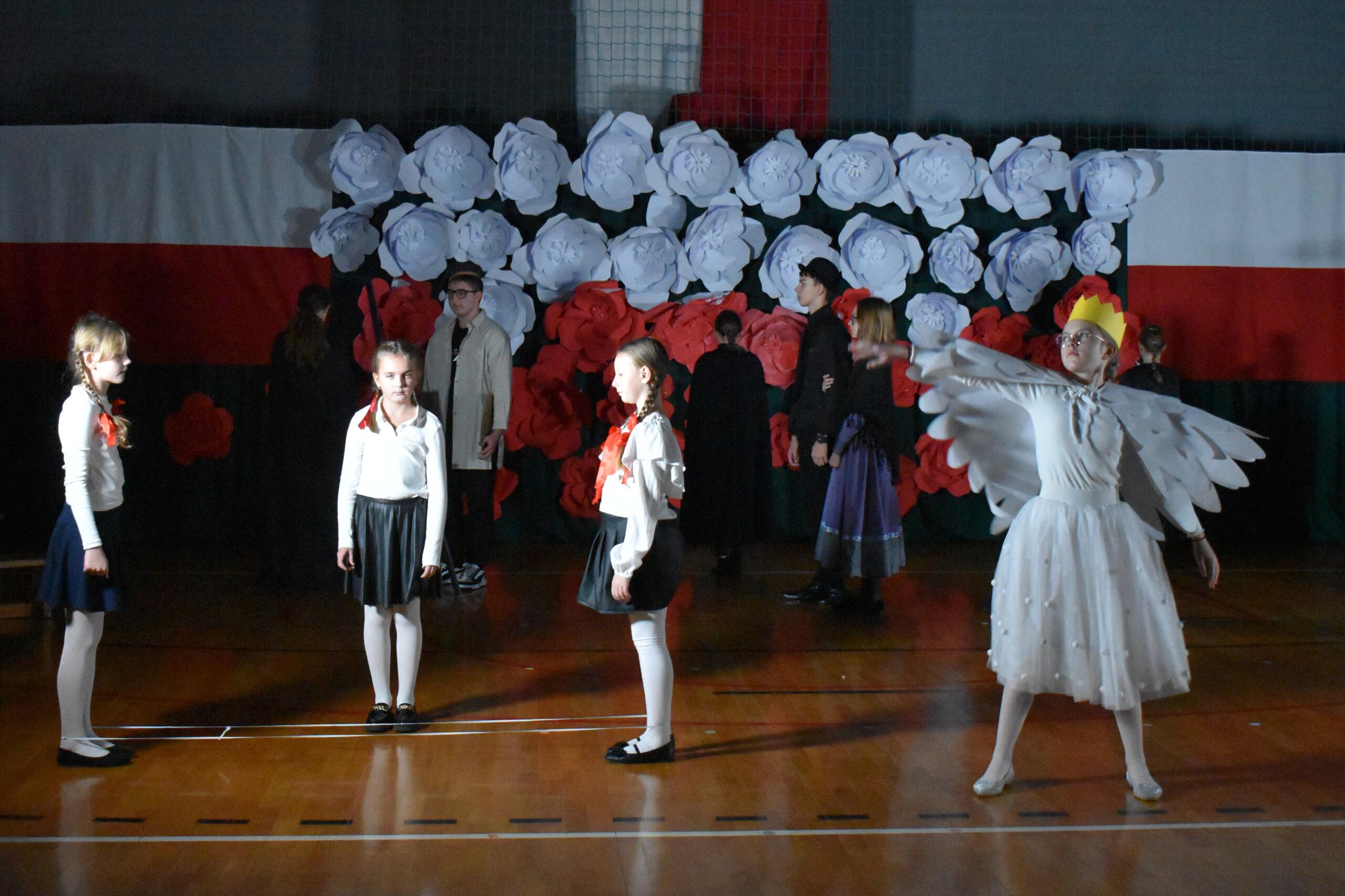 Widowisko zostało nagrodzone gromkimi brawami. Na twarzach przybyłych gości zauważyć można było łzy wzruszenia i ogromną dumę ze swoich pociech. Na zakończenie Pani Dyrektor Małgorzata Trelka, Pan Wójt Wiesław Pachniewski i Pani Dyrektor Radomskiej Delegatury Mazowieckiego Kuratorium Oświaty Anetta Tomczyk gratulowali uczniom wspaniałego występu. Wieczór ten dostarczył wielu niezapomnianych chwil i z pewnością na długo pozostanie w pamięci uczestników. Każde wystąpienie skłoniło widzów do głębokiej refleksji i zadumy nad dziejami naszej Ojczyzny.