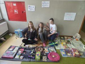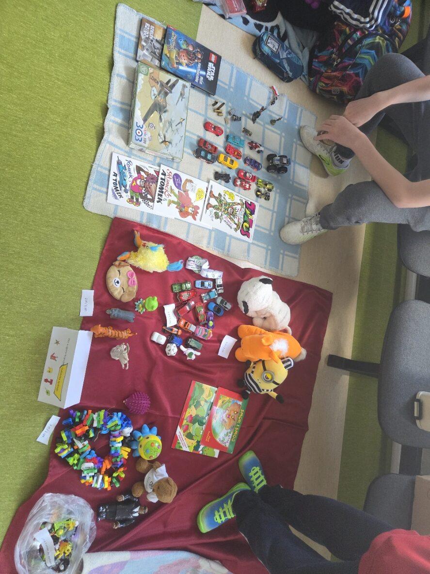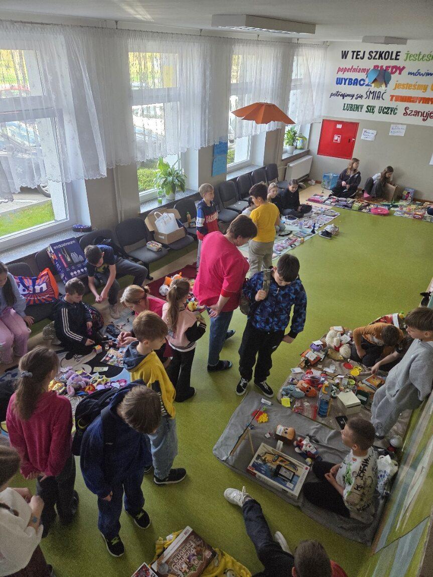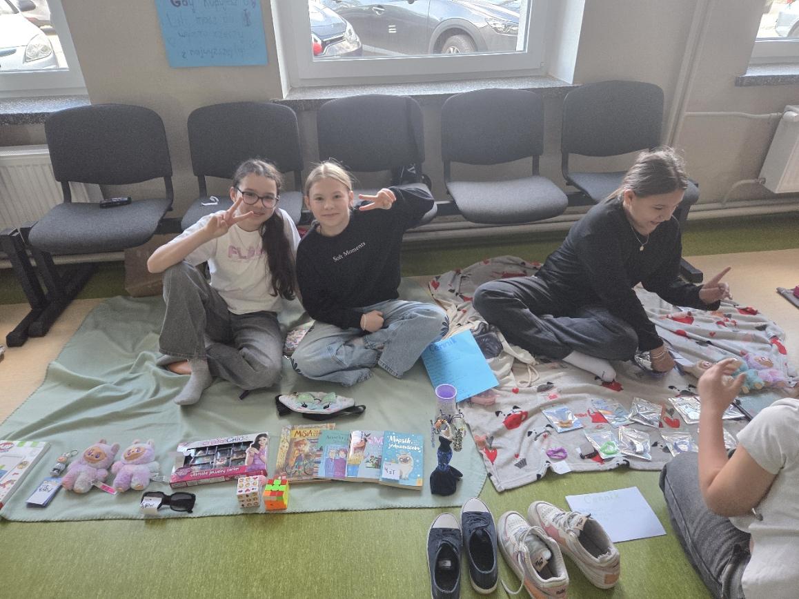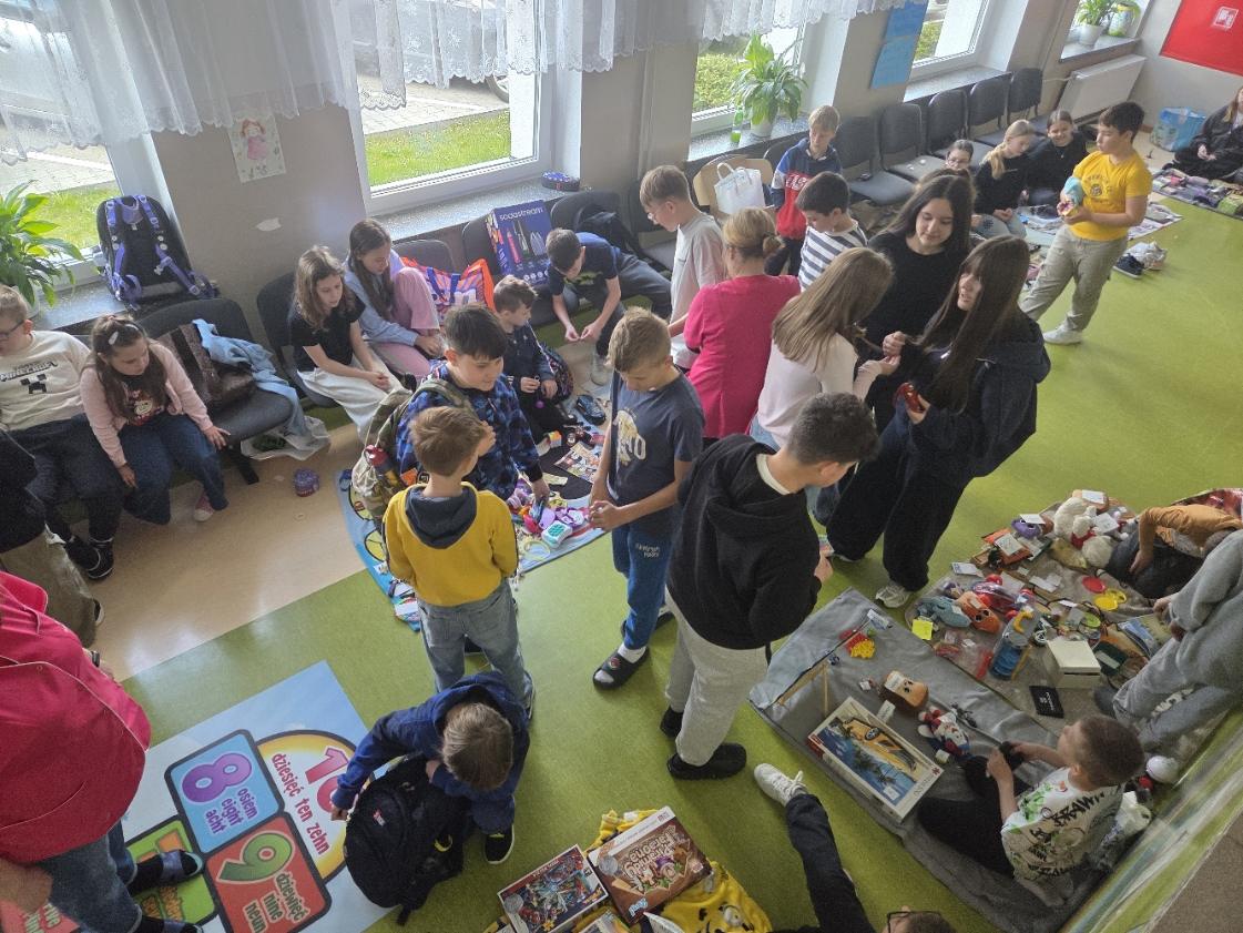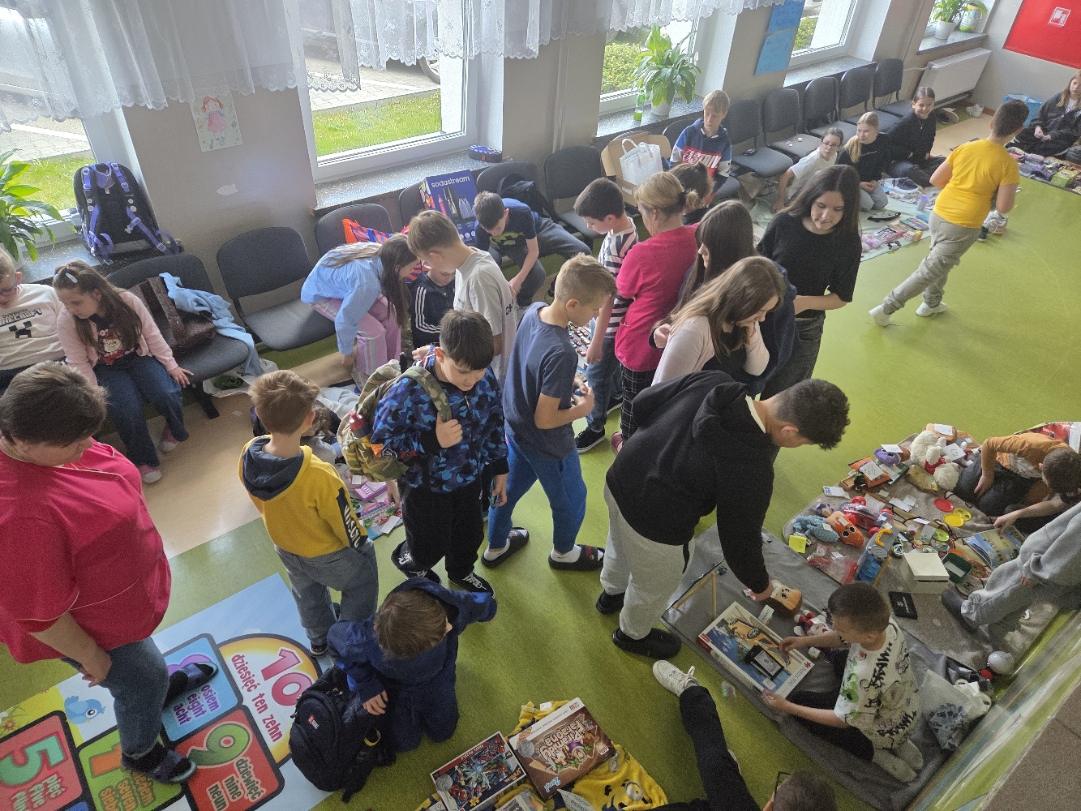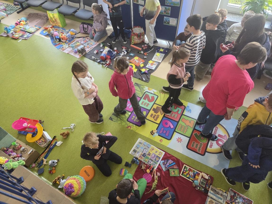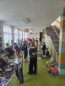 Stoiska przygotowane przez uczniów pękały w szwach! Na „straganach” można było znaleźć: książki i komiksy, które szukały nowych czytelników, zabawki i gry planszowe, karty kolekcjonerskie, ręcznie robioną biżuterię i wiele innych ciekawych przedmiotów.