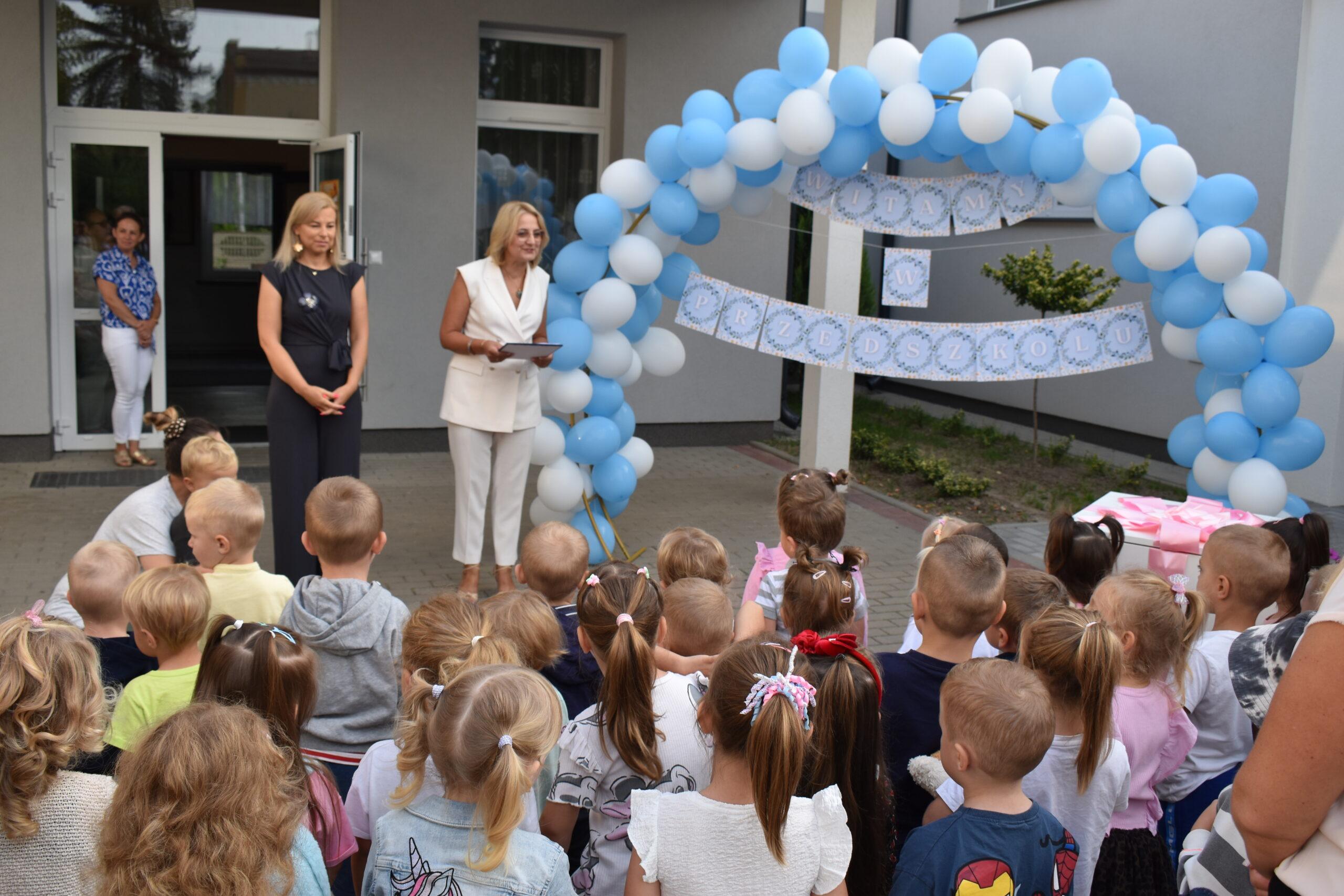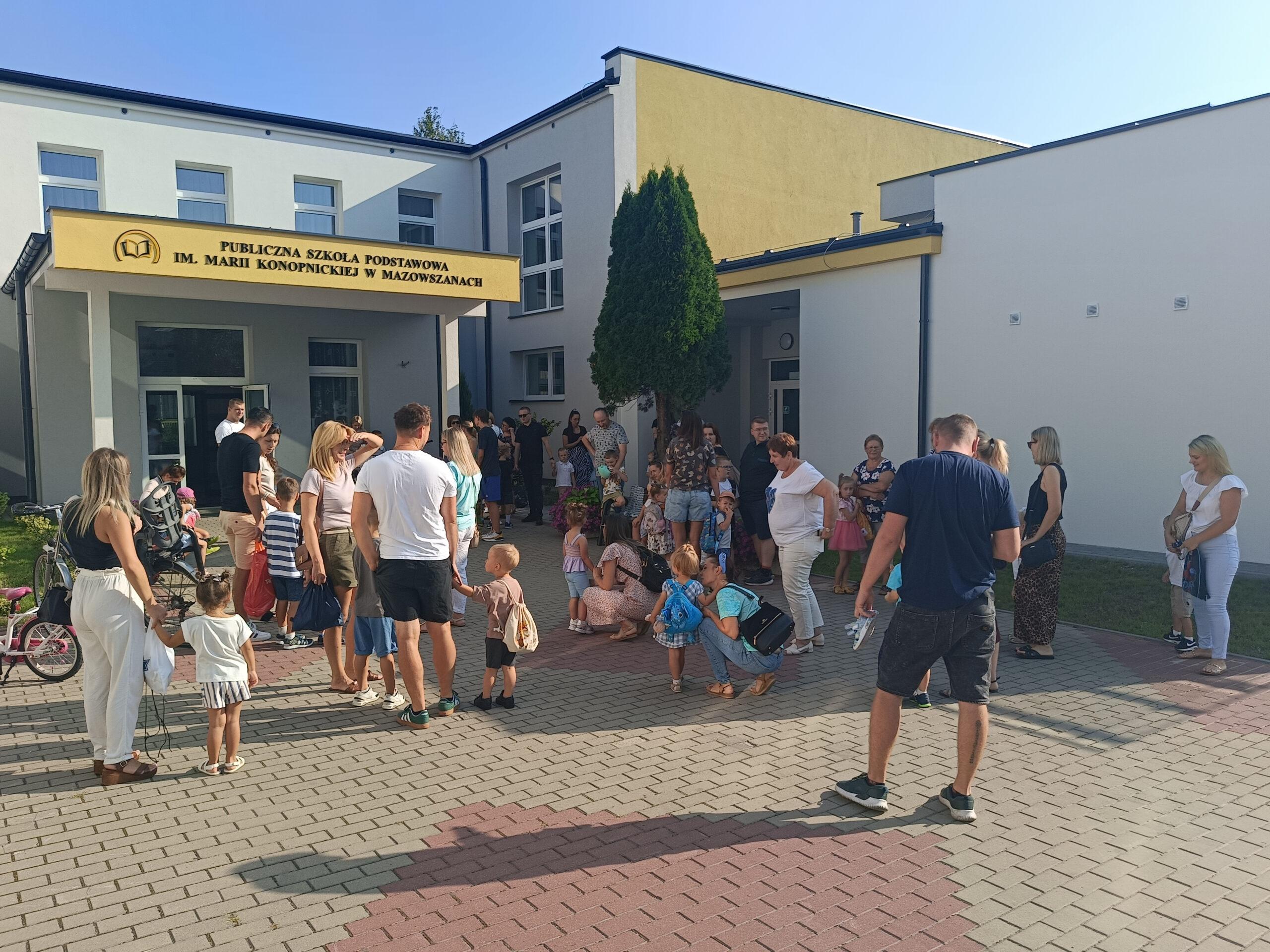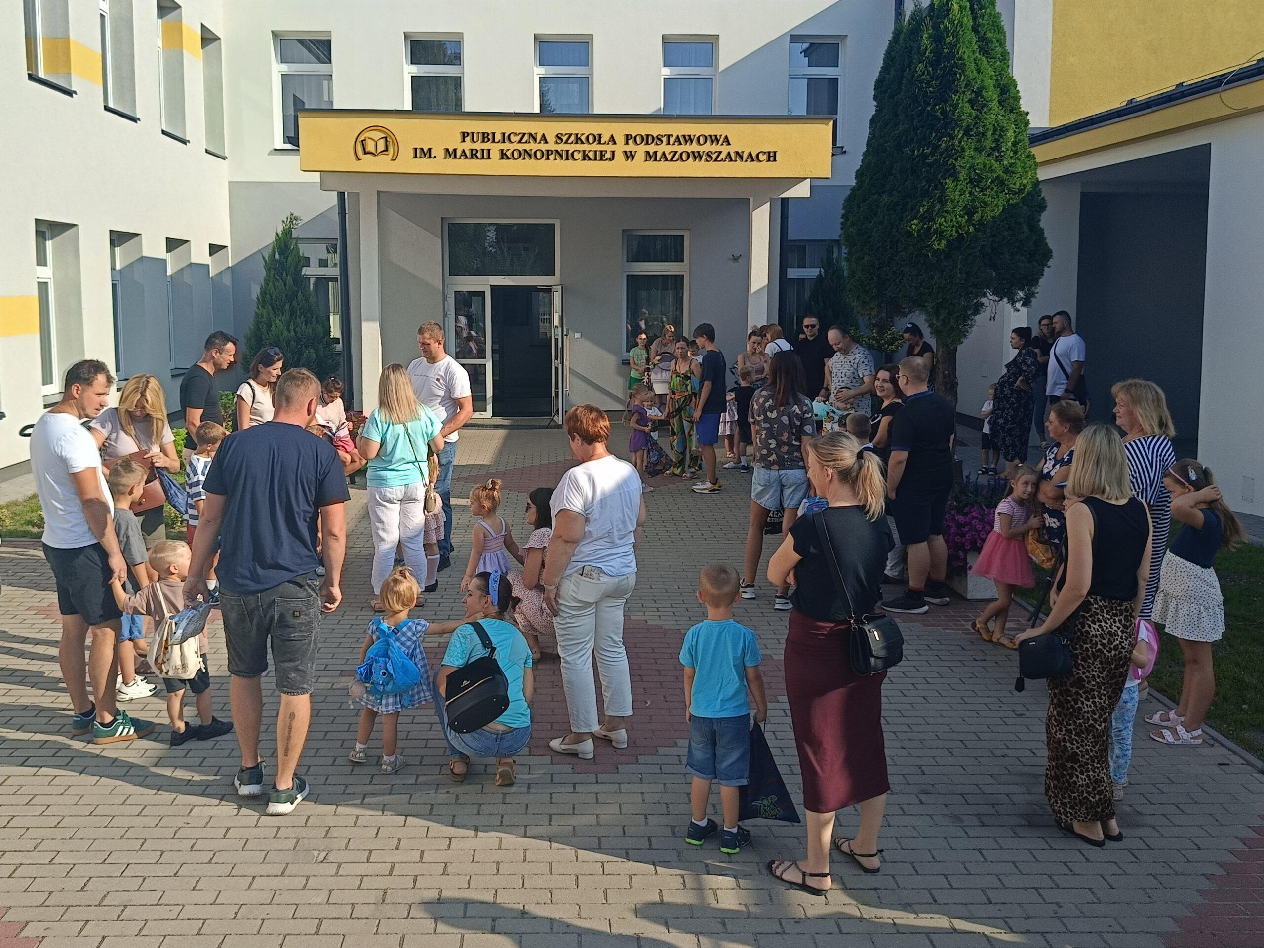 2 września 2024r. w Publicznej Szkole Podstawowej im. Marii Konopnickiej w Mazowszanach odbyło się niezwykłe wydarzenie- symboliczne otwarcie nowego przedszkola. Tego dnia dzieci 3- 4 i 5- letnie rozpoczęły edukację w pięknym i przystosowanym do najmłodszych dzieci budynku. Był to wyjątkowy dzień dla naszych wychowanków, którzy o godzinie 7.30 przybyli wraz ze swoimi rodzicami, by świętować pierwszy dzień edukacji. Pani Dyrektor Małgorzata Trelka powitała wszystkich przedszkolaków, rodziców, jak również wychowawców i pozostałych pracowników przedszkola. Symbolicznego otwarcia dokonały same przedszkolaki, które wypuściły w niebo biało- niebieskie balony symbolizujące kwiatowe nazwy swoich grup- Stokrotki i Niezapominajki. Nowe przedszkole dysponuje dwiema przestronnymi kolorowymi salami zabaw oraz salą sportową, które dostosowane zostały do potrzeb i możliwości dzieci w wieku przedszkolnym; wyposażone są w meble, zabawki i pomoce dydaktyczne. Budynek zapewnia wygodną szatnię dla przedszkolaków, a zaplecze kuchenne umożliwia wydawanie posiłków. Warto dodać, że kilka dni wcześniej przedszkolaki poznały nowe miejsce podczas dnia adaptacyjnego, podczas którego dzieci zobaczyły swoje panie, mogły wspólnie się pobawić, poznać i zintegrować, a ich rodzice mieli okazję zapoznać się w skrócie z zasadami funkcjonowania naszego przedszkola, sposobami organizacji zajęć oraz z wyposażeniem sal. Wierzymy, że ten dzień zapadnie w naszej pamięci na długo, a nasze dzieci codziennie będą z uśmiechami na twarzach przychodzić do nowego przedszkola.