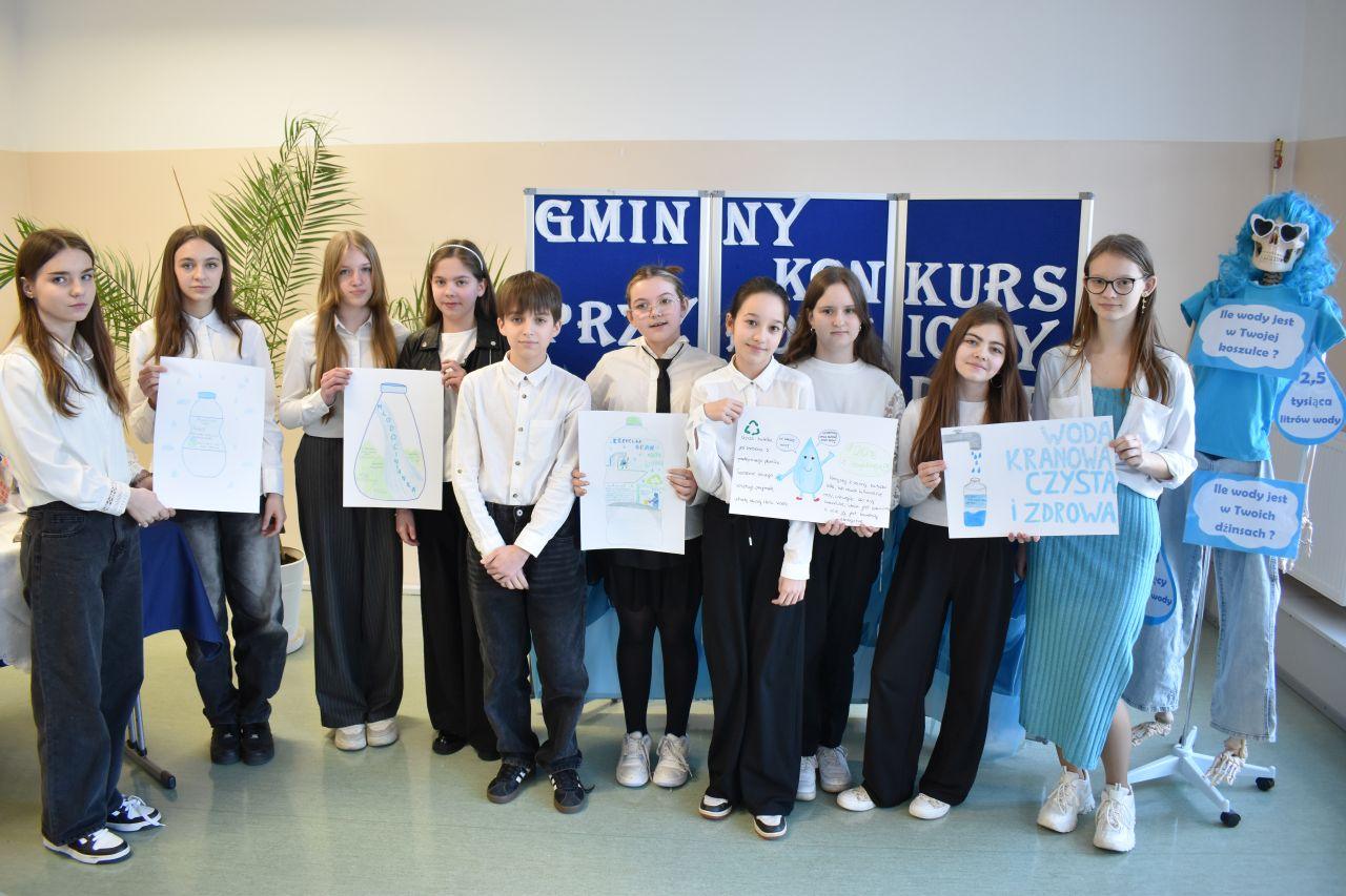 Gminny Konkurs Przyrodniczy ,,Woda źródłem życia” w Publicznej Szkole Podstawowej im. Marii Konopnickiej w Mazowszanach odbył się z okazji Światowego Dnia Wody, który przypada na 22 marca. Święto ustanowione przez Zgromadzenie Ogólne ONZ ma przypominać, że wielu mieszkańców naszej planety cierpi z powodu braku dostępu do czystej wody pitnej. Uczniowie rywalizowali w dwuosobowych zespołach, rozwiązując Wodny Quiz. Kolejnym etapem współzawodnictwa była praca plastyczna pt. ,,Woda butelkowa – etykieta”. Zadanie polegało na zaprojektowaniu etykiety, która będzie zachęcała do picia wody kranowej.