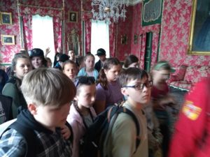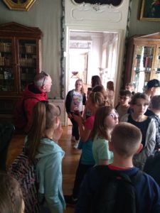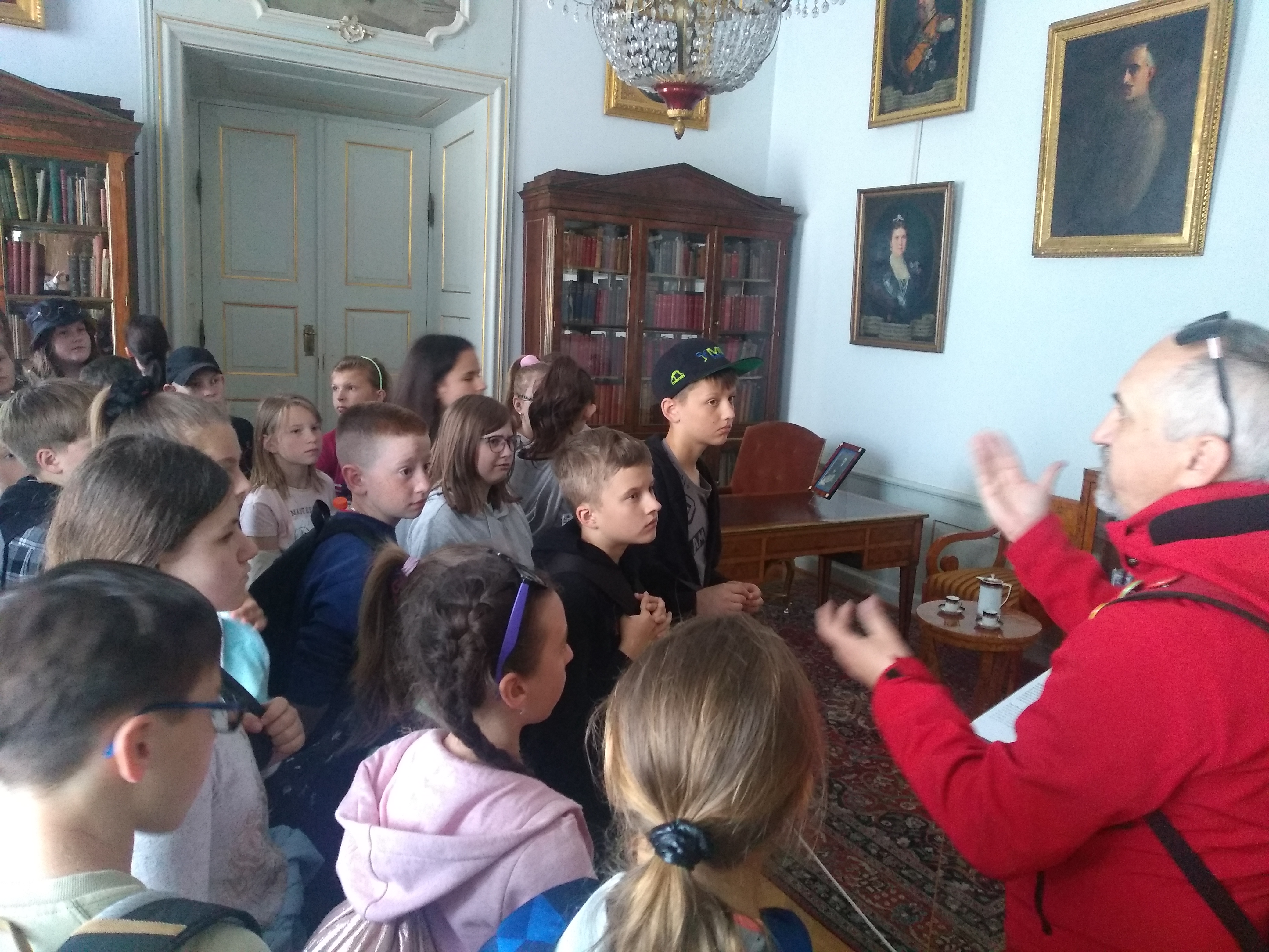 Pierwszym punktem programu był kompleks ogrodowo-pałacowy w Nieborowie. Uczniowie poznali historię barokowego Pałacu Radziwiłłów, który o tyle był dla nich ciekawy, że to właśnie w tym miejscu kręcona była Akademia Pana Kleksa. Mieli także okazję pospacerować po pięknym pałacowym ogrodzie i poznać niespotykane gdzie indziej gatunki kwiatów i drzew.
