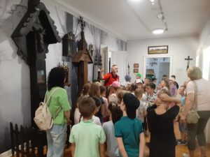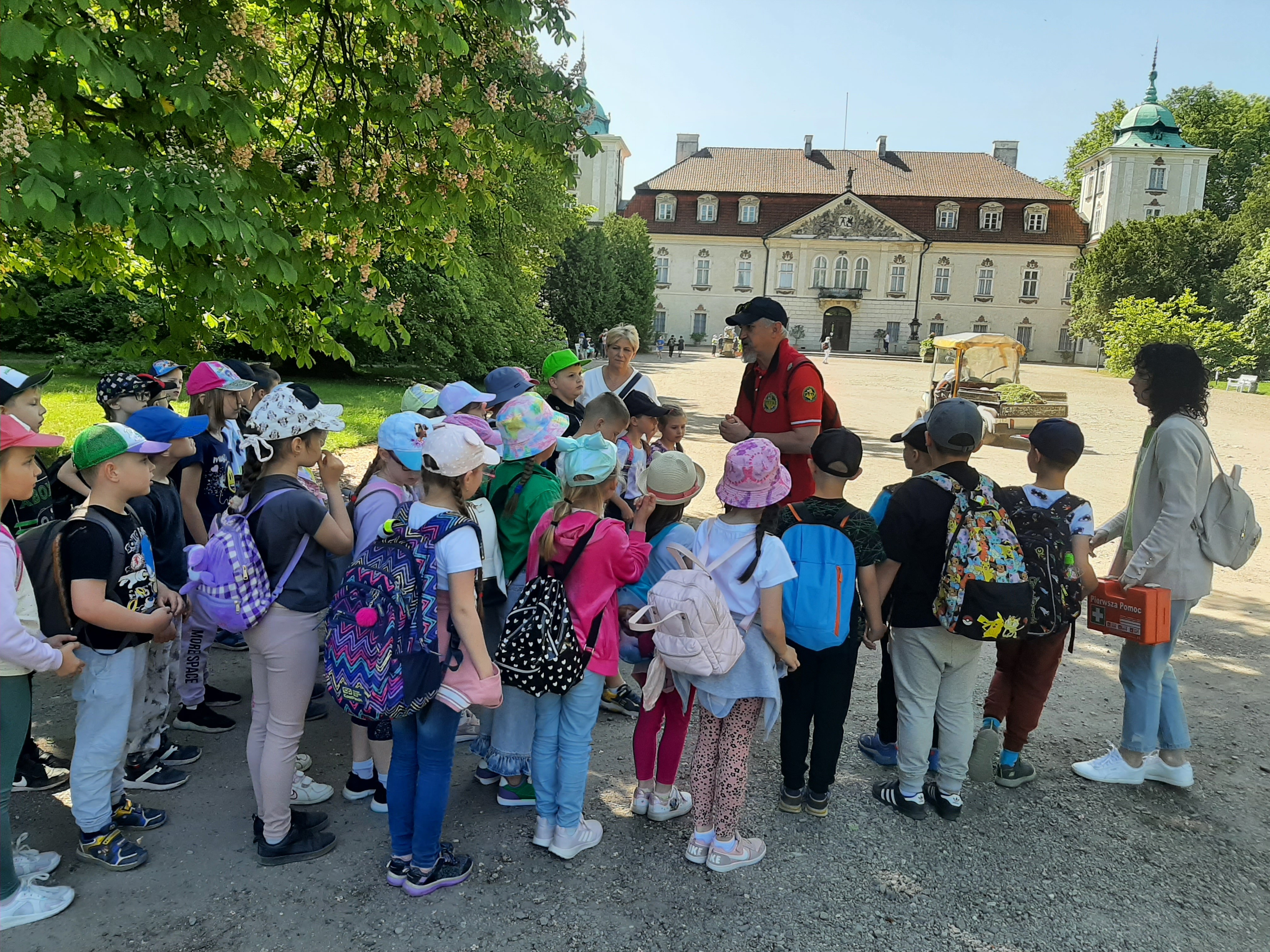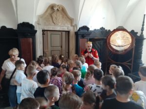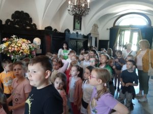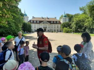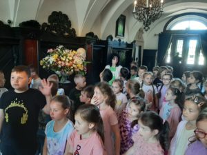 W piękny wtorkowy poranek wybraliśmy się na wycieczkę, aby poznać kulturę oraz region Łowicza. Odwiedziliśmy przepiękny gotycko – renesansowy pałac Radziwiłłów w Nieborowie. Zwiedziliśmy tutaj wnętrza z XVIII i XIX wieku m.in. Gabinet Żółty, Zielony, Buduar, Salon Czerwony. Dowiedzieliśmy się, że w tym miejscu tworzyli m.in. K.I. Gałczyński, S. Mrożek. Spacerując po parku mieliśmy wrażenie, że przenieśliśmy się w cudowny świat baśni (tutaj właśnie w otoczeniu tych pięknych drzew powstał film pt. ”Akademia Pana Kleksa.”). Następnie zobaczyliśmy Bazylikę Katedralną Wniebowzięcia NPM, która jest miejscem spoczynku prymasów i arcybiskupów gnieźnieńskich. Kolejnym punktem naszej wycieczki były Muzeum oraz Skansen w Łowiczu. Uczniowie spacerując po muzeum zgłębiali historię Ziemi Łowickiej oraz kulturę Księżaków. Zobaczyli również Skansen, który prezentuje najstarsze, przeniesione z terenu dawnego Księstwa Łowickiego, budynki mieszkalne i gospodarcze. Ostatnim miejscem, które odwiedziliśmy tego dnia była Żelazowa Wola, miejsce narodzin Fryderyka Chopina. Tam zwiedziliśmy oficynę, w której przyszedł na świat, a także pospacerowaliśmy po pięknym ogrodzie, wsłuchując się w muzykę Chopina.