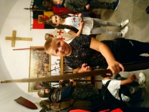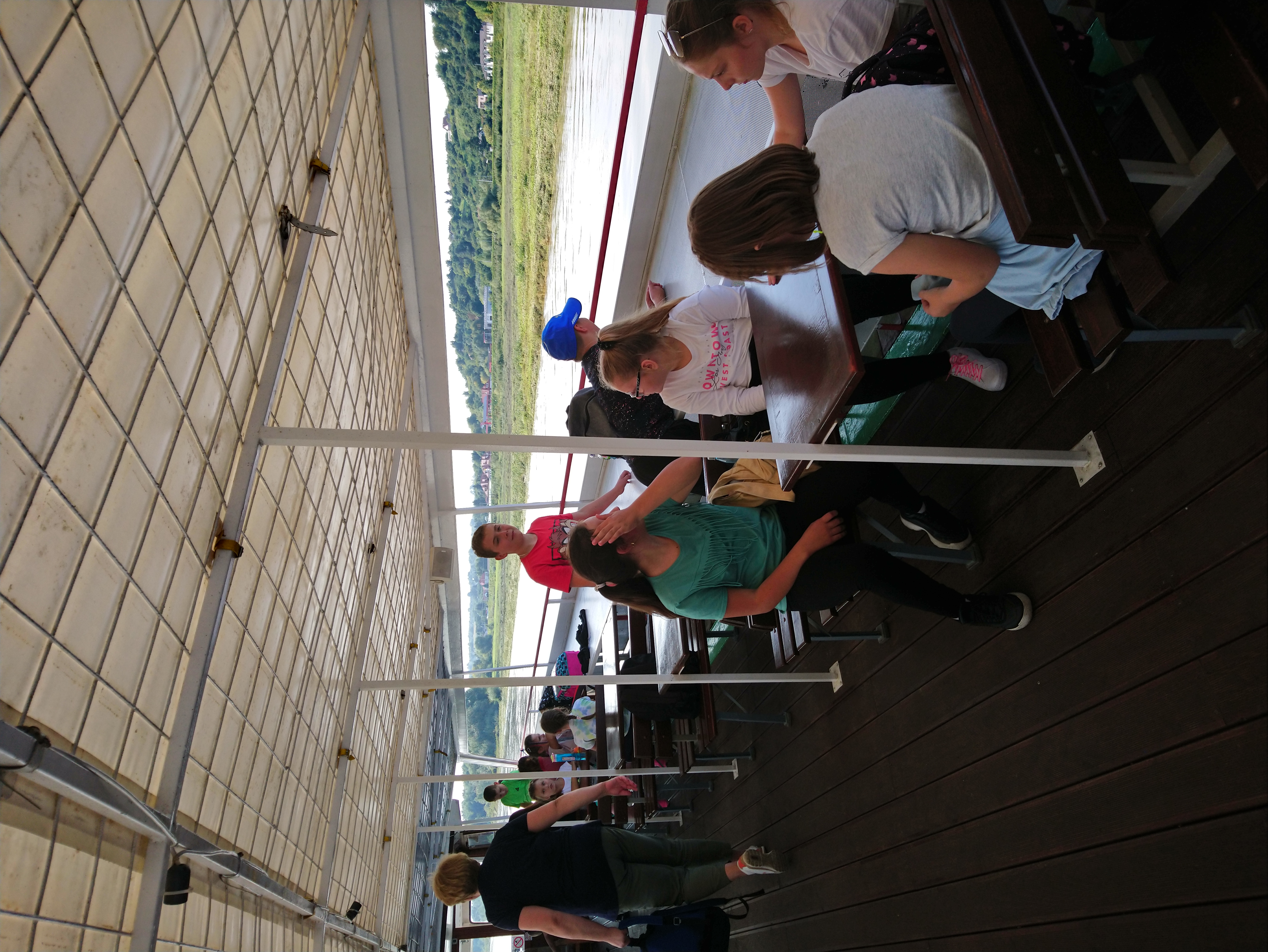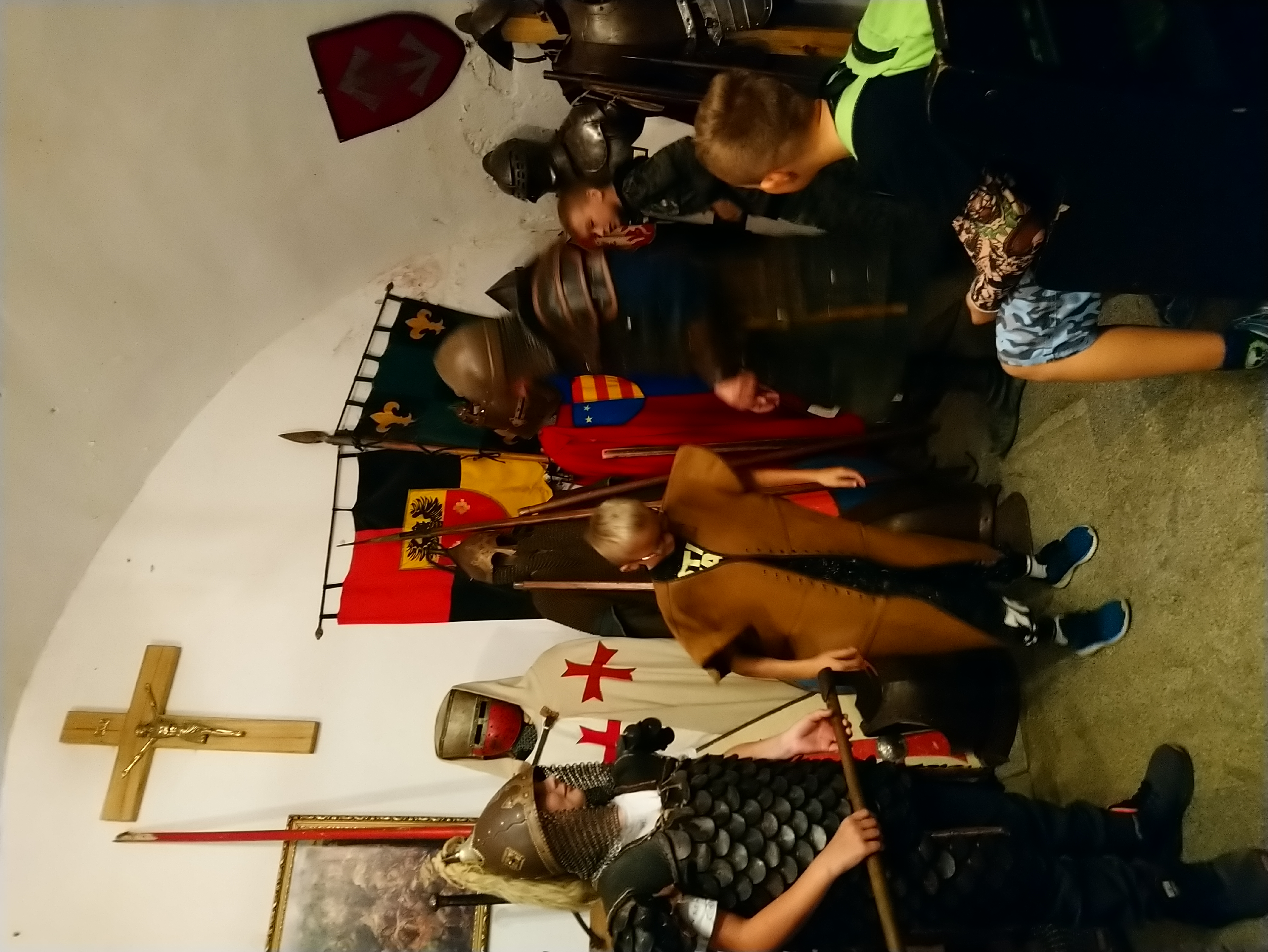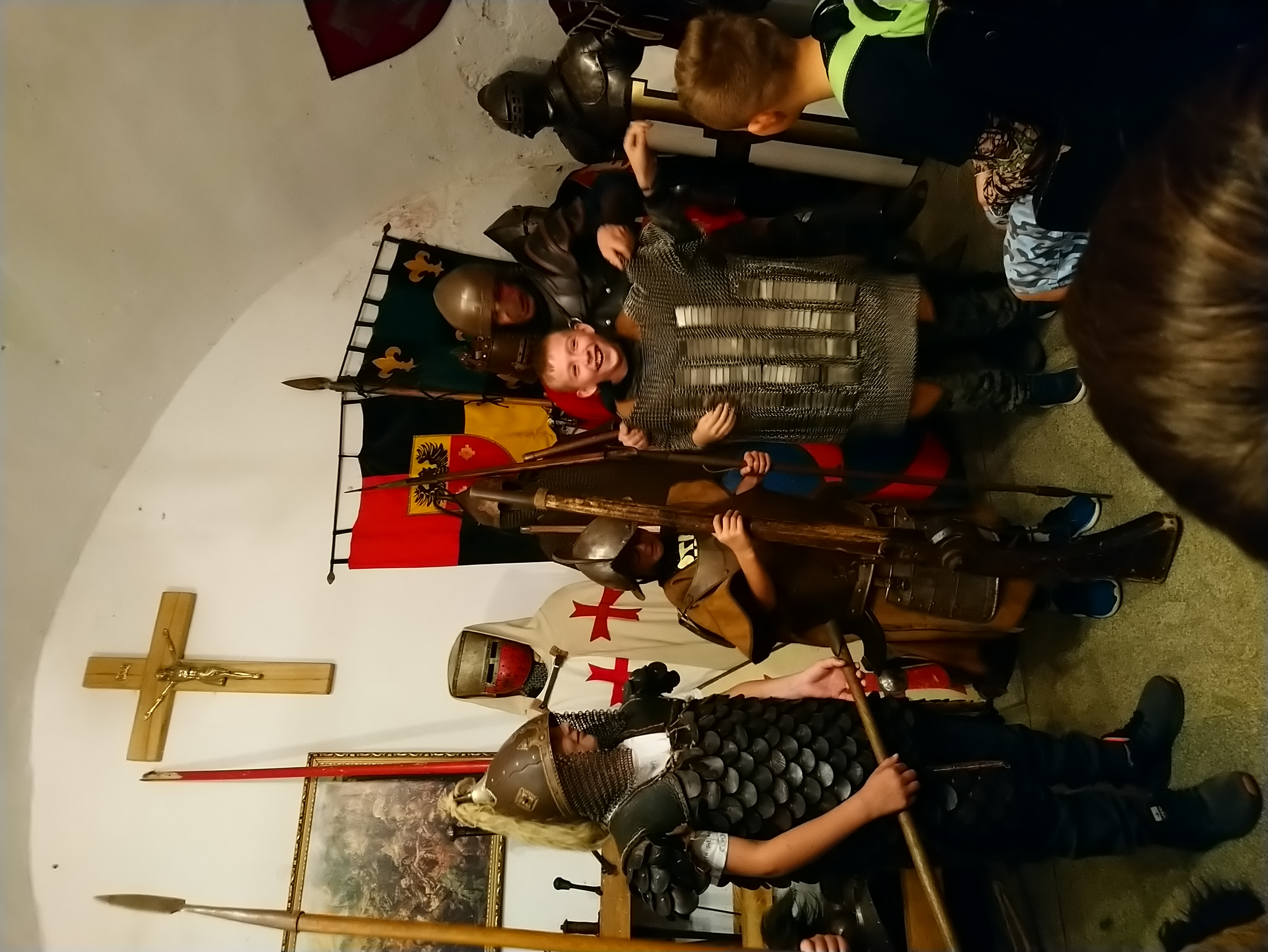 Zwiedzanie rozpoczęliśmy od wspaniałej XIV- wiecznej Bazyliki katedralnej, gdzie mogliśmy podziwiać bogato zdobione wnętrza pełne pięknych malowideł i rzeźb. Następnie udaliśmy się do Zbrojowni, w której średniowieczny rycerz opowiedział nam pasjonującą historię miasta. Przymierzając dawne stroje i elementy uzbrojenia, odbyliśmy prawdziwą wycieczkę w przeszłość. Jednak największym zainteresowaniem cieszyła się sala tortur. Dyby, kajdany, madejowe łoże, czy miecze katowskie to tylko nieliczne eksponaty, które postanowili „bliżej poznać” przede wszystkim chłopcy. Nie mieliśmy czasu na nudę, bo niedługo potem przenieśliśmy się do podziemi. Spacerując mrocznymi korytarzami tworzącymi blisko półkilometrową Podziemną Trasę Turystyczną, wysłuchaliśmy tragicznej historii Haliny Krępianki- bohaterki, która zginęła, ratując Sandomierz przed najazdem Tatarów. Następnie z tarasu widokowego Bramy Opatowskiej podziwialiśmy piękną panoramę miasta, a idąc Wąwozem Królowej Jadwigi dowiedzieliśmy się co nieco o sandomierskiej przyrodzie. Zwieńczeniem wycieczki był rejs po Wiśle, podczas którego nie tylko mogliśmy rozkoszować się wspaniałymi widokami, ale także „łapać” ostatnie promienie letniego słońca. Zmęczeni, ale w doskonałych nastrojach, po krótkim postoju w McDonald’s , wróciliśmy do Mazowszan.