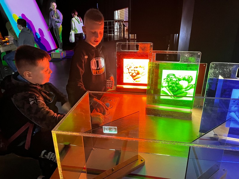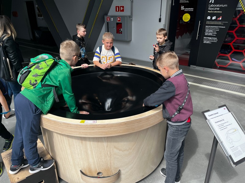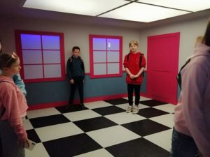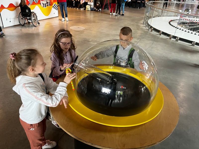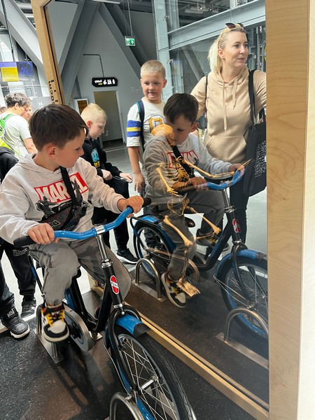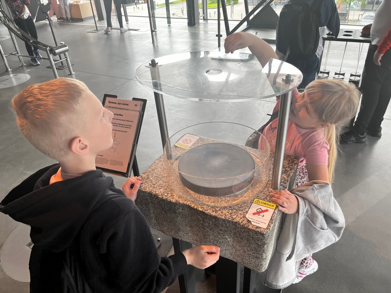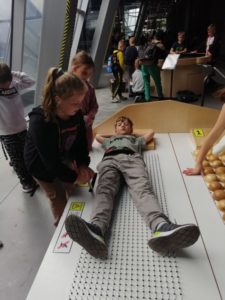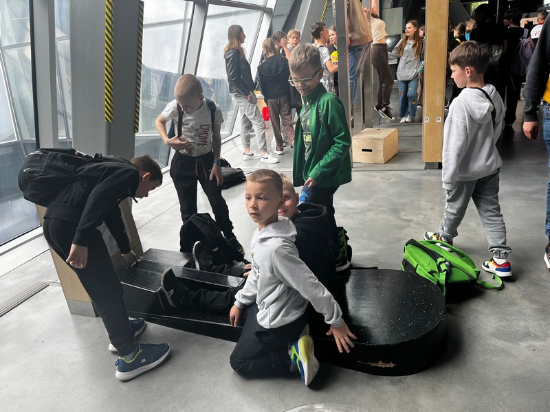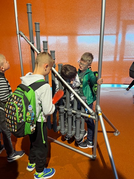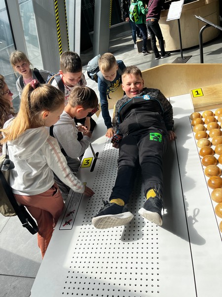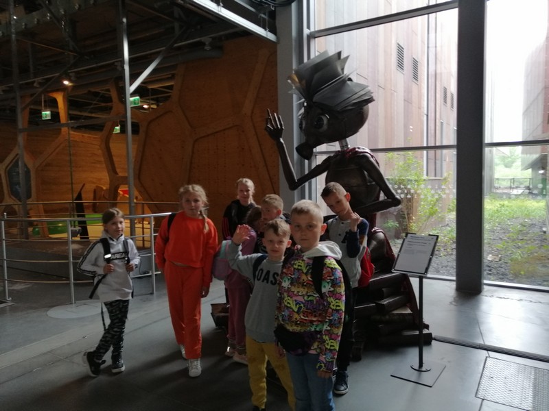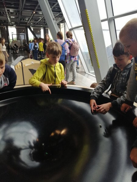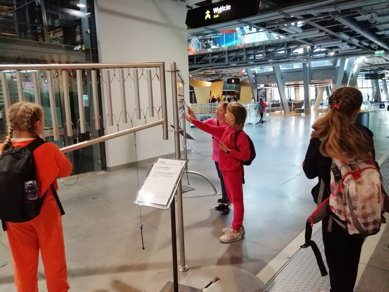 Pierwszym punktem programu było Centrum Nauki Kopernik, w którym doświadczaliśmy „żywych lekcji” z dziedziny biologii, fizyki, mechaniki, robotyki i techniki. Każdy z nas mógł przeprowadzać eksperymenty, doświadczyć jak działa na nas iluzja, jak pracują ludzkie stawy i kości, dlaczego pewne zjawiska mają miejsce w przyrodzie. Dzięki tej wizycie wzbogaciliśmy naszą wiedzę i umiejętności – i mogliśmy je zastosować w praktyce. Mogliśmy także zadać pytanie samemu Mikołajowi Kopernikowi- jest to woskowa figura, która udziela odpowiedzi na przeróżne pytania.
