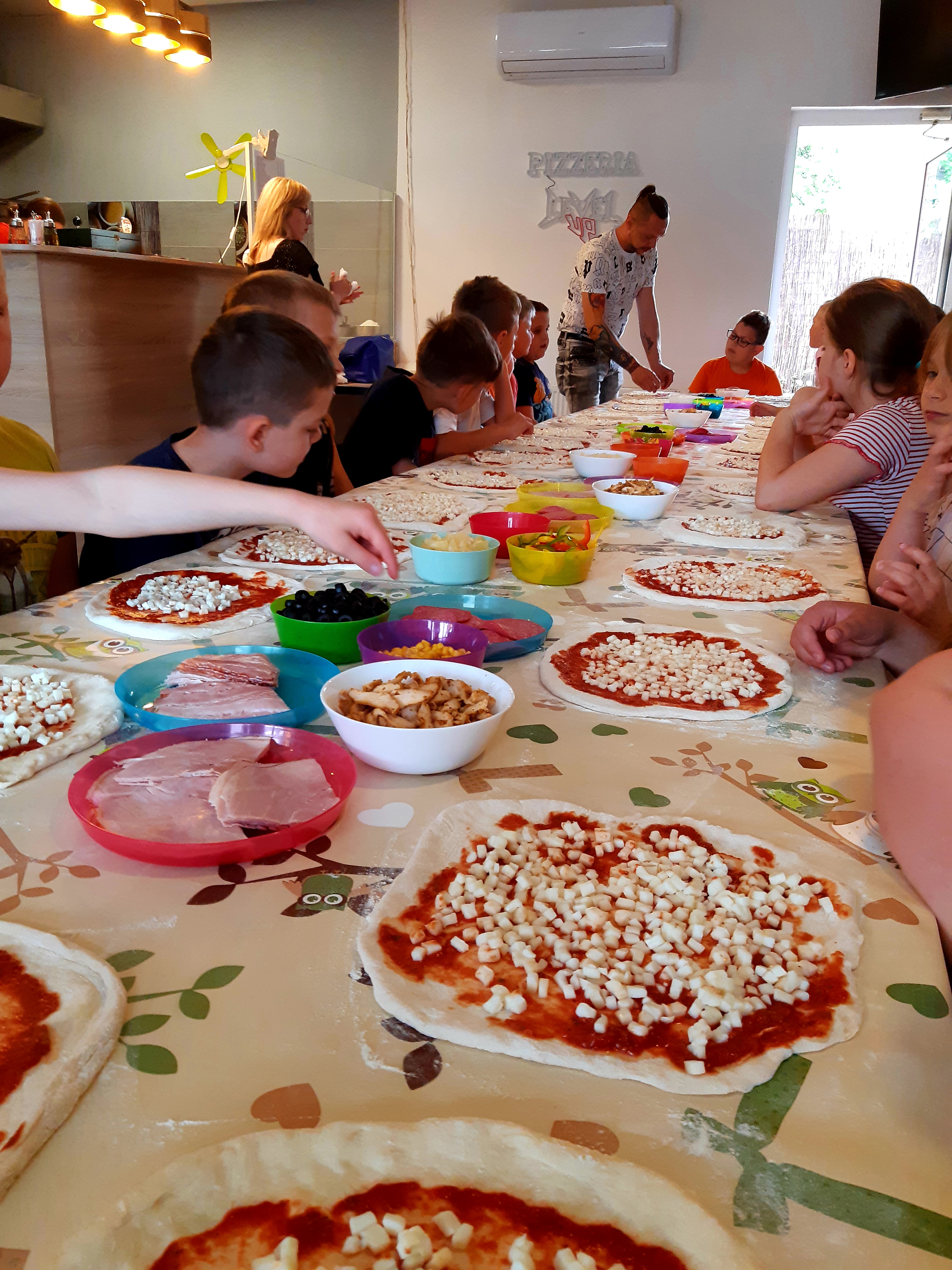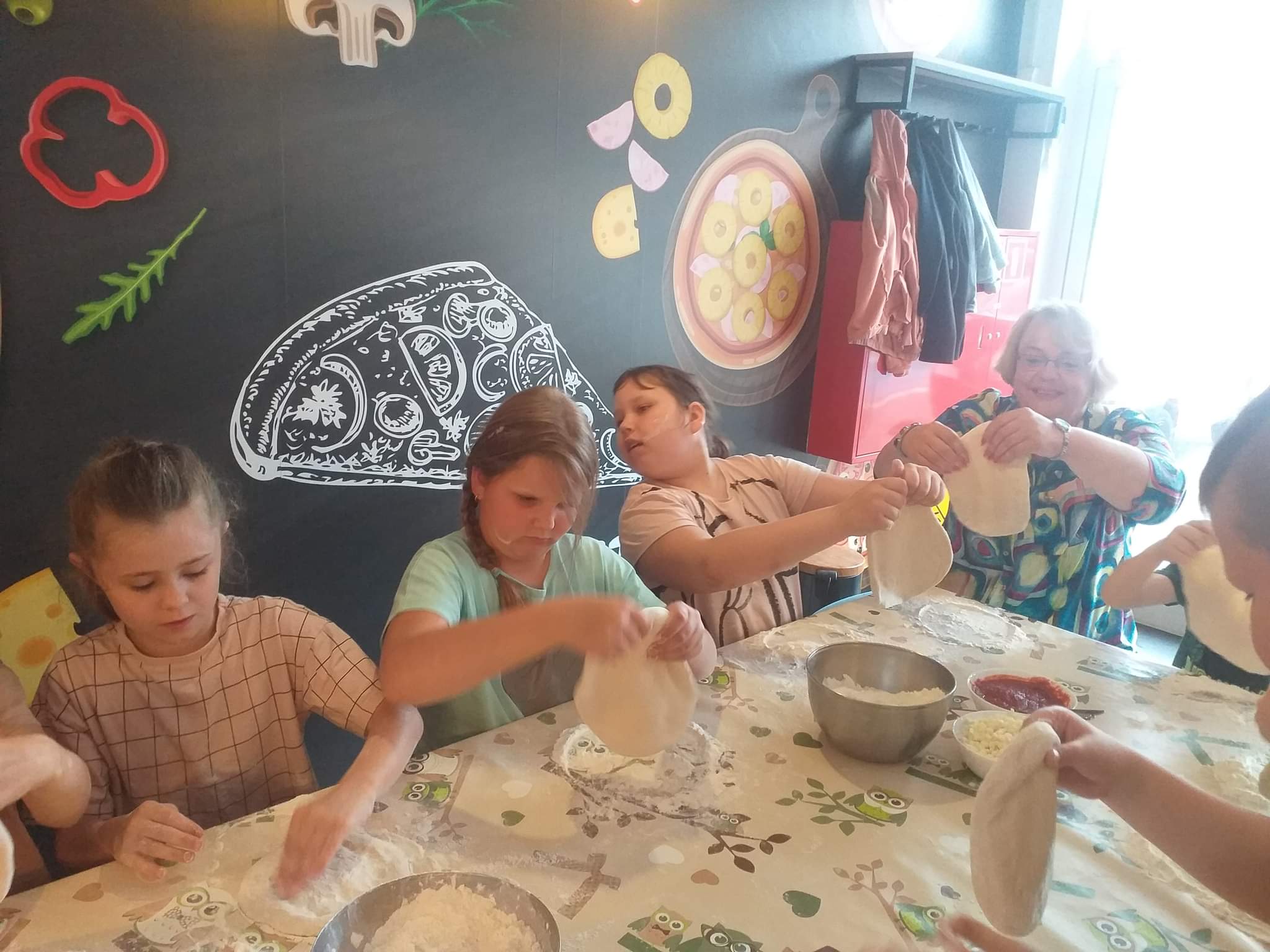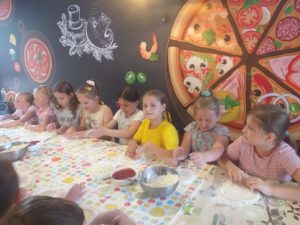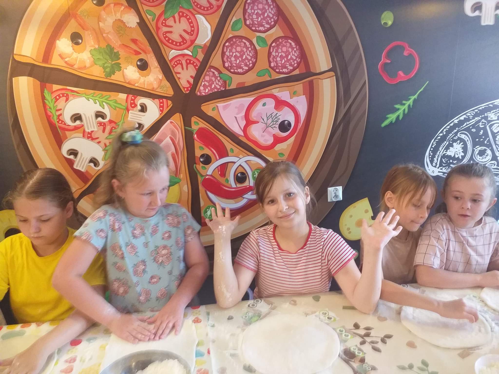 Uczniowie dowiedzieli się w jaki sposób robi się ciasto na pizzę i poznały składniki używane do jej przygotowania. Następnie własnoręcznie robiły pizzę, dobierając ulubione dodatki tworzyły indywidualne kompozycje smakowe. Po upieczeniu pizza pachniała wyśmienicie, wszyscy ze smakiem konsumowali swoje dzieła. Na koniec każde dziecko otrzymało dyplom Szefa Kuchni. Wycieczka była bardzo udana, dzieci wróciły do szkoły w doskonałych humorach.