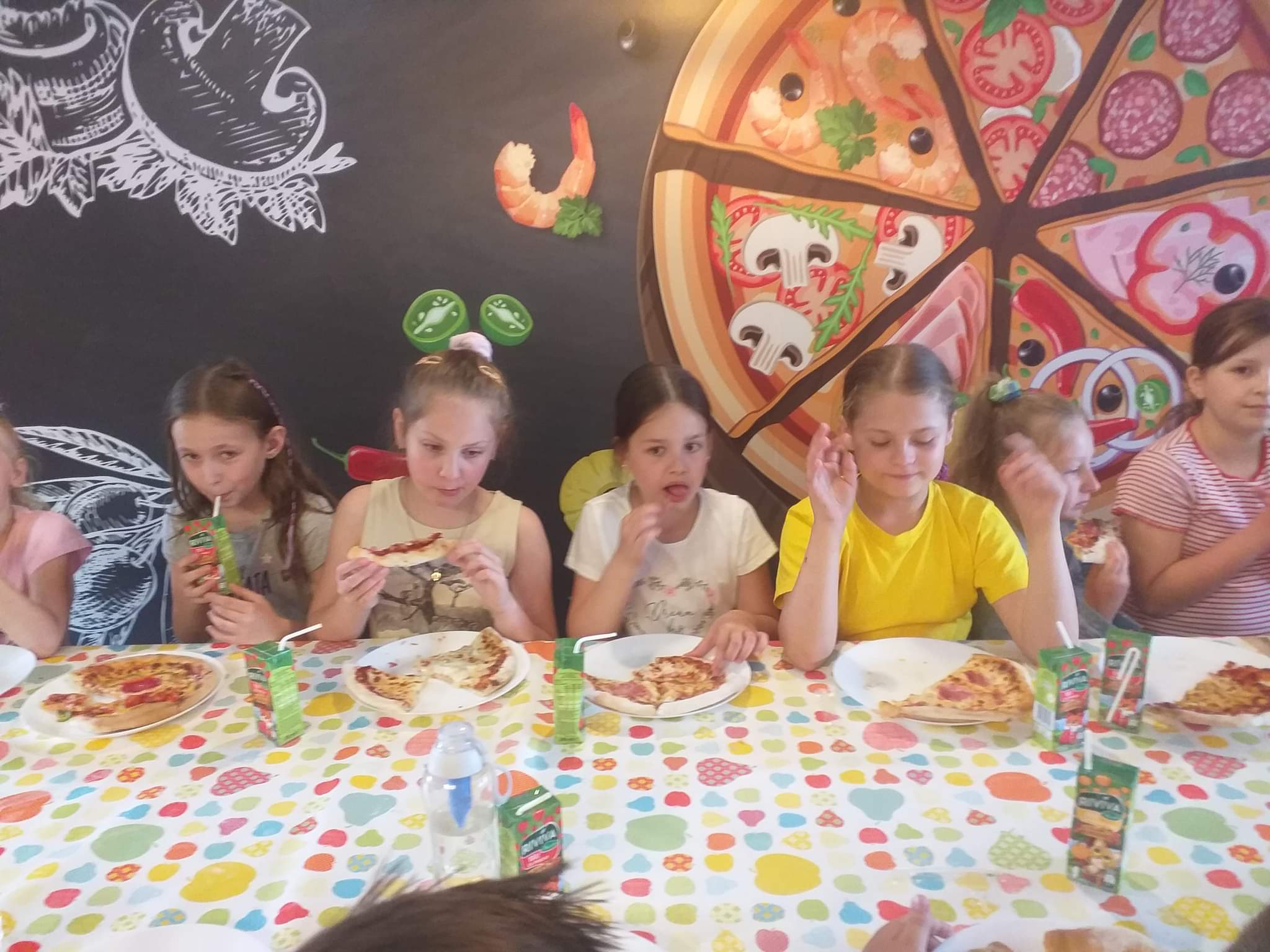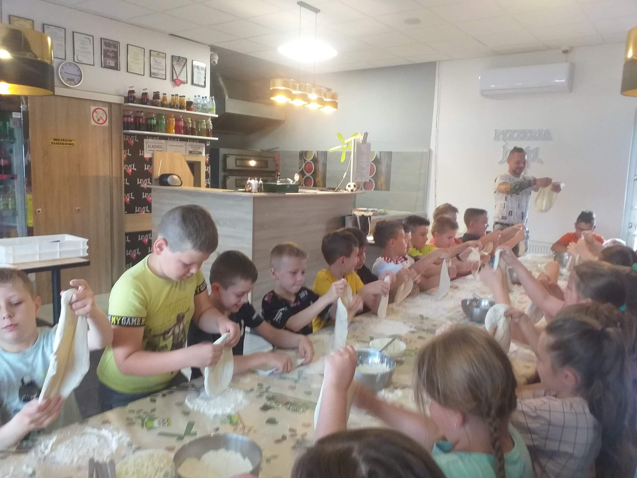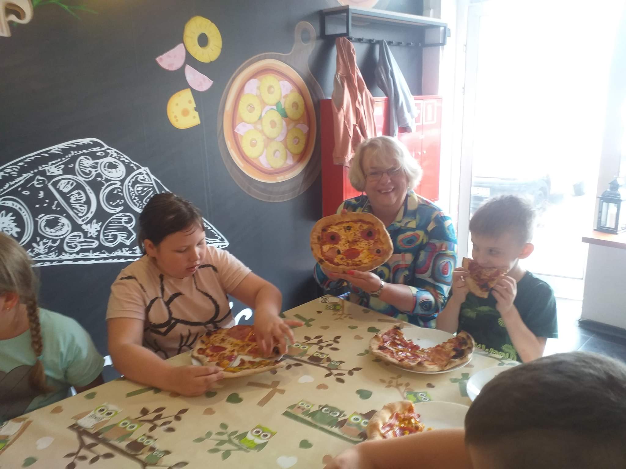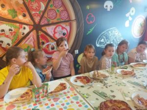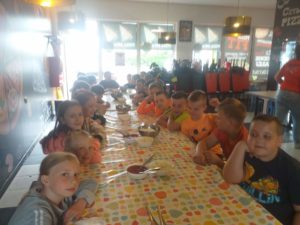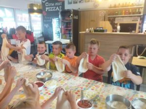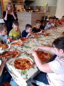 Dnia 10 czerwca uczniowie klas II wraz z paniami udali się na wycieczkę do Pizzerii Level Up w Radomiu. Celem wycieczki było zapoznanie się z pracą w pizzerii. Dzieci przypomniały sobie zasady kulturalnego zachowania się w miejscu publicznym oraz zasady obowiązujące przy stole podczas spożywania posiłku.