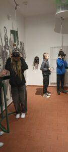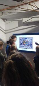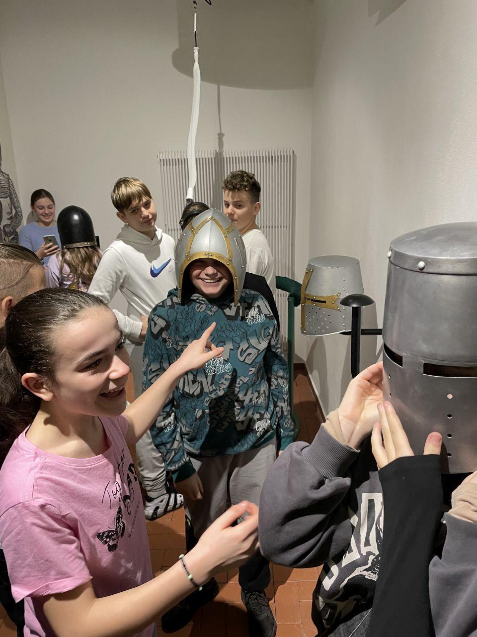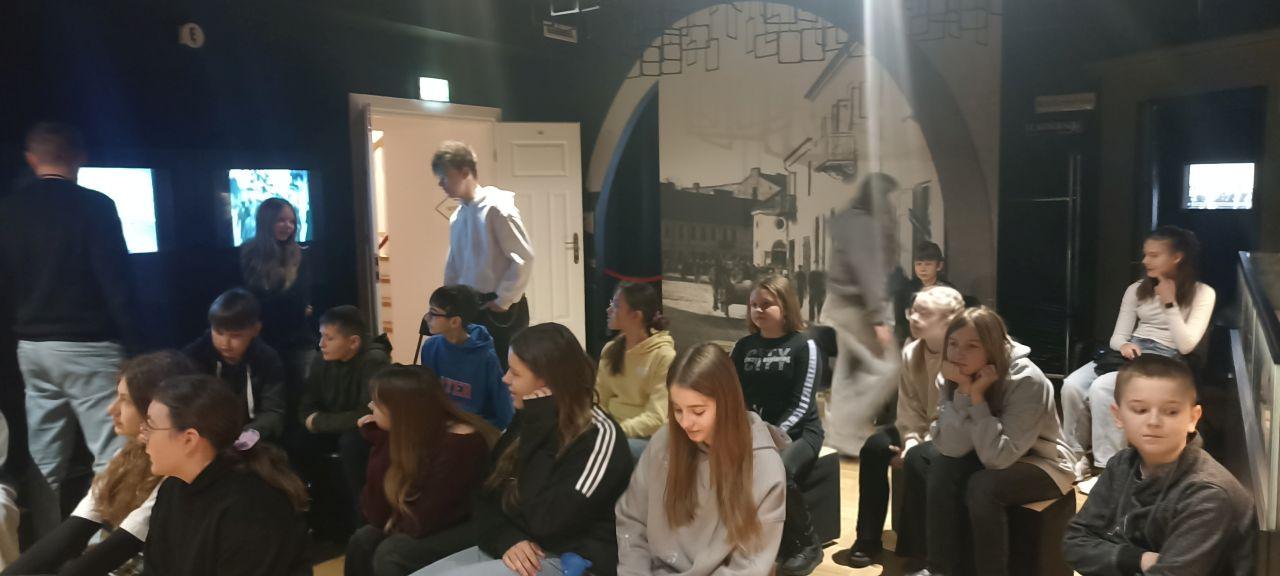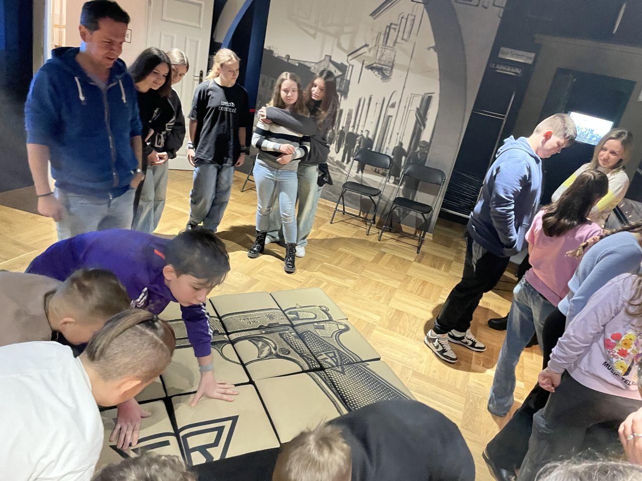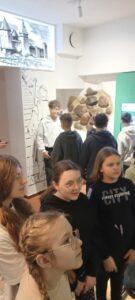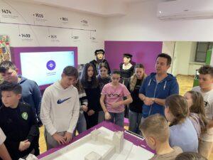 Pierwszym punktem programu było zwiedzanie Muzeum Historii Radomia. Młodzież poznała bogatą historię miasta – od średniowiecza aż do czasów II wojny światowej. Szczególnie interesujące były artefakty związane z przemysłem i kulturą Radomia. Zainteresowanie uczniów wzbudziły nowatorskie rozwiązania w muzeum – hologramy dawnych rzemieślników, okulary VR, które przeniosły uczestników bezpośrednio do dawnego Radomia, liczne tablice interaktywne z ciekawostkami i quizami o kazimierzowskim mieście. Dużą atrakcję stanowiły także stroje z epoki, które uczniowie chętnie przymierzali oraz wizyta w aptece „Pod Białym Orłem”.