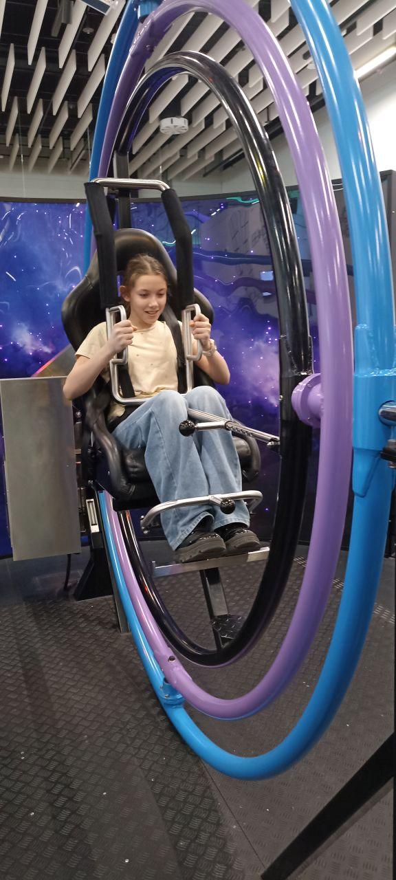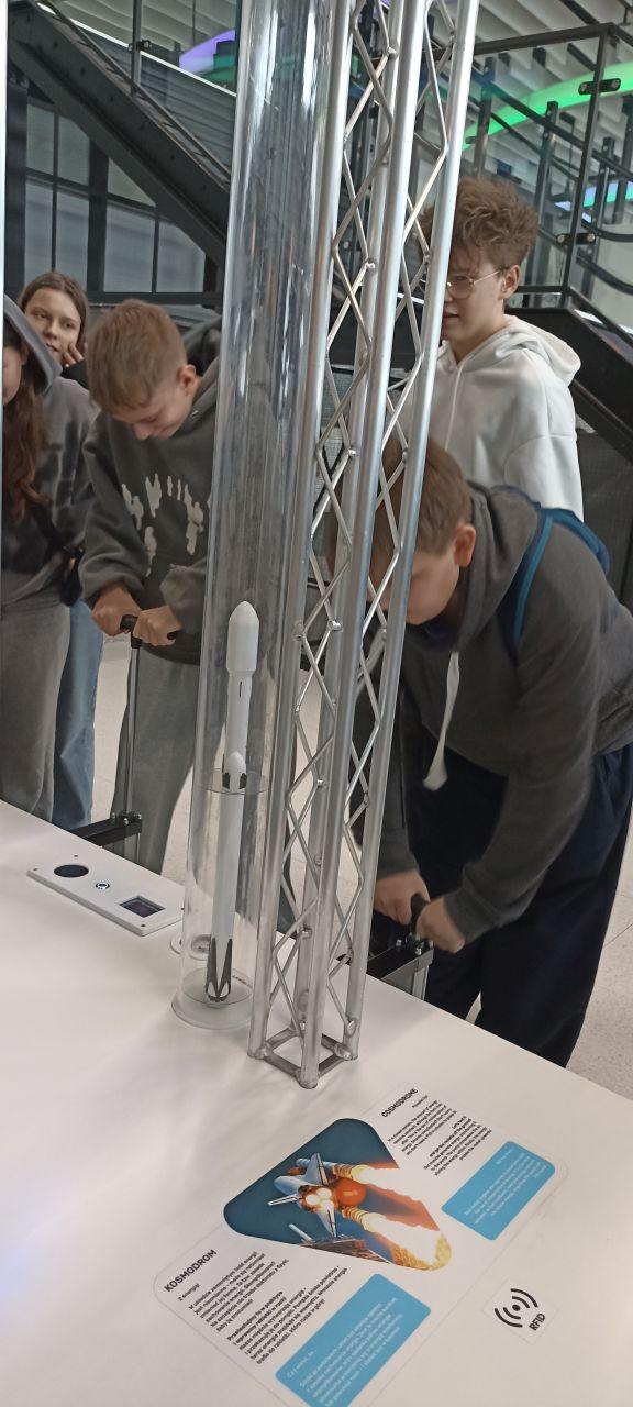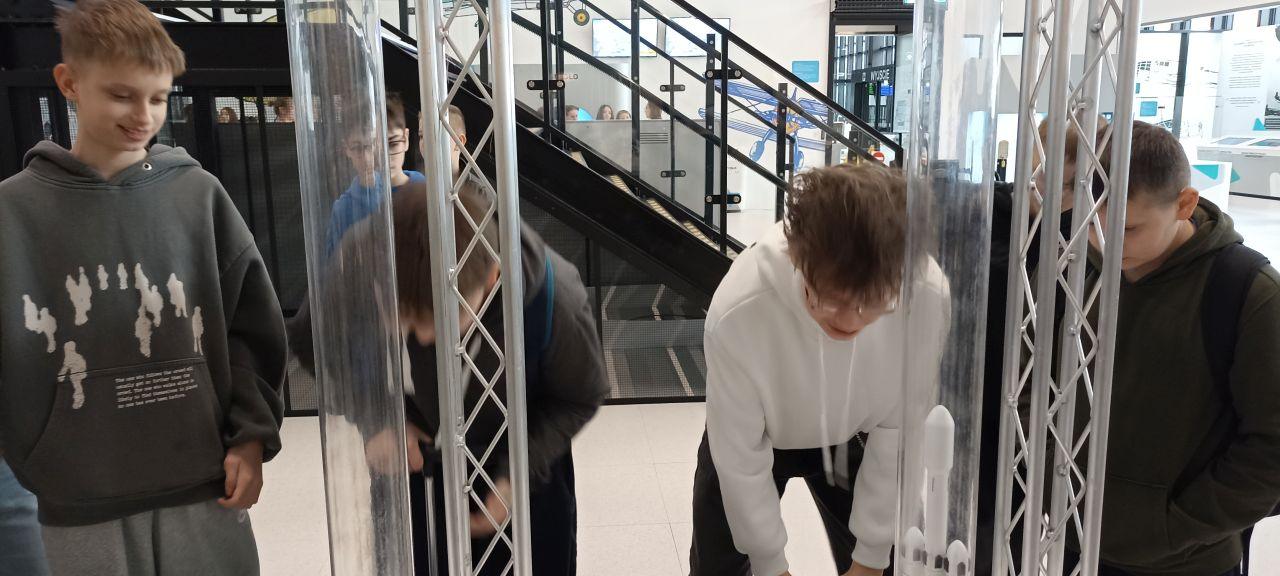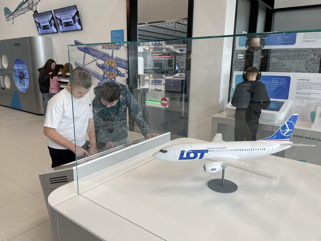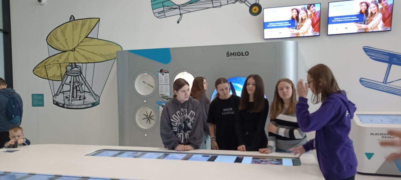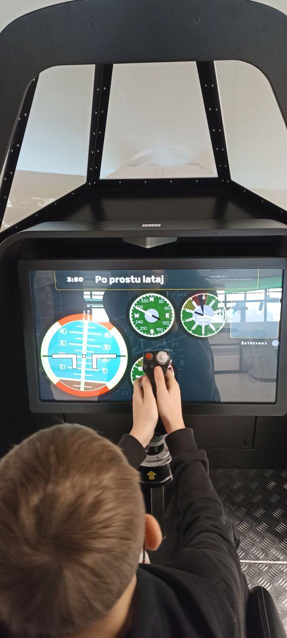 Następnie szóstoklasiści udali się do Flyportu, co było niezwykłym doświadczeniem. Na wystawie poświęconej lotnictwu i podróżom kosmicznym uczniowie mogli spróbować swoich sił m.in. w sterowaniu łazikiem księżycowym, zasiąść w kokpicie samolotu, posłać rakietę w powietrze, czy też poznać tajniki działania radaru. Jednak największą atrakcją centrum okazał się żyroskop. Urządzenia tego typu są stosowane podczas profesjonalnych szkoleń lotniczych, więc nasi uczniowie na krótką chwilę wcielali się