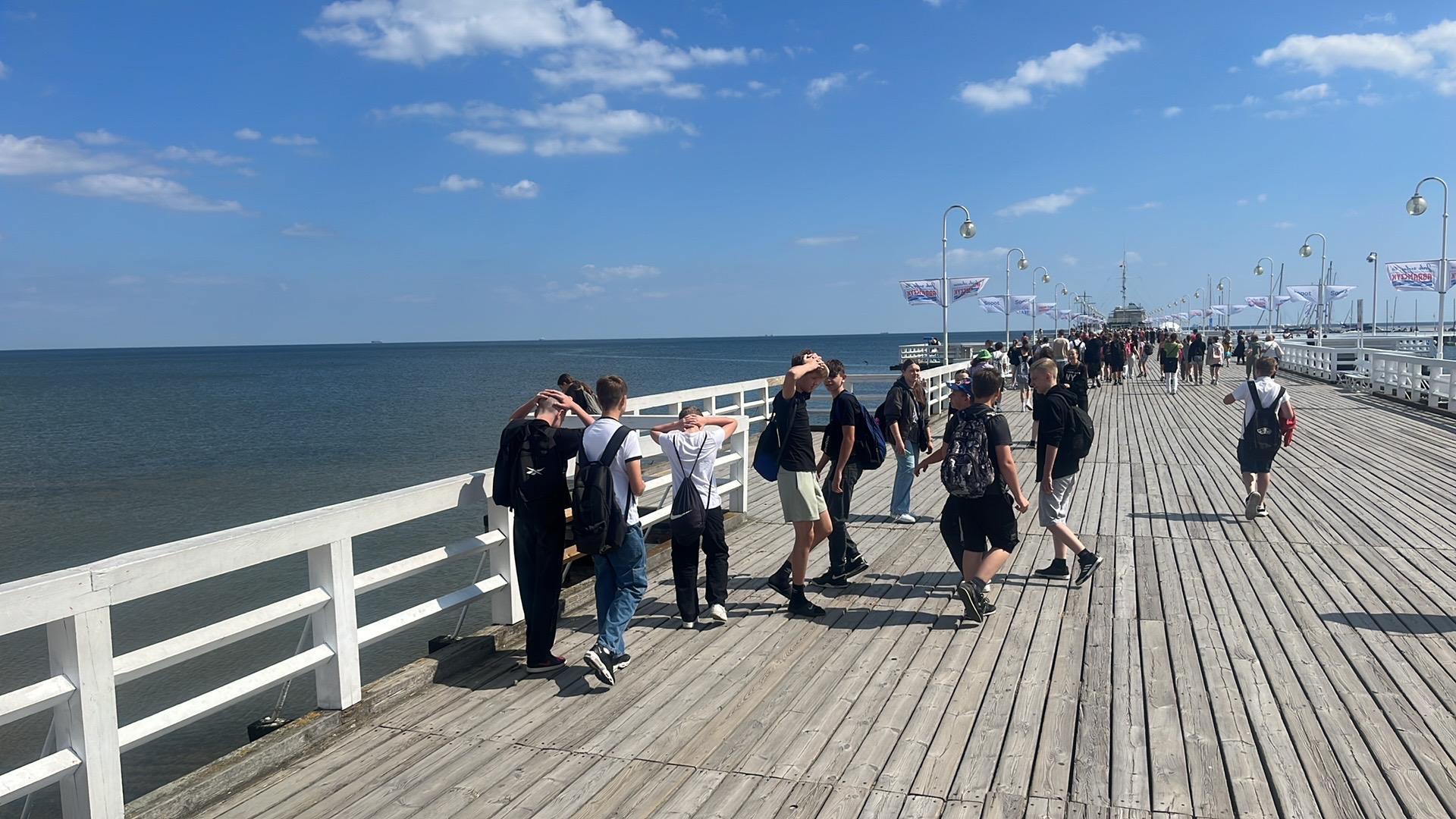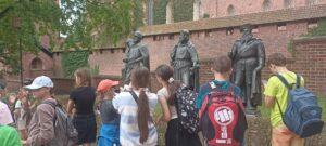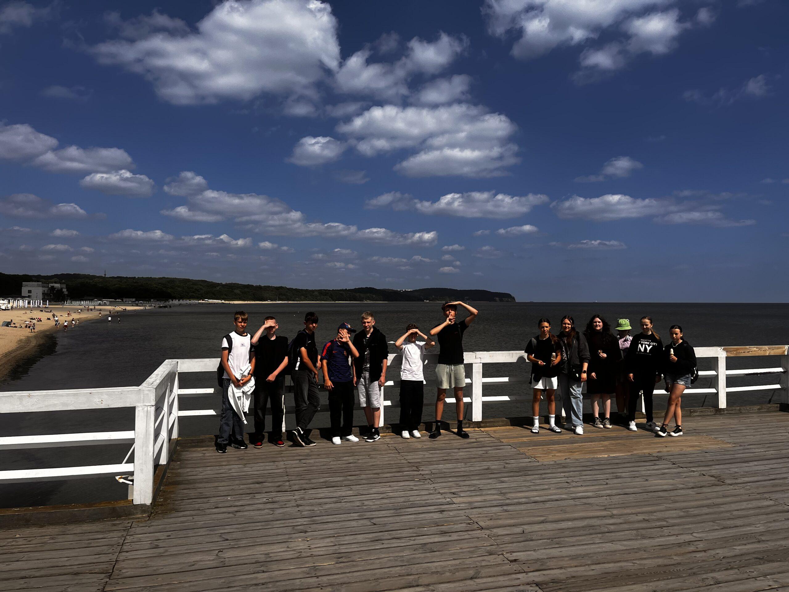 W dniach 03 – 06 czerwca 2024 roku uczniowie klas 5 – 8 wzięli udział w czterodniowej wycieczce do Trójmiasta. Program wycieczki był bardzo bogaty i obfitował w wiele atrakcji. Uczniowie mieli okazję nie tylko poznać historycznie istotne dla Polski zakątki, ale także nawiązać przyjacielskie relacje w ramach klasowej integracji. Pierwszego dnia, po kilkugodzinnej podróży poznaliśmy Westerplatte. Przewodnicy opowiedzieli nam o heroicznej walce Obrońców Polskiego Wybrzeża, które jako pierwsze przyjęło na siebie ciężar ataku niemieckiego najeźdźcy w dniach 1-7 września 1939 r. Tego samego dnia, po obiadokolacji udaliśmy się na plażę w Stegnie, by przywitać się z Bałtykiem. Pomimo zmęczenia wywołanego podróżą uczniowie spędzili mile czas, grając w piłkę czy po prostu siedząc na kocach i podziwiając zachód słońca. Drugi dzień to zwiedzanie Gdańska i jego charakterystycznych obiektów – Neptuna, uroczych kamieniczek Starówki, Bazyliki pod wezwaniem Wniebowzięcia Najświętszej Maryi Panny, a także siedziby Poczty Polskiej. Był czas wolny na lody i gofry, które wzmocniły nas przed drugim punktem programu, czyli zwiedzaniem jednego z najciekawszych muzeów w Polsce – Muzeum II Wojny Światowej. Ten oddany w 2016 r. obiekt jest niesamowitym miejscem, szczegółowo opowiadającym historię jednej z najstraszniejszych wojen w dziejach historii ludzkości. Po tej niezwykłej lekcji historii wróciliśmy do Stegny na obiadokolację, a potem spędziliśmy kolejny wieczór na plaży. Trzeci dzień obfitował w kolejne atrakcje. Rozpoczęliśmy go wycieczką do Sopotu, gdzie przechadzaliśmy się po jego słynnym deptaku, zwanym Monciakiem, a także udaliśmy się na spacer po najsłynniejszym molo. Towarzyszyła nam, podobnie jak poprzedniego dnia, piękna, słoneczna pogoda. Z Sopotu udaliśmy się malowniczą drogą na Hel. Po jednej stronie mieliśmy widok na Morze Bałtyckie, a po drugiej na Zatokę Gdańską. Po drodze mijaliśmy słynne kurorty: Chałupy, Jastarnię i Juratę. Na Helu zwiedziliśmy fokarium i dokonaliśmy zakupów pamiątek. Z Helu udaliśmy się w rejs do Gdyni. Przez ponad godzinę podziwialiśmy uroki polskiego Wybrzeża. Rejs statkiem była dla wielu uczniów pierwszą taką przygodą w życiu. W Gdyni przyjrzeliśmy się z bliska słynnym fregatom, takim jak ,,Dar Pomorza oraz Okrętowi ORP ,,Błyskawica. Był tam również czas wolny, podczas którego uczniowie mogli zrobić niewielkie zakupy albo zjeść coś smacznego. Czwartego dnia po śniadaniu udaliśmy się na długi spacer nad morze, by pożegnać się z Bałtykiem. Ciągle towarzyszyło nam piękne słońce. Następnie wyruszyliśmy w niedługą podróż do Malborka. Tam, po przerwie na posiłek w restauracji McDonalds, zwiedziliśmy najsłynniejszy w Polsce zamek krzyżacki i poznaliśmy jego historię. Zamek, zniszczony w 50% w czasie II wojny światowej, obecnie robi imponujące wrażenie. Po zwiedzeniu tego wspaniałego obiektu udaliśmy się w podróż do Mazowszan, dokąd przybyliśmy w późnych godzinach wieczornych. Wycieczka na Pomorze była wspaniałym czasem nie tylko poznawania pięknych i historycznych zakątków naszej Ojczyzny, ale także czasem poznawania się nawzajem. Mamy nadzieję, że w przyszłości też będą ku temu okazje.
