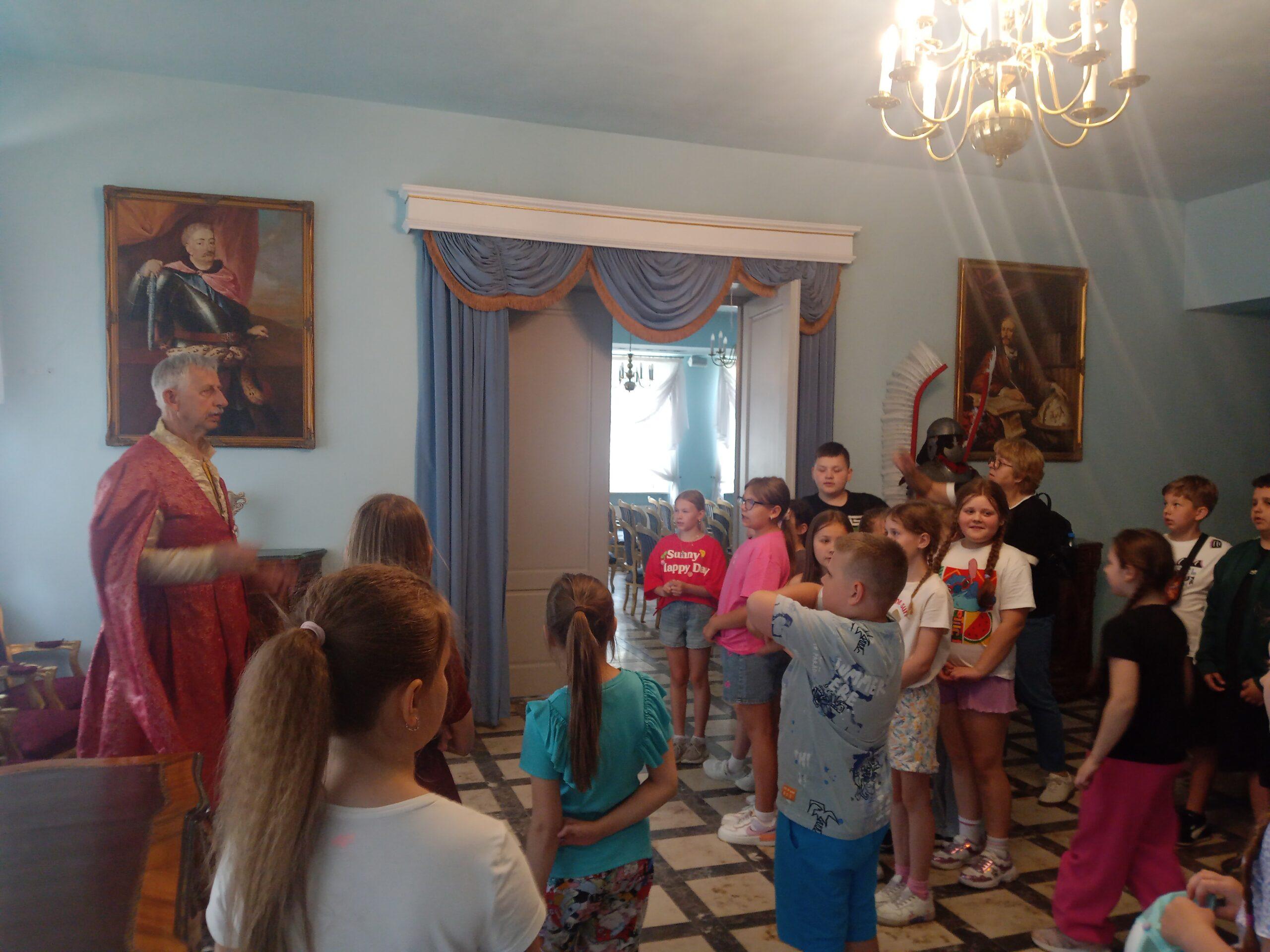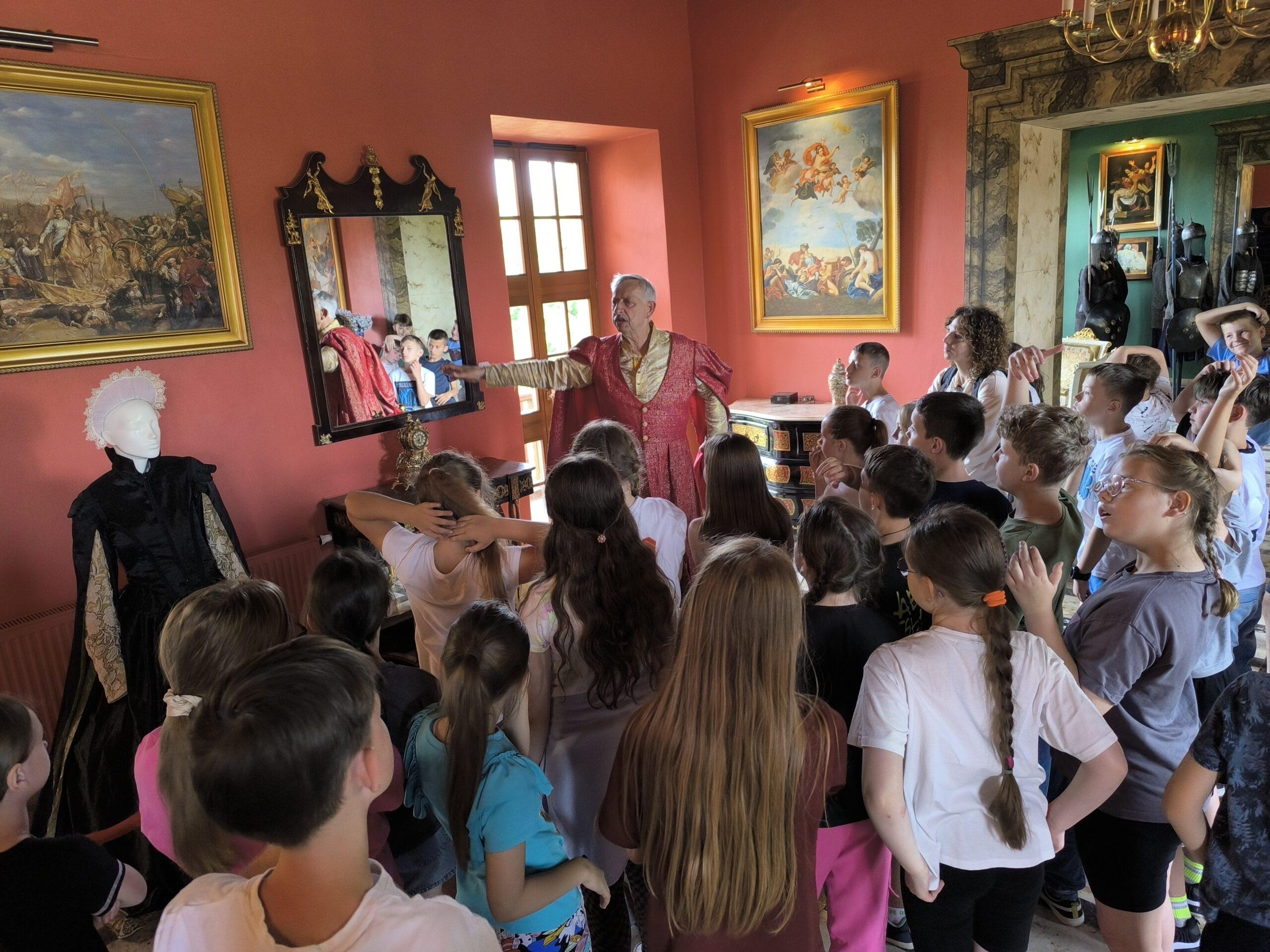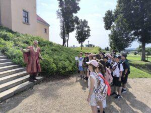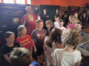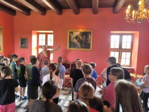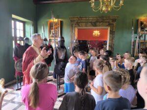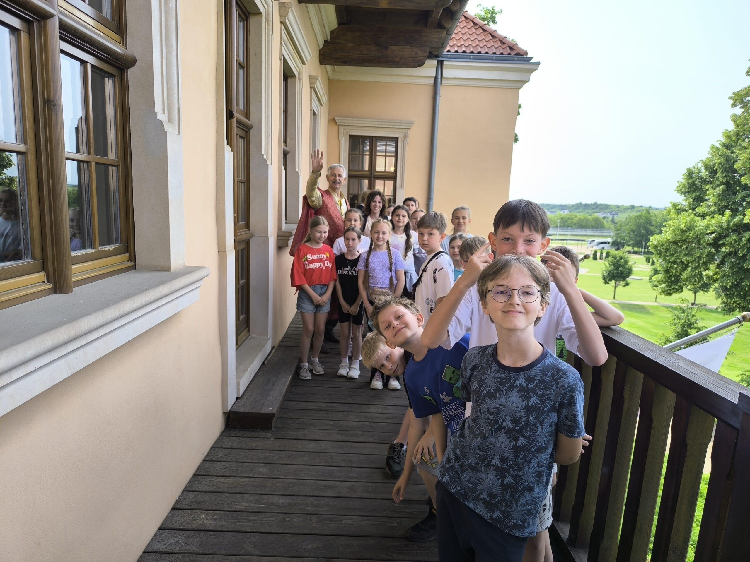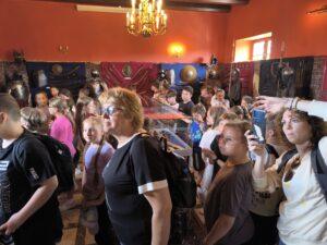 Pierwszym punktem naszej wyprawy był Dwór Starostów Chęcińskich. Budowla zachwyciła nas swoją architekturą oraz historią. Podczas zwiedzania dowiedzieliśmy się, jak wyglądało życie starostów w dawnych czasach. Przewodnik w ciekawy sposób opowiadał o dziejach dworu.