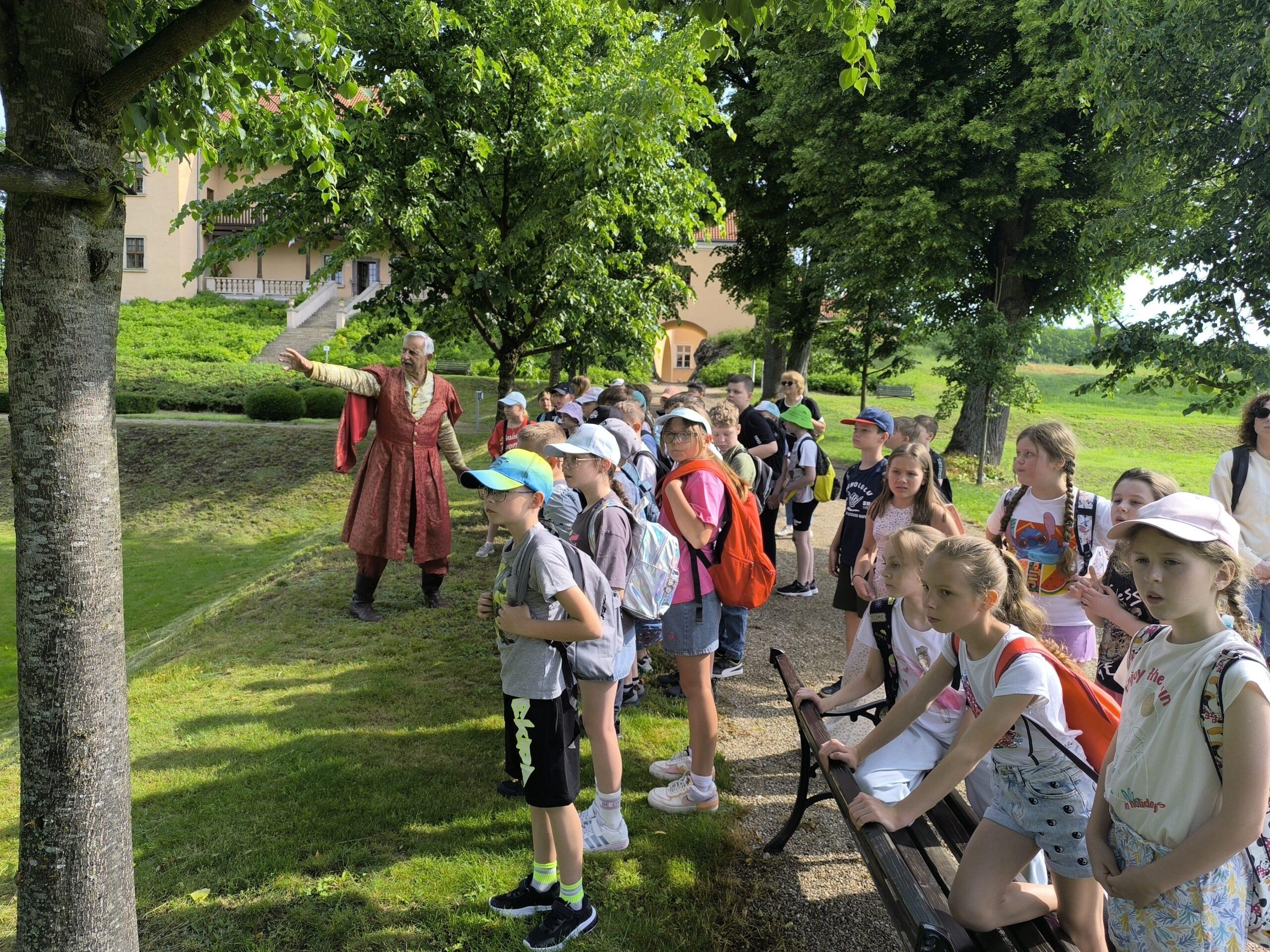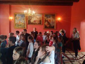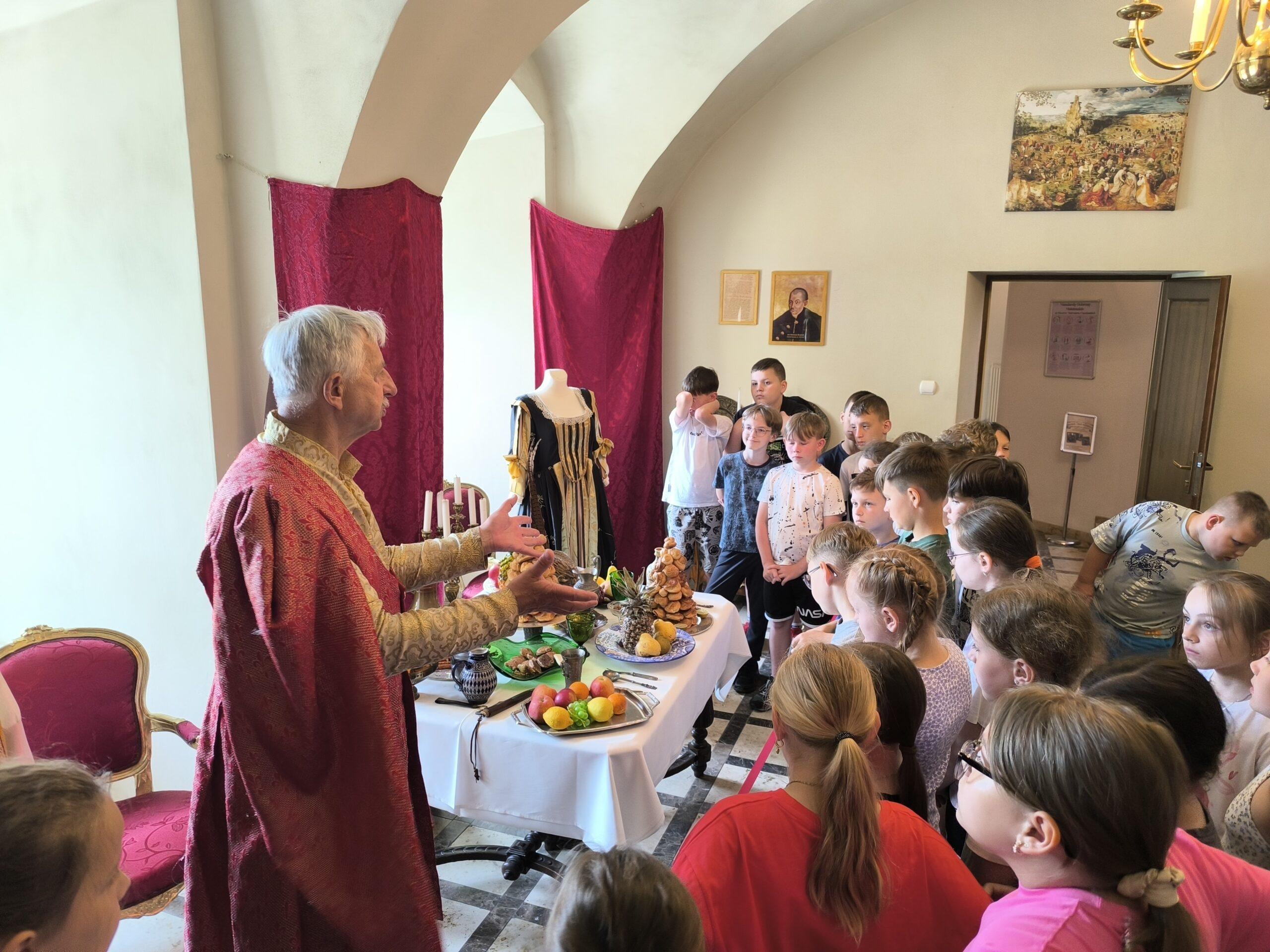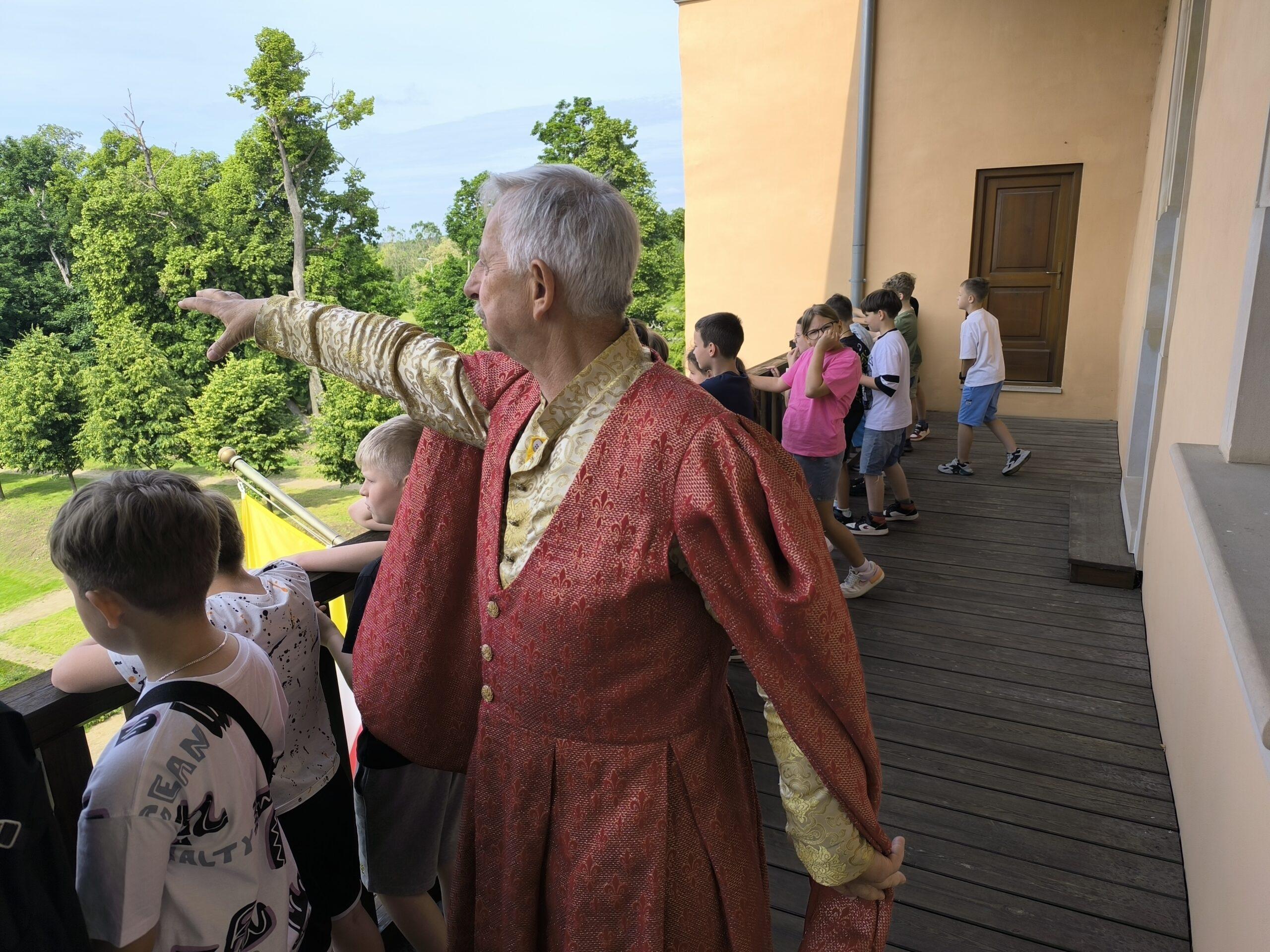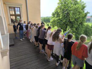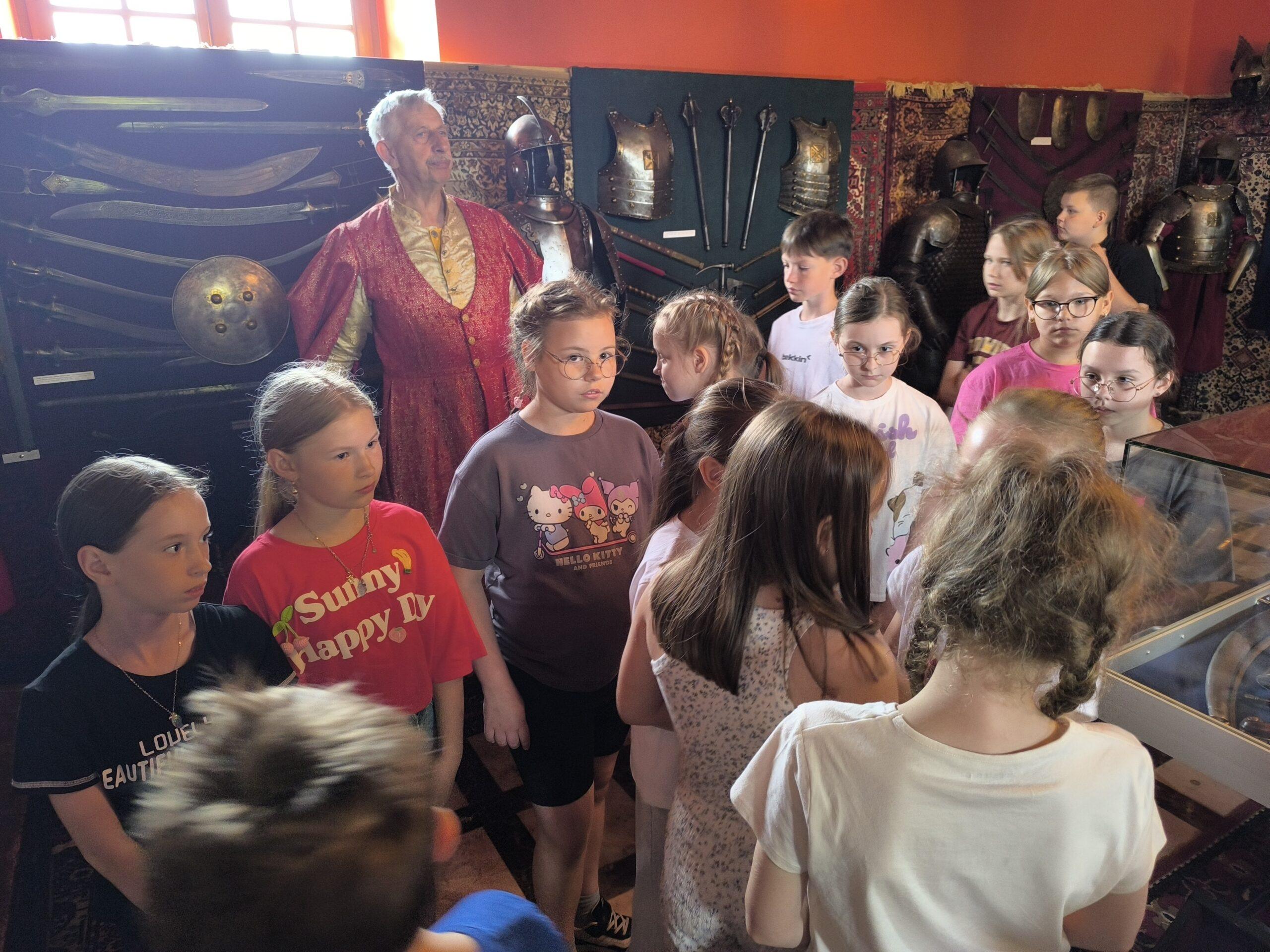 Pierwszym punktem naszej wyprawy był Dwór Starostów Chęcińskich. Budowla zachwyciła nas swoją architekturą oraz historią. Podczas zwiedzania dowiedzieliśmy się, jak wyglądało życie starostów w dawnych czasach. Przewodnik w ciekawy sposób opowiadał o dziejach dworu.