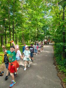 Po wizycie w centrum nauki udaliśmy się do jednej z największych atrakcji przyrodniczych regionu – Jaskini Raj. Zwiedzanie tej pięknej jaskini było dla wszystkich niezwykłym przeżyciem. Oglądaliśmy różnorodne formy nacieków skalnych: stalaktyty, stalagmity i stalagnaty, a także dowiedzieliśmy się, jak powstała jaskinia i jakie organizmy zamieszkiwały ją w przeszłości.