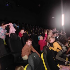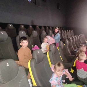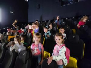 W dniu 27.09.2023 r. dzieci z grupy 0a i Ob wybrały się na wycieczkę do kina Helios w Radomiu na bajkę pt. „Kosmici w mojej szkole”.