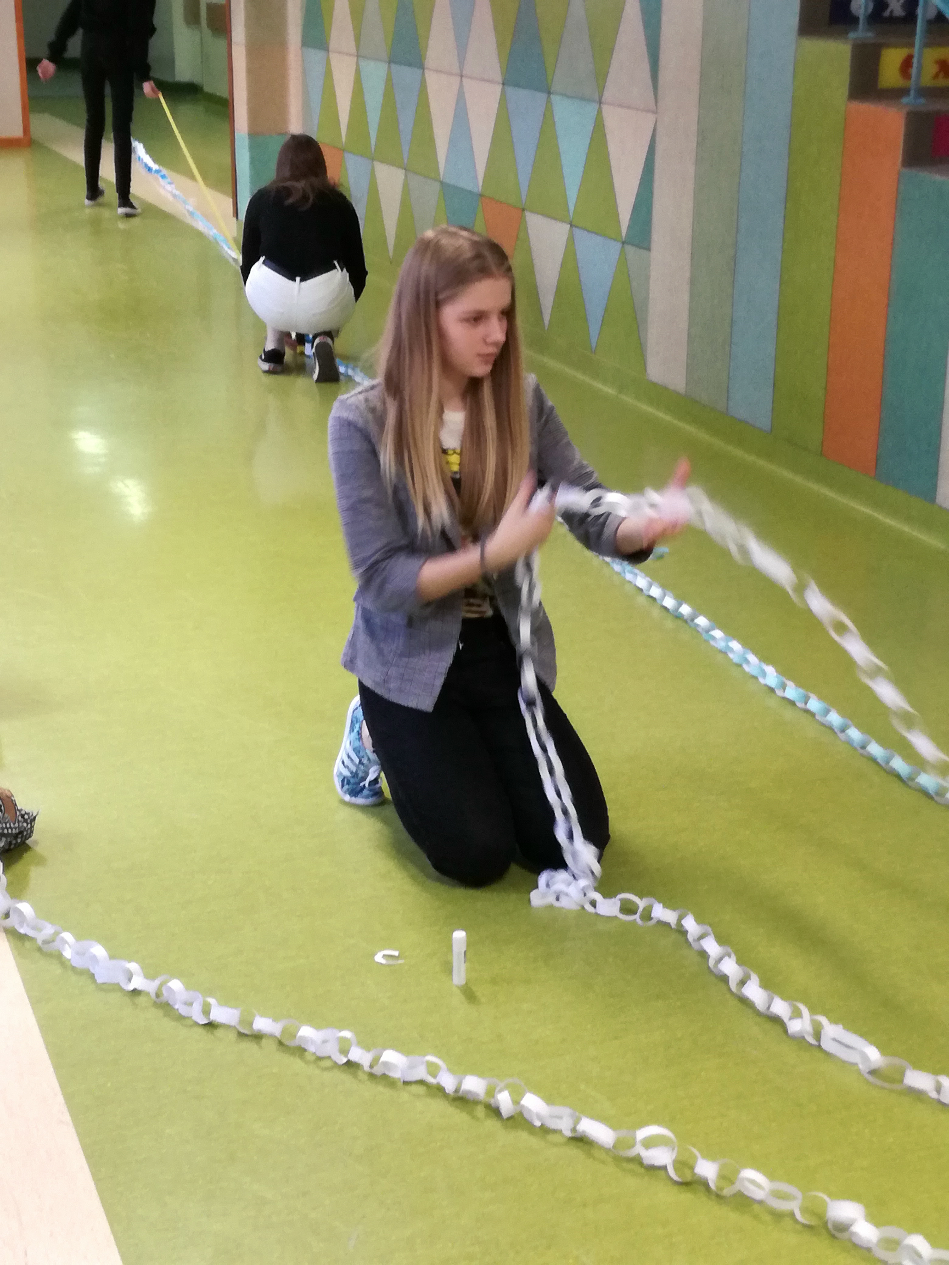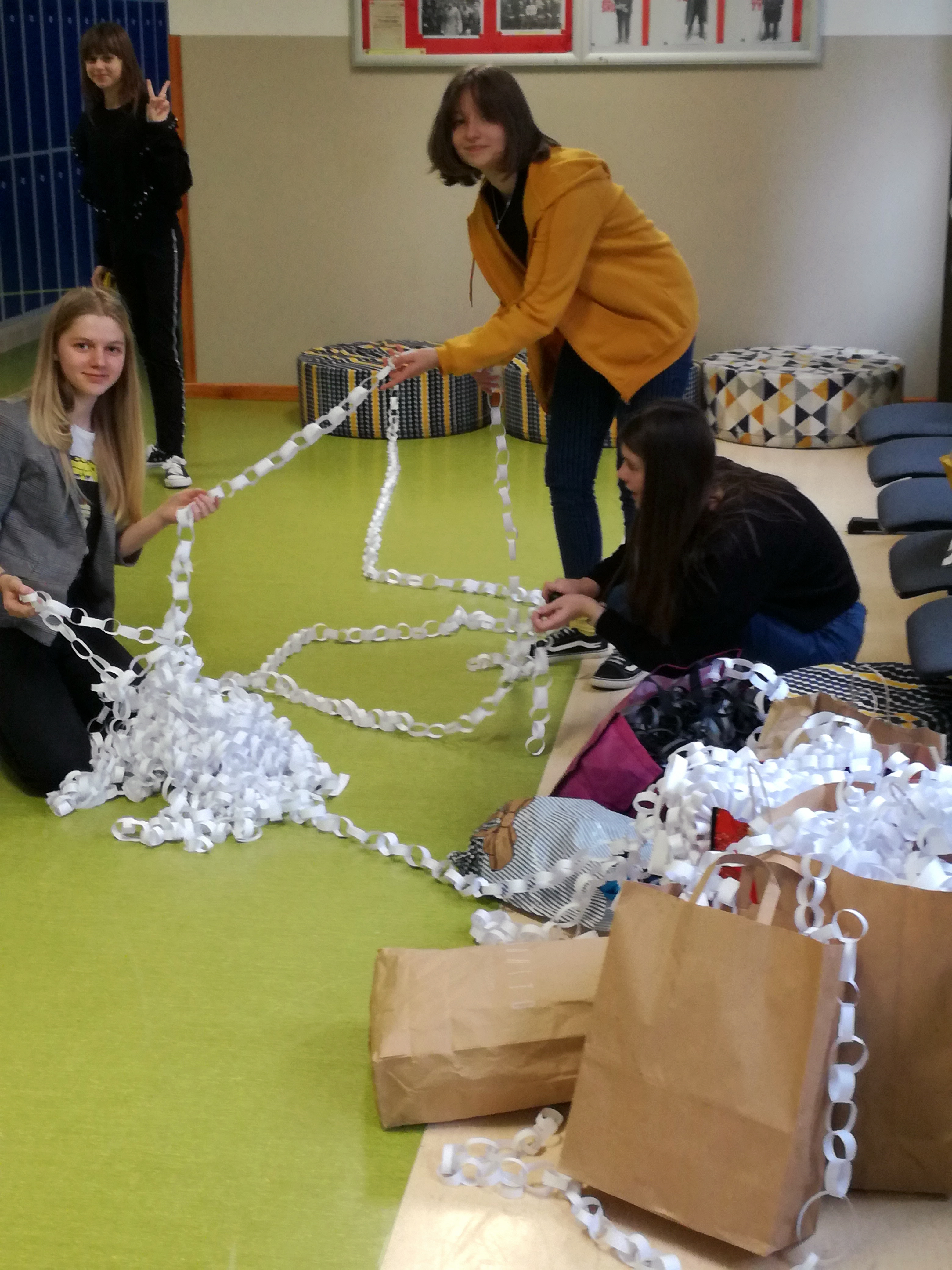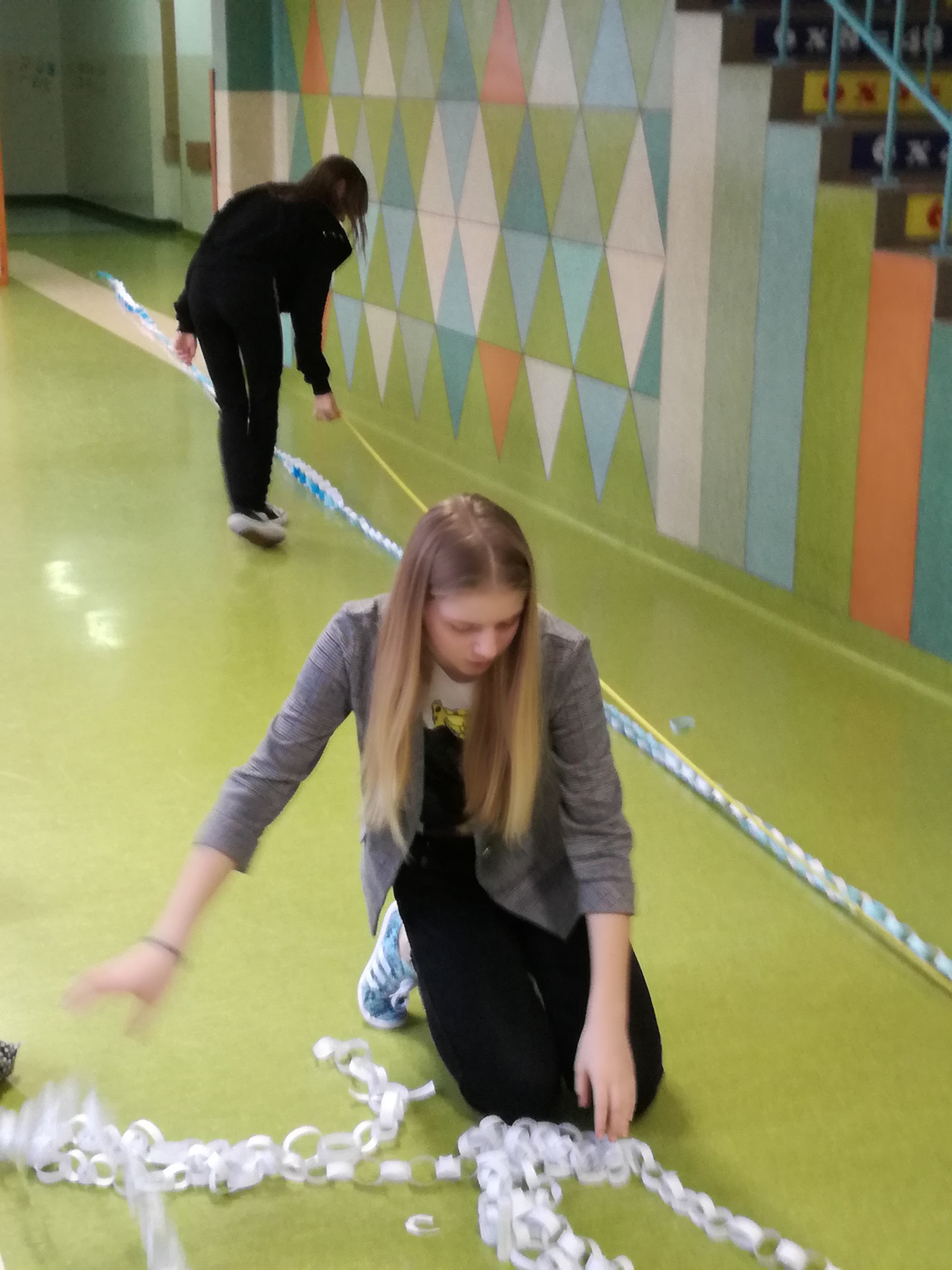 Do konkursu  przystąpiło 15 klas: 0b, 1a, 1b, 2a, 2b, 3a, 3b, 4b, 5a, 5b, 5c, 6a, 6b, 7b, 8b. W konkursie oprócz długości oceniana była estetyka, kreatywność i kolorystyka. Nie wszystkie klasy trzymały się ustalonych reguł. Na wyróżnienie pod względem kreatywności zasługują 3 klasy: 1a, 5b i 8b. Najdłuższe łańcuchy wykonali uczniowie kl. 6a i 6b.
