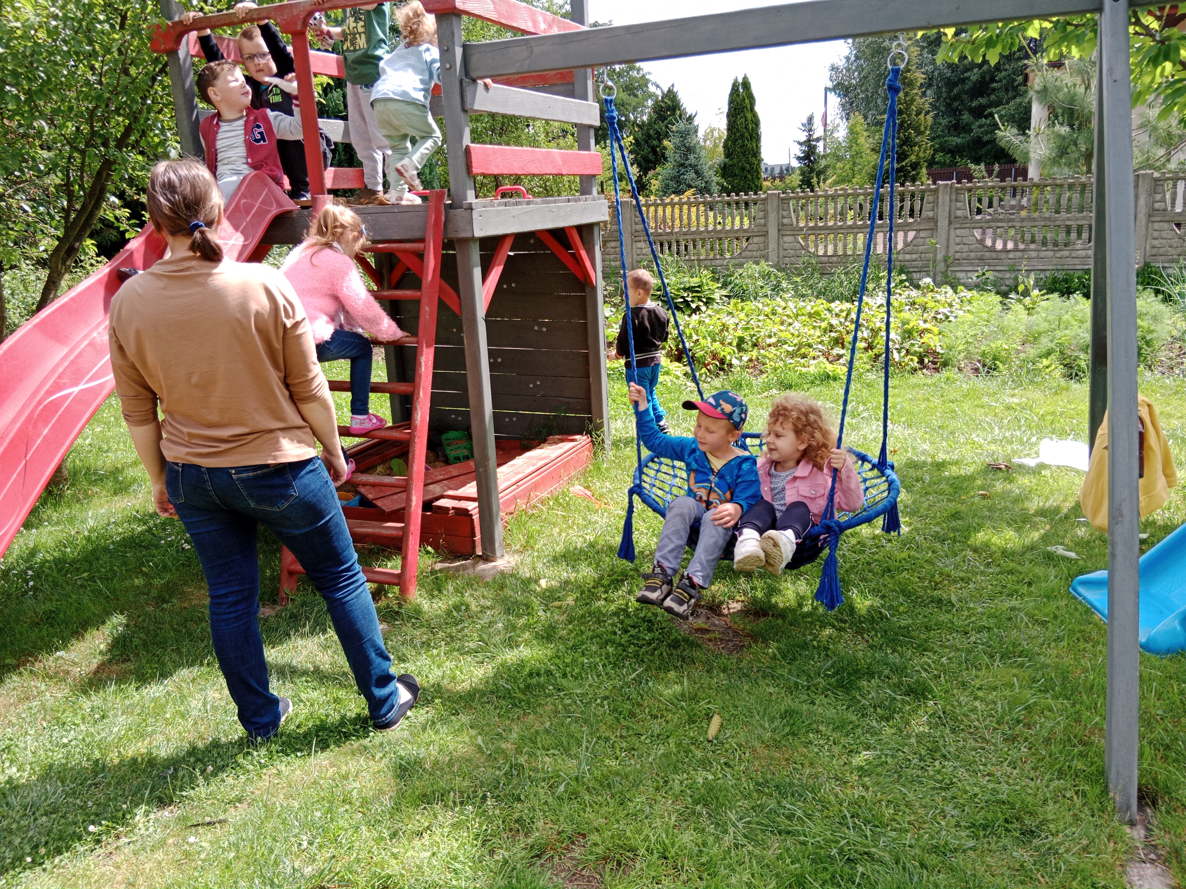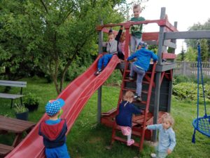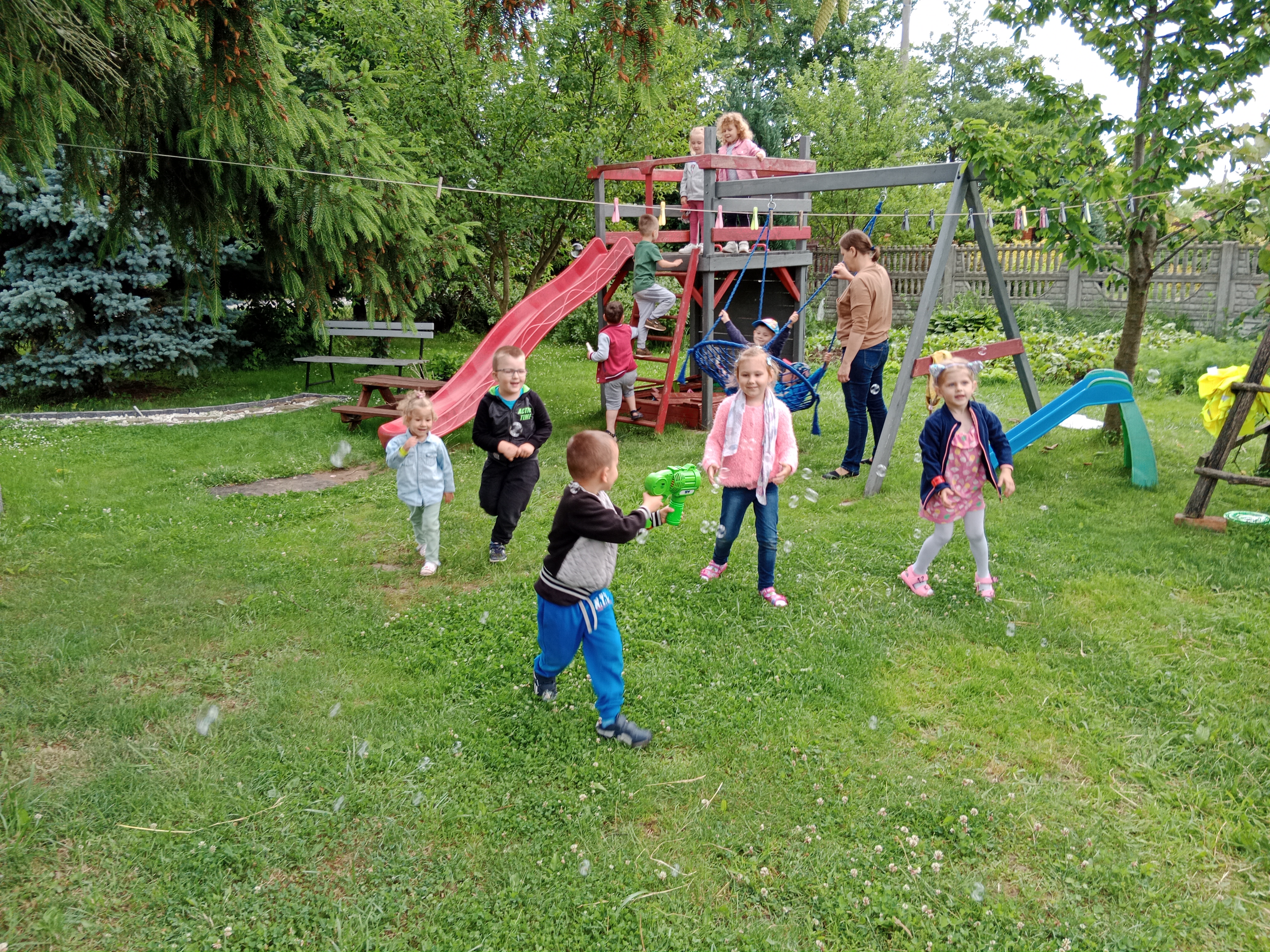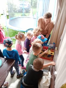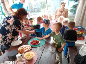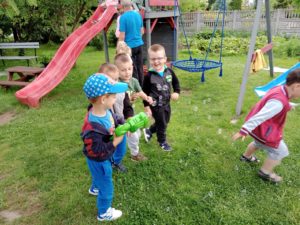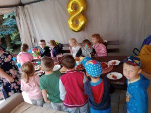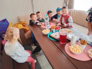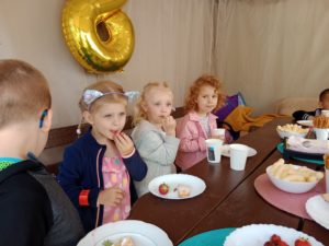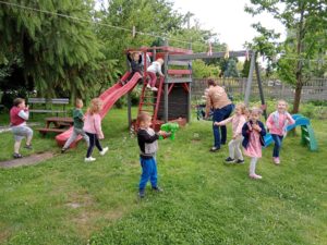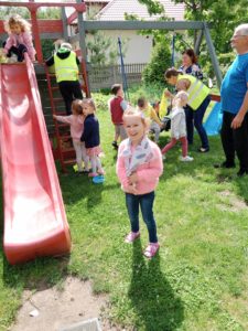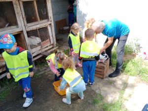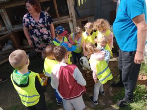 Mogły również nakarmić króliki marchewką i sałatą, którą przyniosły ze sobą. To był wspaniały czas, w którym dzieci chętnie wyszły poza teren szkoły, a przy okazji była super zabawa na świeżym powietrzu (bańki mydlane, zjeżdżalnia, wspinaczki, trampolina) oraz słodki poczęstunek. Dzieci wróciły w doskonałych humorach z nadzieją na następną wyprawę.