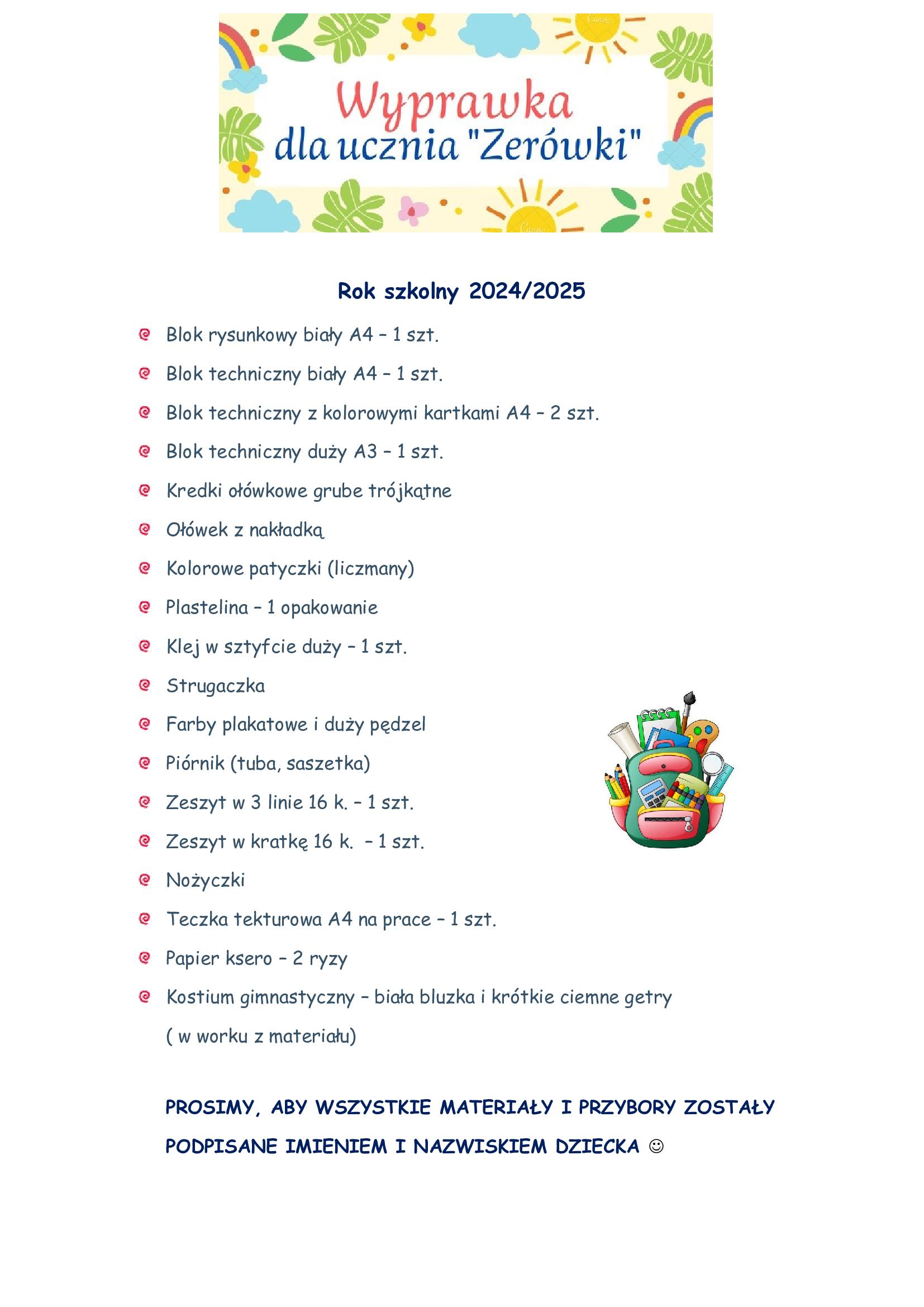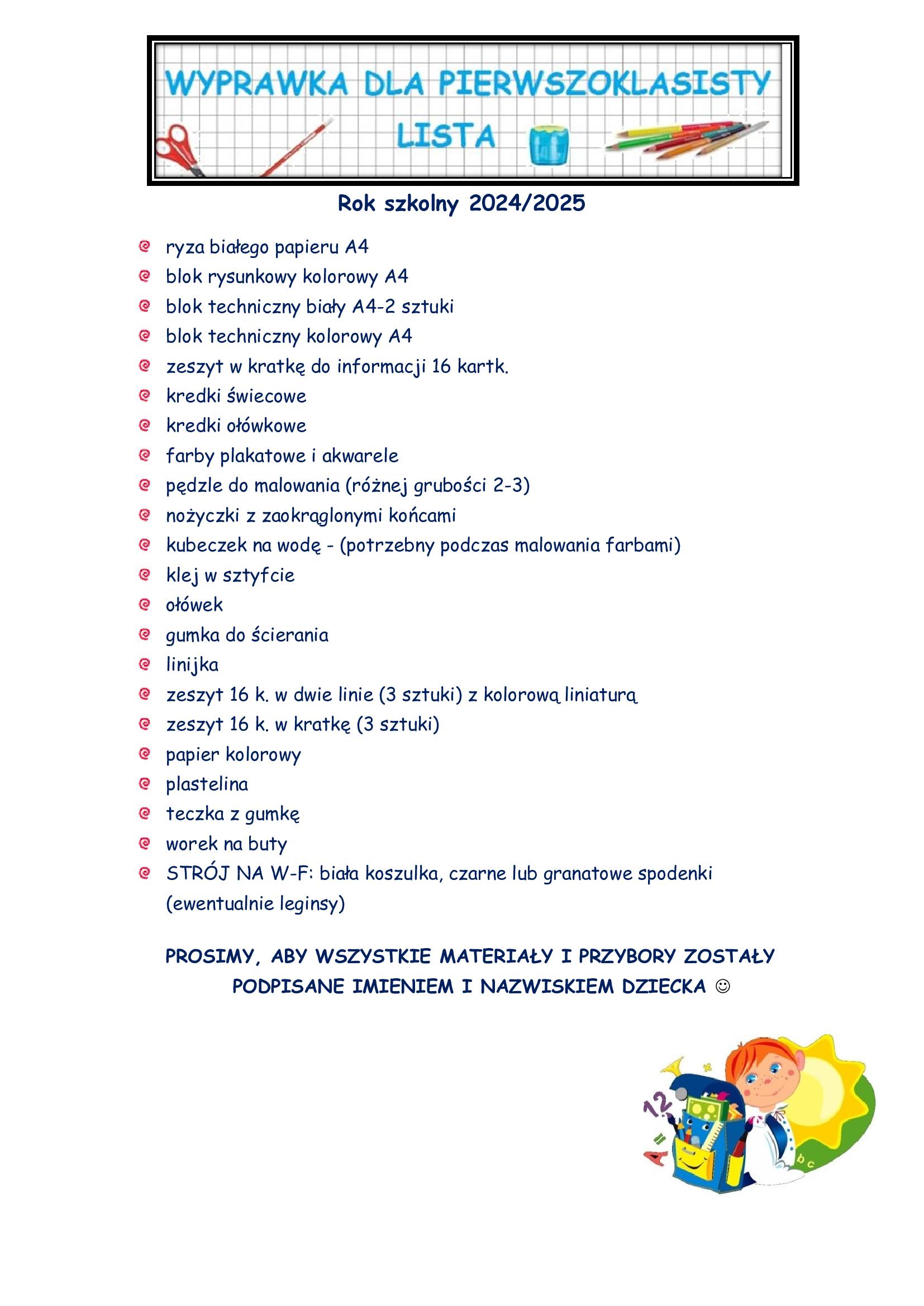 Wyprawka przedszkolaka i pierwszoklasisty na rok szkolny 2024/2025
