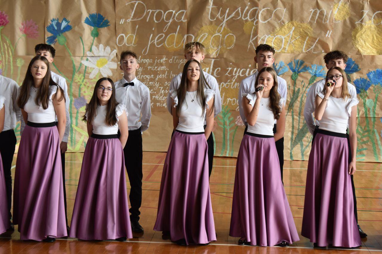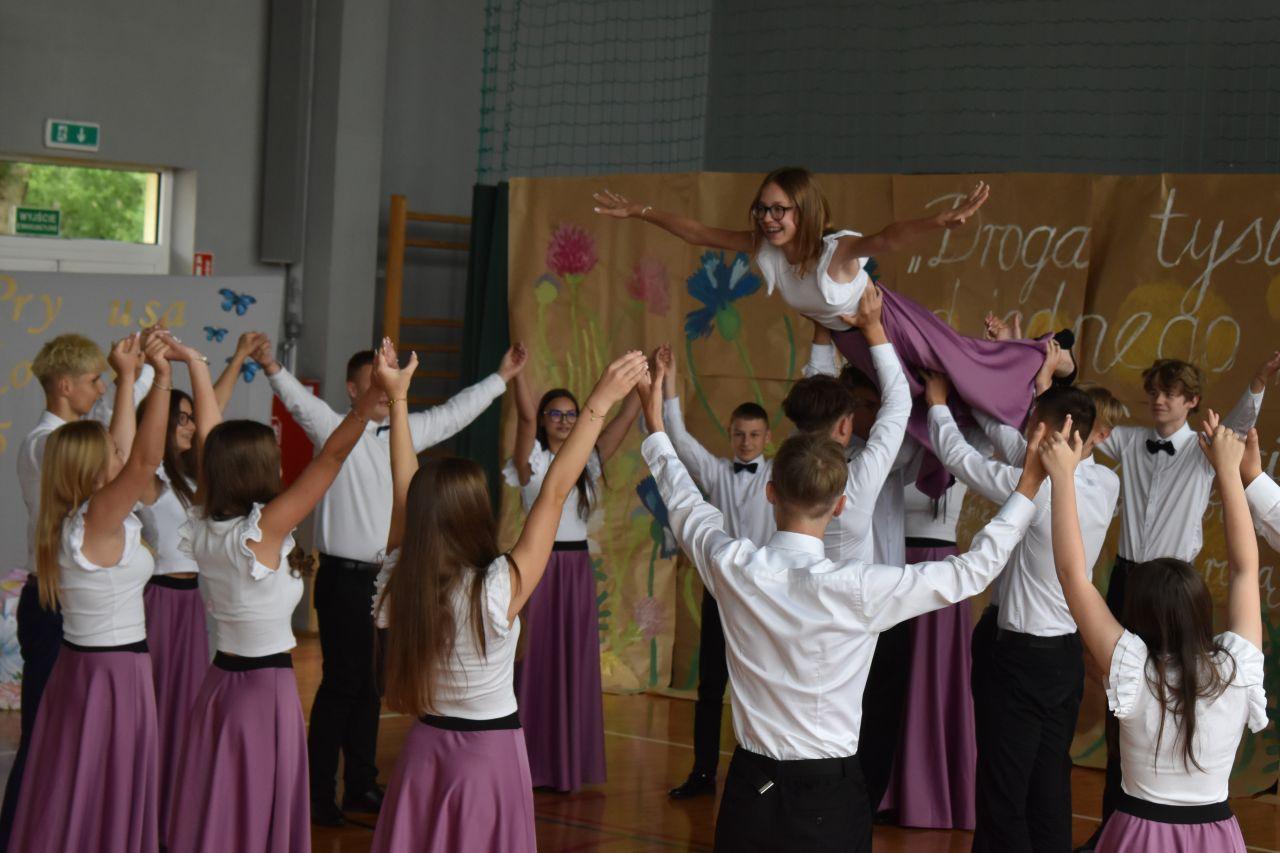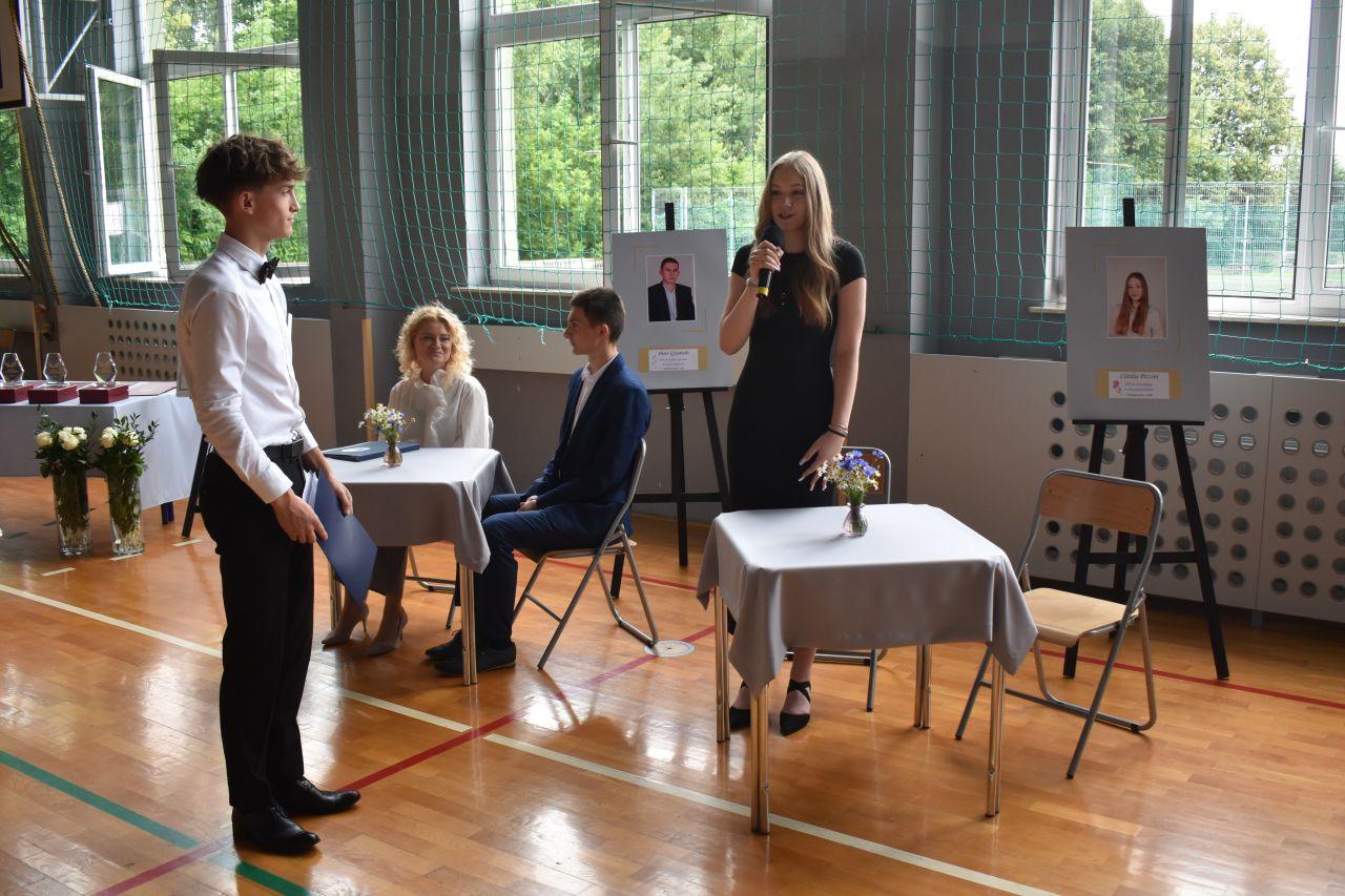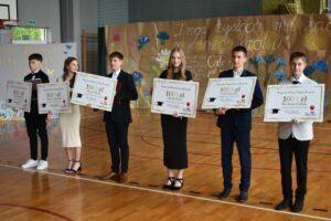 Wychowawcy laureatów kolejno prezentowali ich osiągnięcia, mówili o pasjach nie tylko naukowych, ale artystycznych i sportowych, gdyż ich uczniowie są wszechstronnie uzdolnieni i realizują się w wielu dziedzinach. Wrażliwi na dobro społeczne działają też w Szkolnych Kołach Wolontariatu, reprezentują szkołę w pocztach sztandarowych, działają w Samorządach Uczniowskich. Zwyciężają w wielu olimpiadach przedmiotowych i konkursach plastycznych, recytatorskich oraz zawodach sportowych – nawet na poziomie powiatu czy ogólnopolskim. Prezentacje multimedialne przeplatane były piosenkami w wykonaniu klasy 7b i tańcami, które przygotowali uczniowie klas 1-4 oraz klas ósmych.