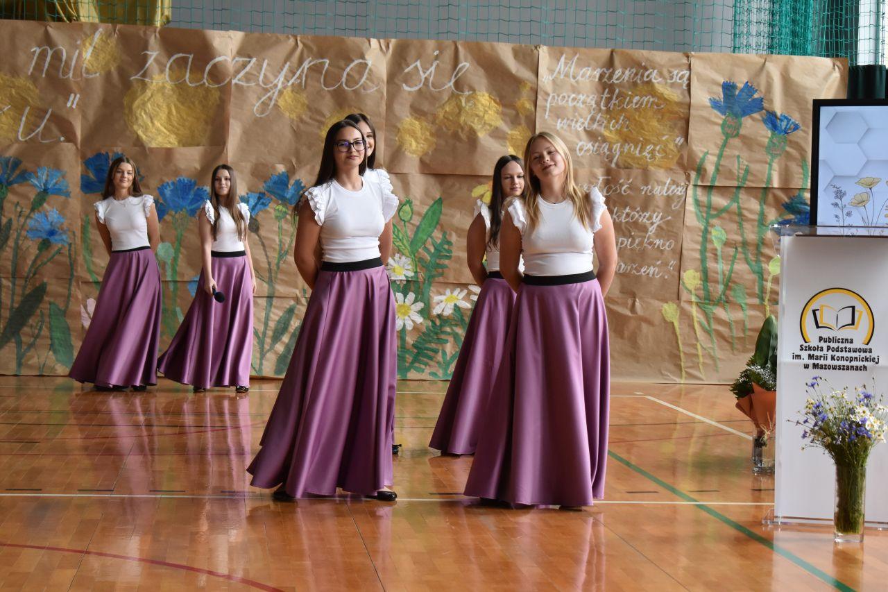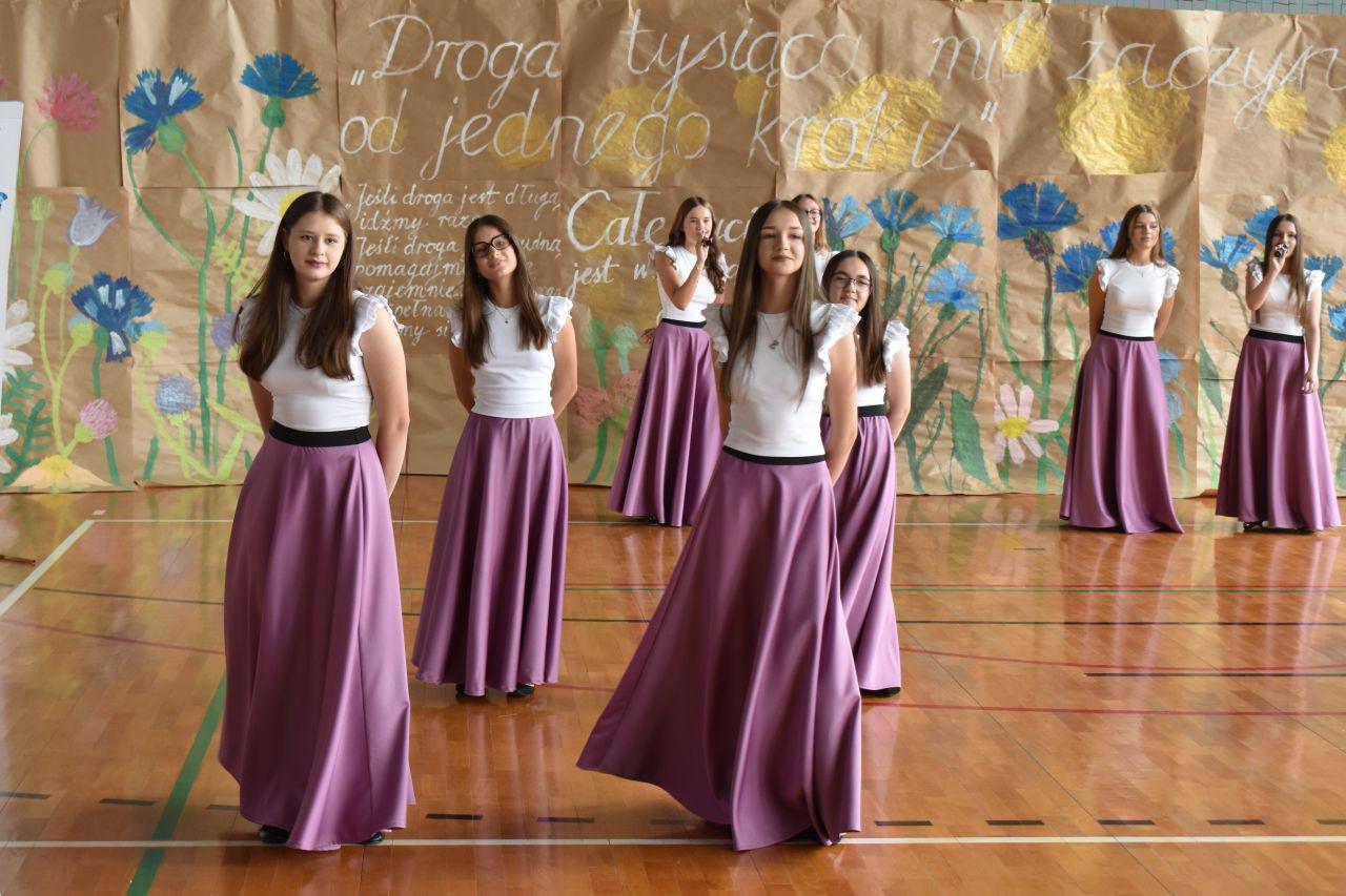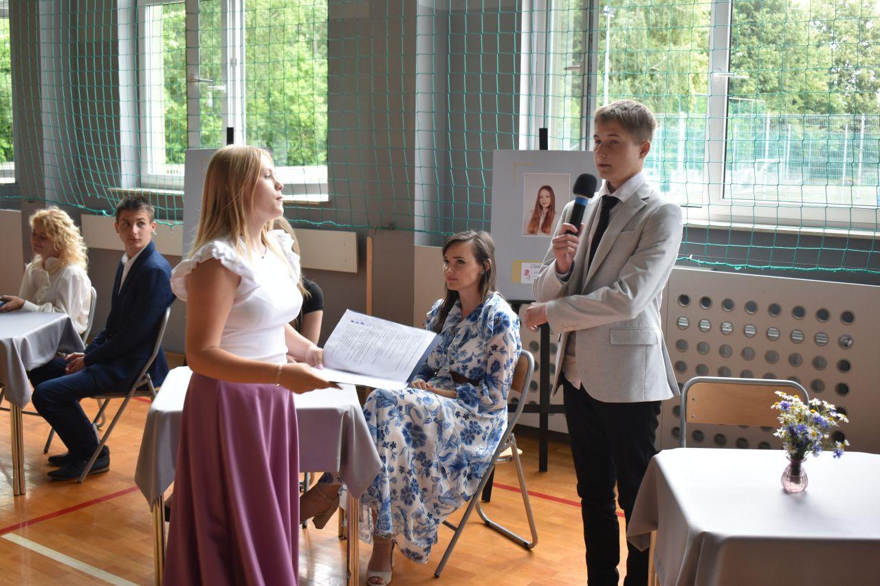 Wychowawcy laureatów kolejno prezentowali ich osiągnięcia, mówili o pasjach nie tylko naukowych, ale artystycznych i sportowych, gdyż ich uczniowie są wszechstronnie uzdolnieni i realizują się w wielu dziedzinach. Wrażliwi na dobro społeczne działają też w Szkolnych Kołach Wolontariatu, reprezentują szkołę w pocztach sztandarowych, działają w Samorządach Uczniowskich. Zwyciężają w wielu olimpiadach przedmiotowych i konkursach plastycznych, recytatorskich oraz zawodach sportowych – nawet na poziomie powiatu czy ogólnopolskim. Prezentacje multimedialne przeplatane były piosenkami w wykonaniu klasy 7b i tańcami, które przygotowali uczniowie klas 1-4 oraz klas ósmych.