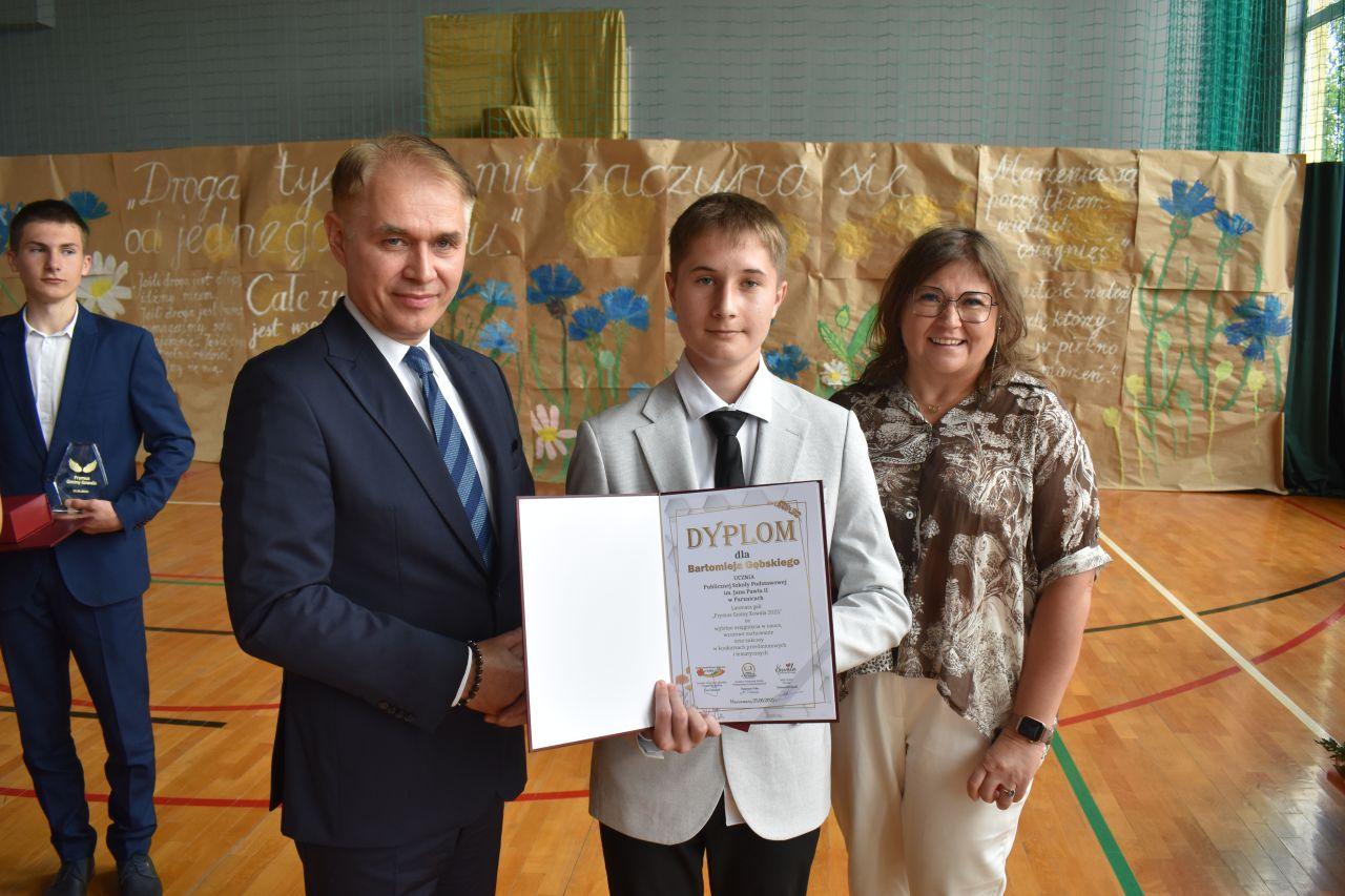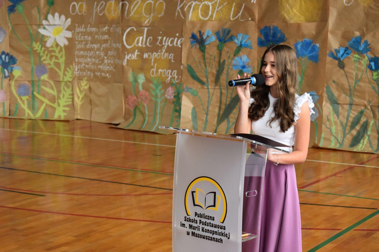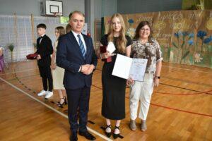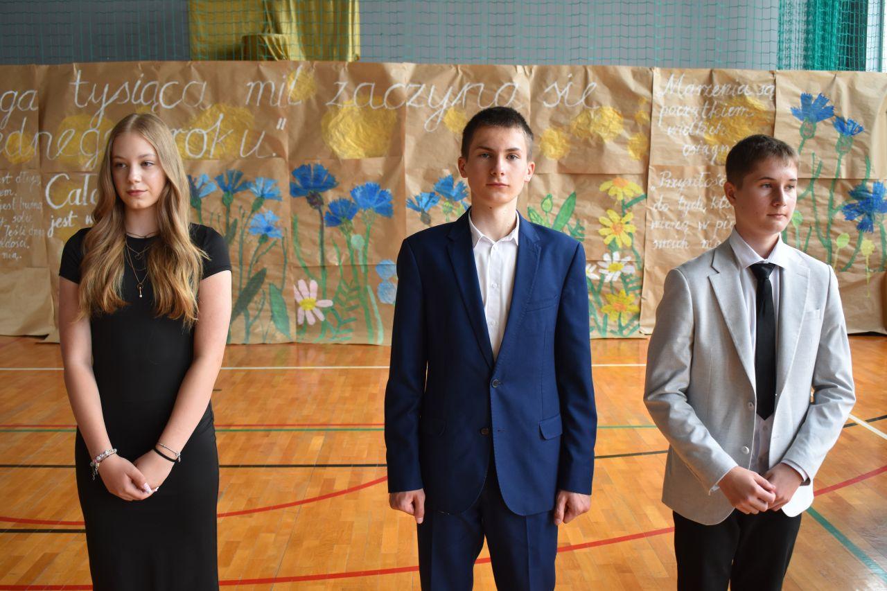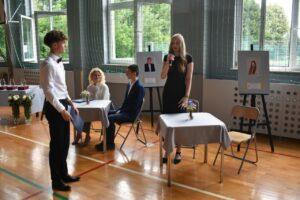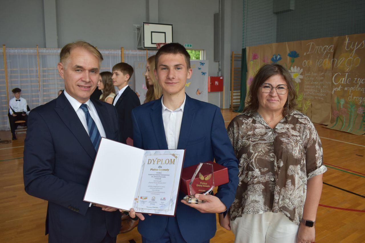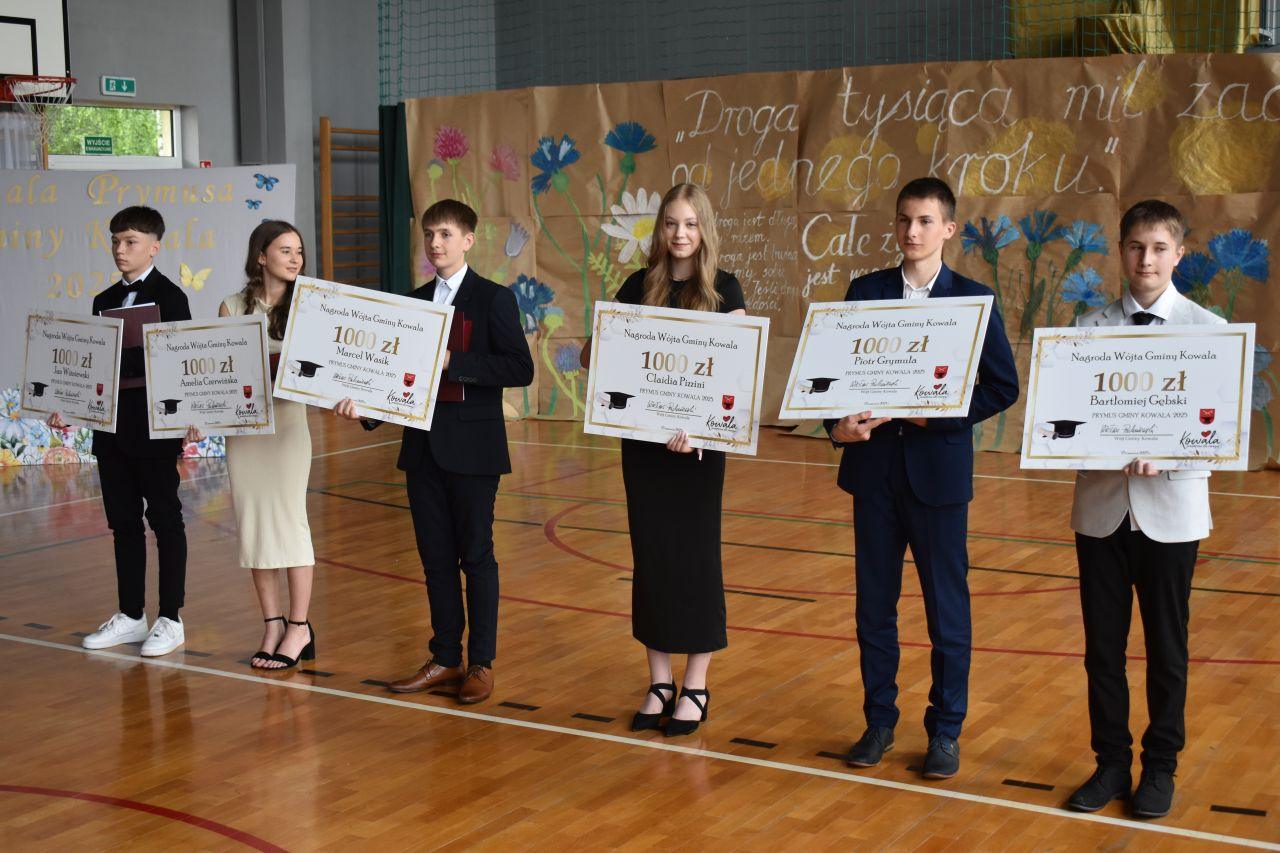 Gwoździem programu było wręczenie laureatom statuetek, gratyfikacji pieniężnych – nagrody wójta Gminy Kowala o wartości 1000 zł oraz przemówienie Prymusa- Gospodarza, czyli naszej uczennicy – Amelii Czerwińskiej. Gratulacje należą się oczywiście wszystkim laureatom. Życzymy im dalszych sukcesów i jak mówi poeta: „By los nie był dla nich srogi, by dotarli do celu otwarci, prawi i pełni miłości.”