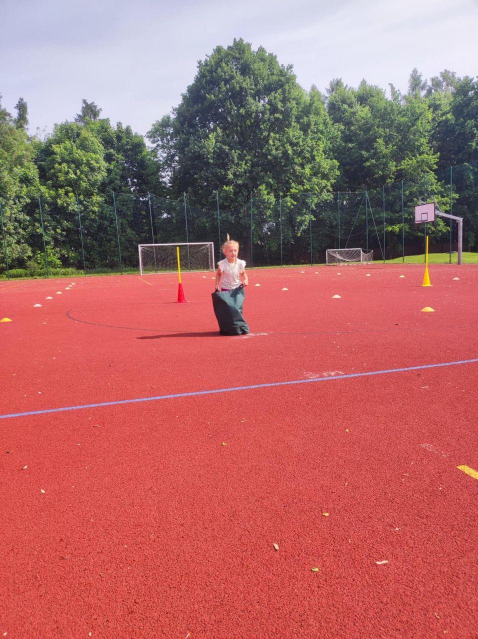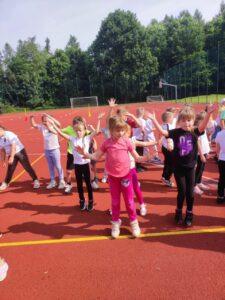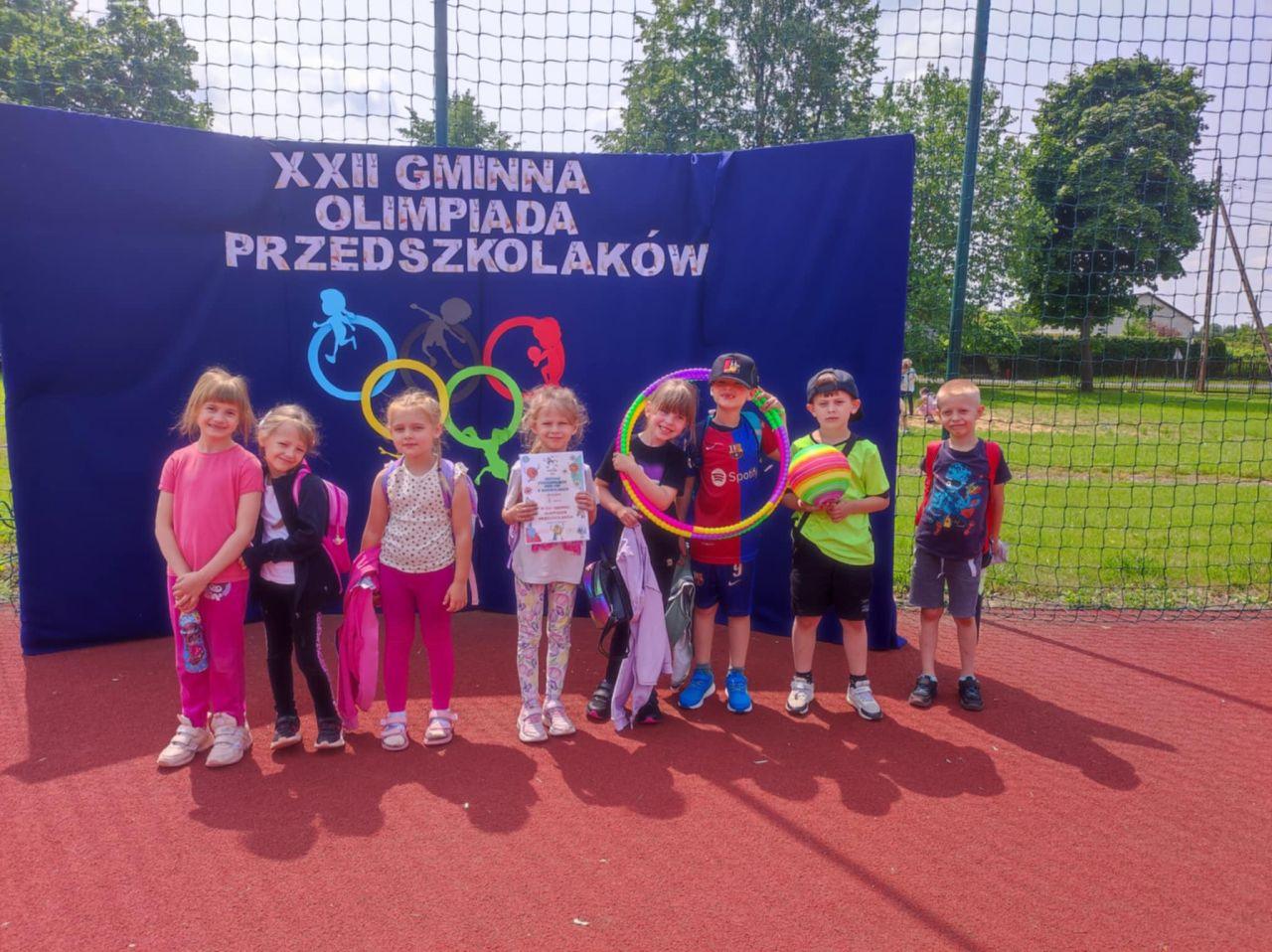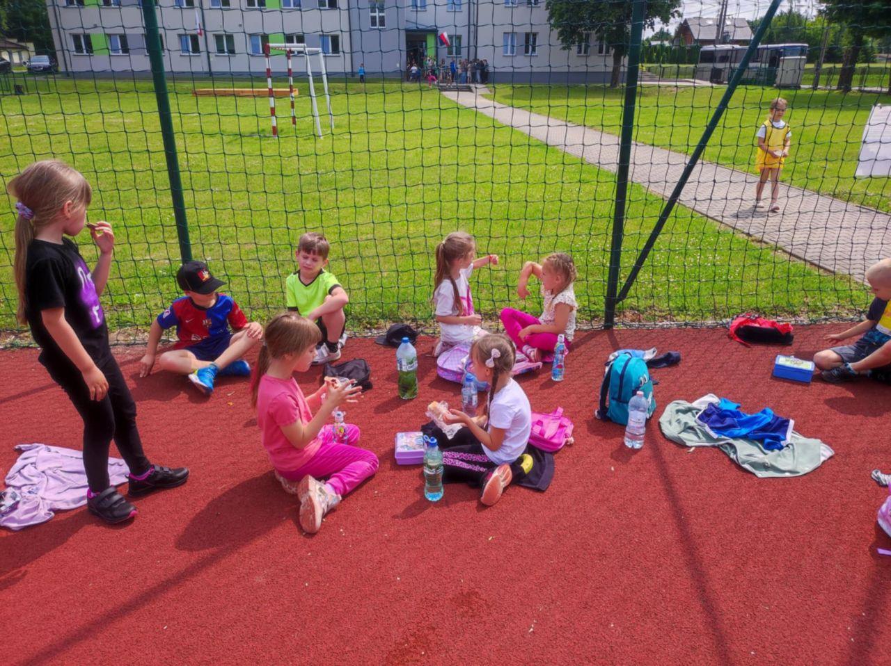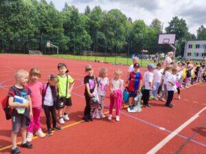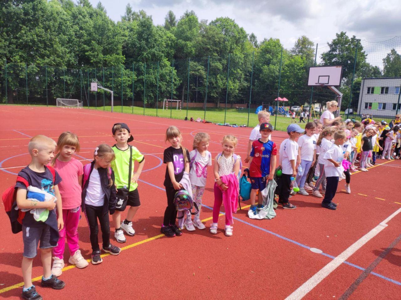 Dnia 10 czerwca 2025 r. dzieci z grup 0a i 0b reprezentowały naszą szkołę w XXII Olimpiadzie Przedszkolaków, która odbyła się w Publicznej Szkole Podstawowej im. Noblistów Polskich w Bardzicach. Mali sportowcy mieli do pokonania sześć konkurencji sportowych, w tym: wyścig w workach, rzut piłeczką do celu, sztafetę na czworakach, wyścig z przenoszeniem piłek w workach, zabawę „żywy kosz” oraz bieg sztafetowy. W zawodach wzięło udział pięć szkół, a nasza drużyna zajęła zaszczytne drugie miejsce. Konkurencje wymagały od dzieci dużej sprawności fizycznej, szybkości i współpracy. Zawody przyniosły uczestnikom wiele radości, emocji i satysfakcji z osiągniętych wyników.