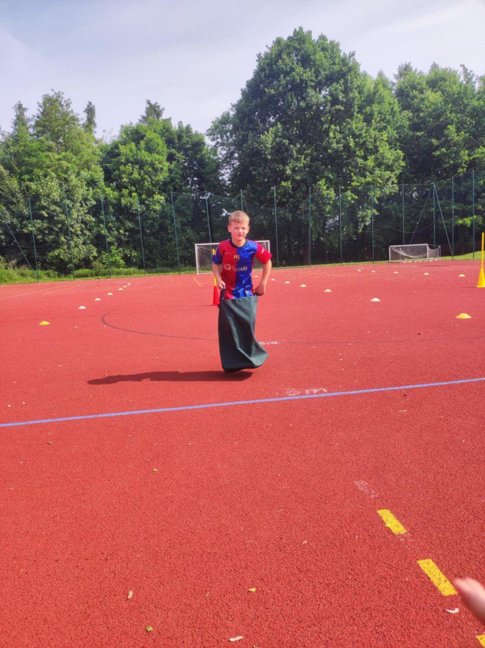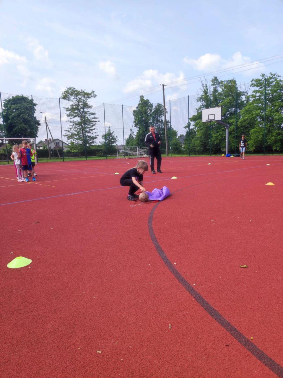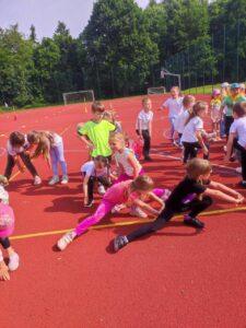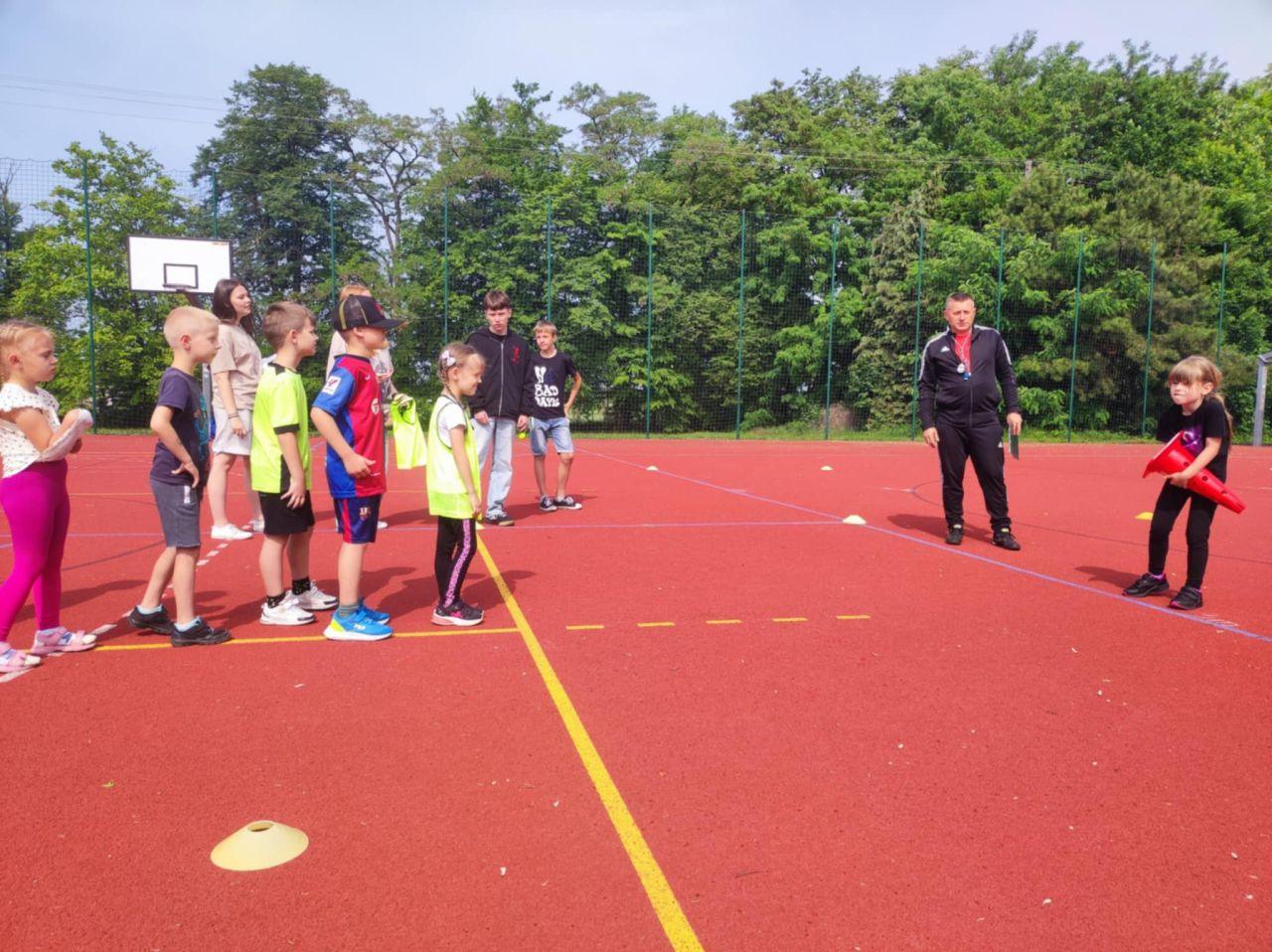 Dnia 10 czerwca 2025 r. dzieci z grup 0a i 0b reprezentowały naszą szkołę w XXII Olimpiadzie Przedszkolaków, która odbyła się w Publicznej Szkole Podstawowej im. Noblistów Polskich w Bardzicach. Mali sportowcy mieli do pokonania sześć konkurencji sportowych, w tym: wyścig w workach, rzut piłeczką do celu, sztafetę na czworakach, wyścig z przenoszeniem piłek w workach, zabawę „żywy kosz” oraz bieg sztafetowy. W zawodach wzięło udział pięć szkół, a nasza drużyna zajęła zaszczytne drugie miejsce. Konkurencje wymagały od dzieci dużej sprawności fizycznej, szybkości i współpracy. Zawody przyniosły uczestnikom wiele radości, emocji i satysfakcji z osiągniętych wyników.