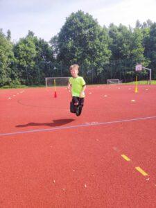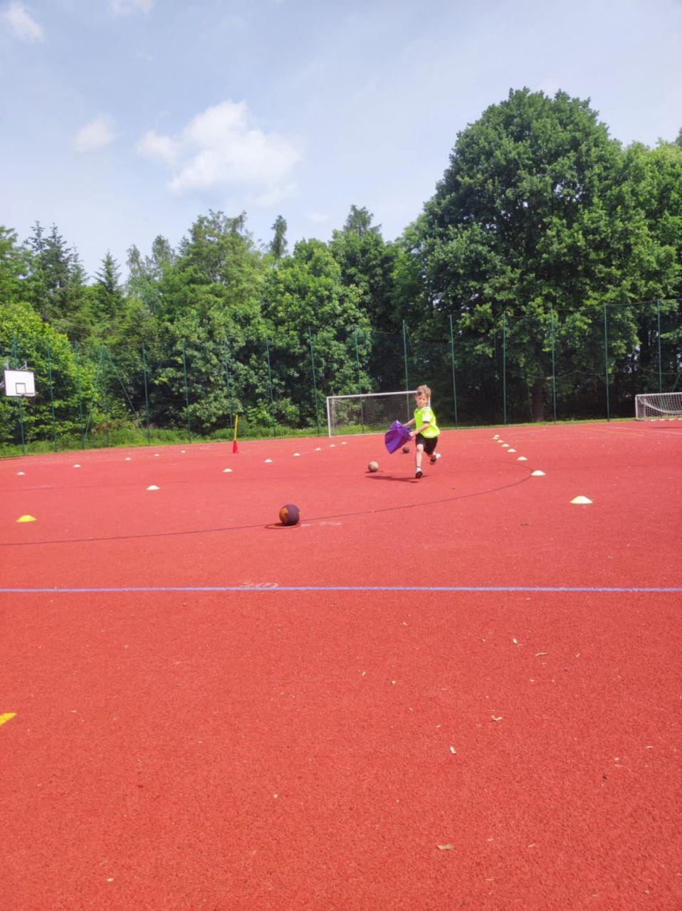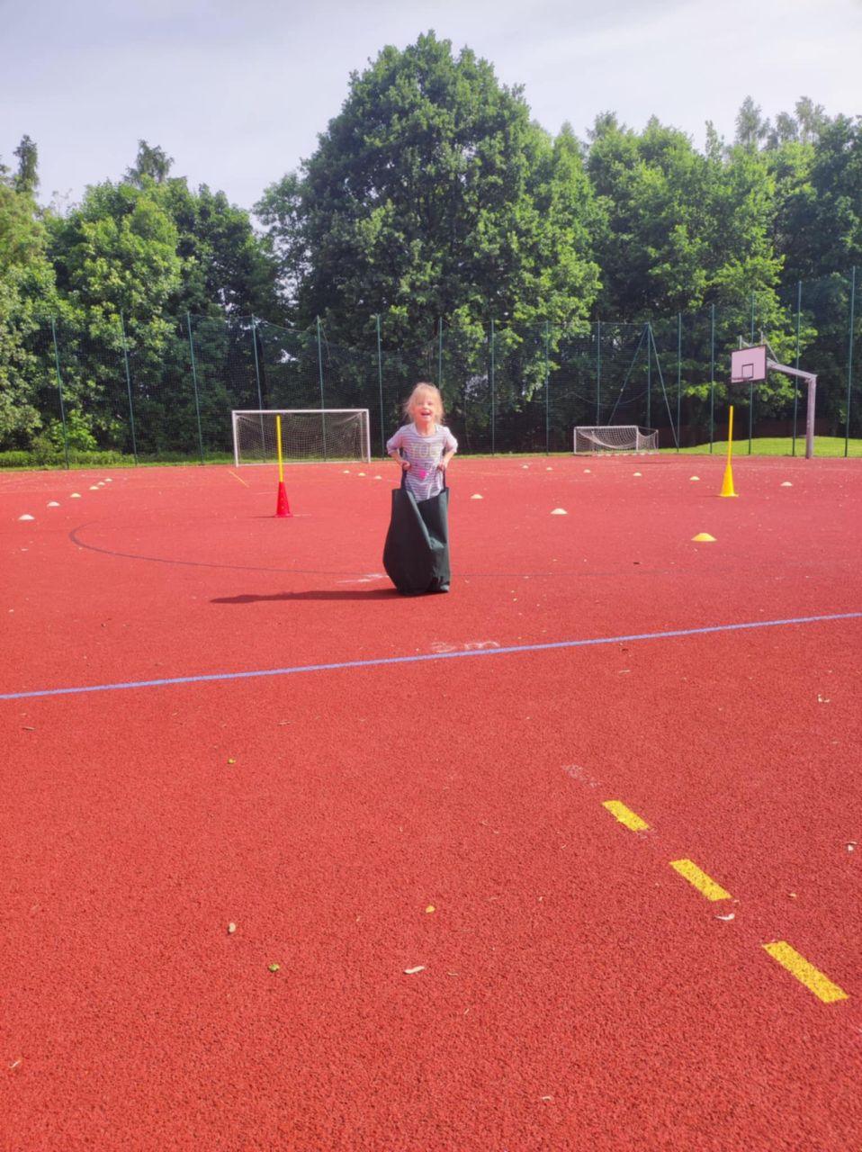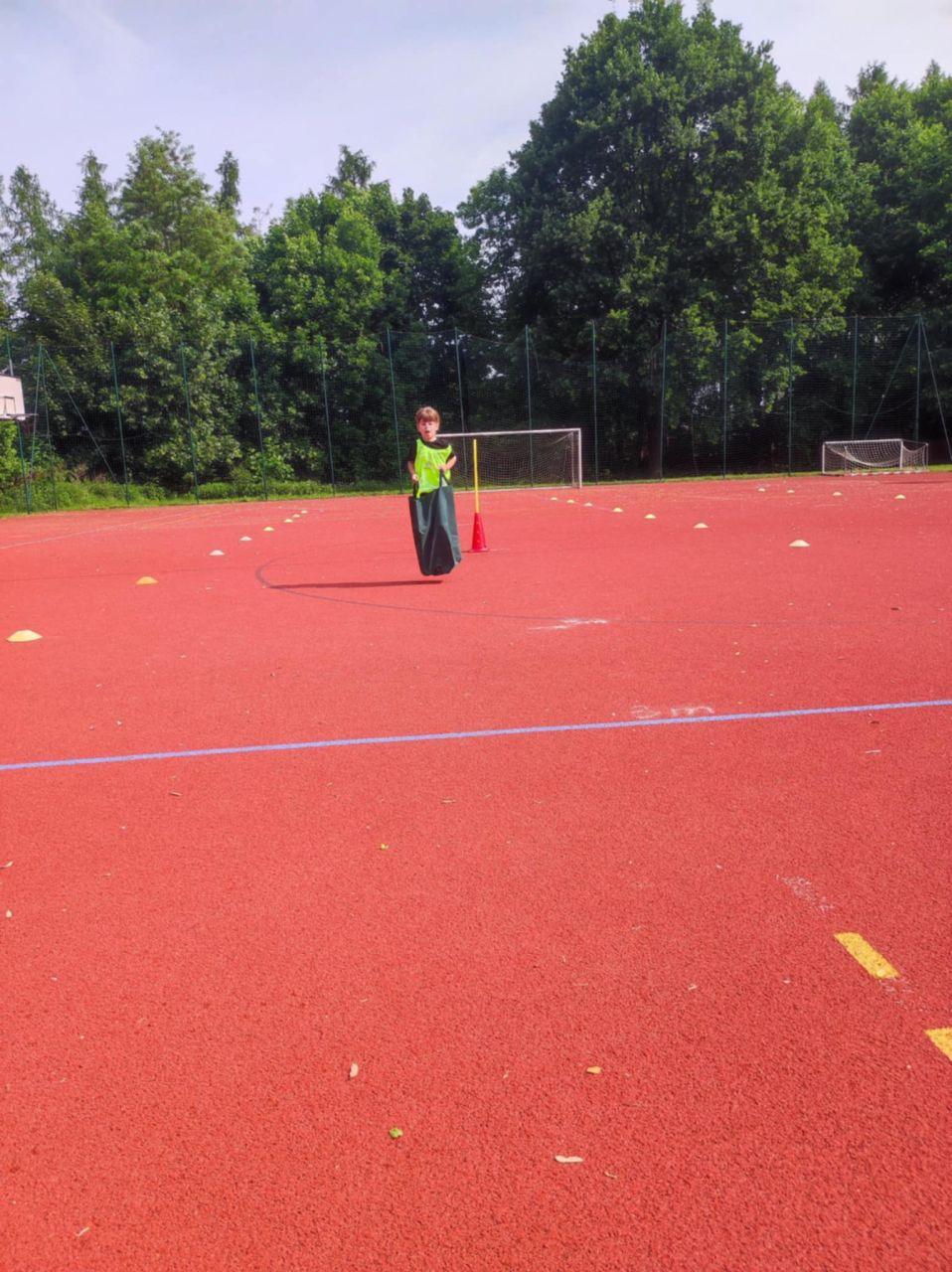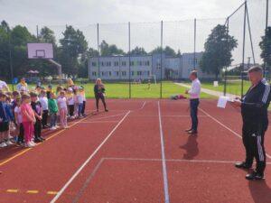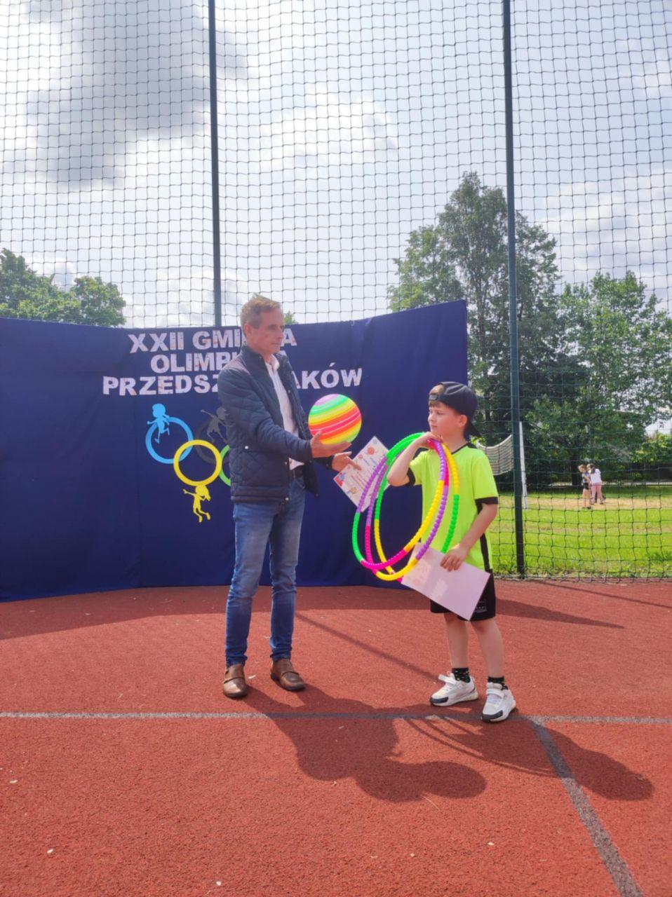 Dnia 10 czerwca 2025 r. dzieci z grup 0a i 0b reprezentowały naszą szkołę w XXII Olimpiadzie Przedszkolaków, która odbyła się w Publicznej Szkole Podstawowej im. Noblistów Polskich w Bardzicach. Mali sportowcy mieli do pokonania sześć konkurencji sportowych, w tym: wyścig w workach, rzut piłeczką do celu, sztafetę na czworakach, wyścig z przenoszeniem piłek w workach, zabawę „żywy kosz” oraz bieg sztafetowy. W zawodach wzięło udział pięć szkół, a nasza drużyna zajęła zaszczytne drugie miejsce. Konkurencje wymagały od dzieci dużej sprawności fizycznej, szybkości i współpracy. Zawody przyniosły uczestnikom wiele radości, emocji i satysfakcji z osiągniętych wyników.