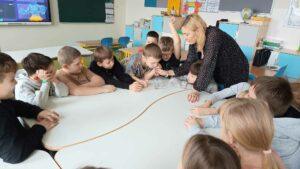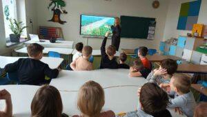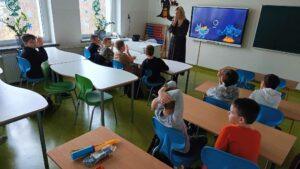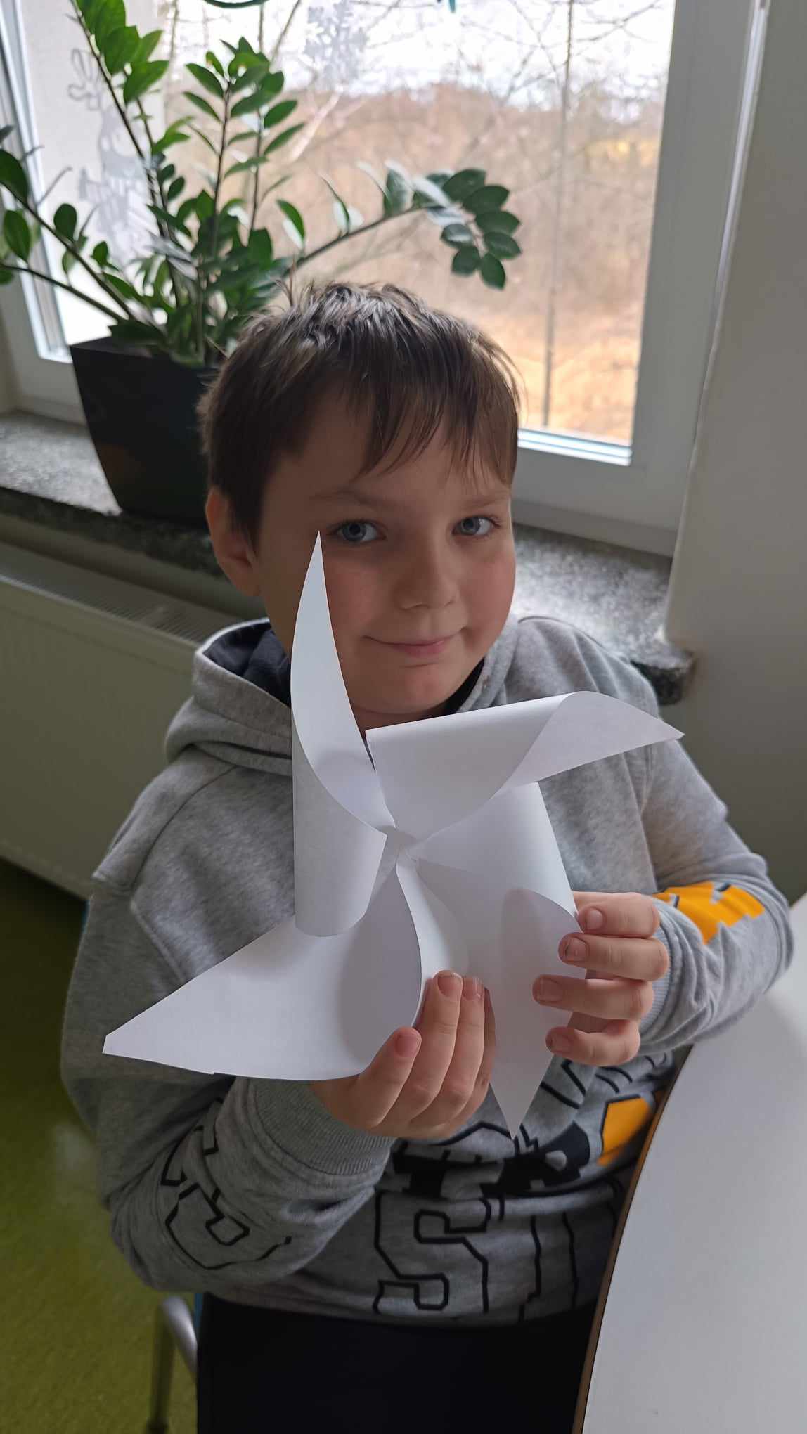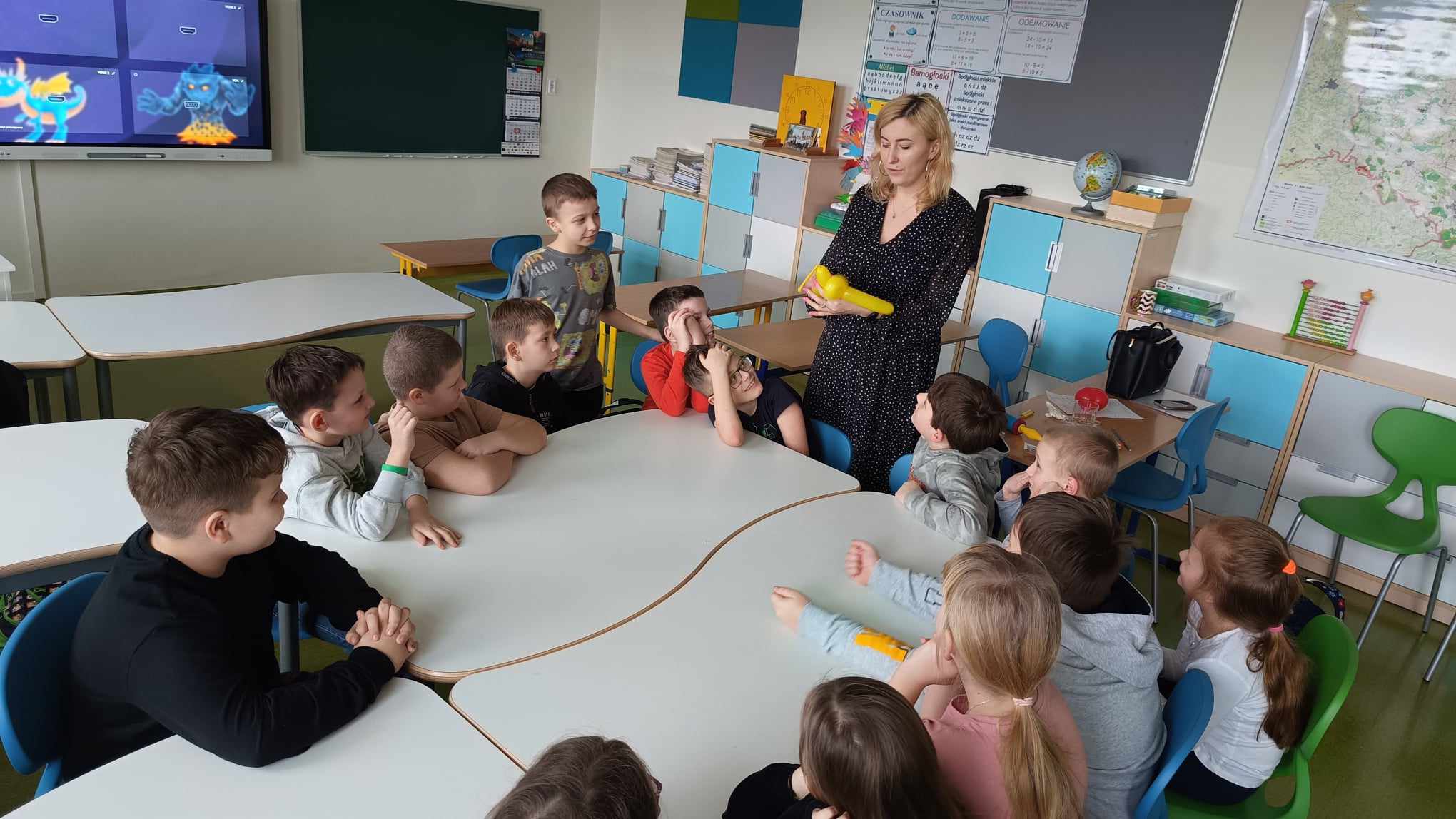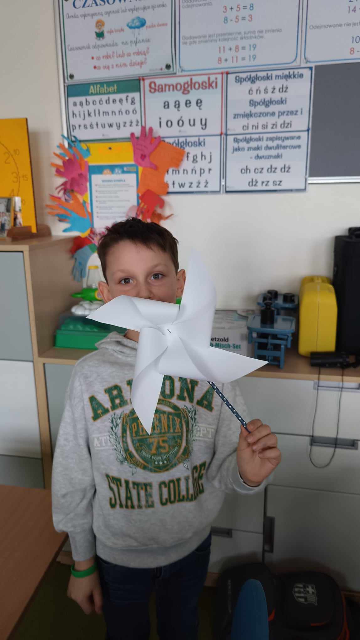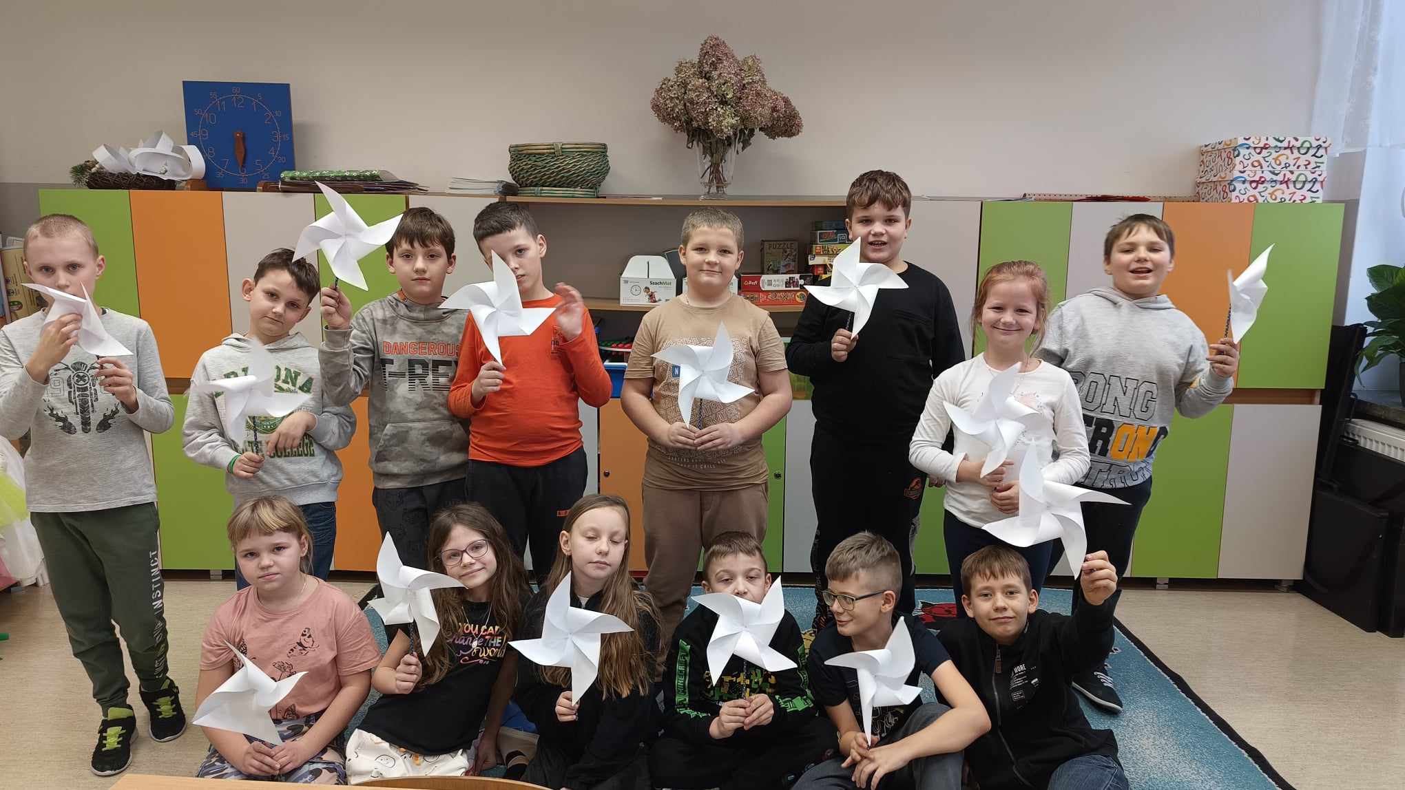 W ramach innowacji pedagogicznej ,,Z przyrodą za pan brat” uczniowie z klasy 3b uczestniczyli w zajęciach, które dotyczyły powietrza i wszystkiego, co jest z nim związane. Trzecioklasiści przekonali się, że powietrze, chociaż niewidoczne, istnieje i otacza wszystko wokół nas. Dowiedzieli się też, jak to udowodnić. Za pomocą doświadczeń próbowali poznać i wyjaśnić pojęcie ciśnienia atmosferycznego. Dzieci przekonały się też, że powietrze może mieć różny skład, który wpływa m.in. na nasze życie. Na zakończenie zajęć uczniowie wykonali pracę techniczną: wiatraczki, aby lepiej zrozumieć w jaki sposób energia wiatru jest przetwarzana na energię elektryczną.