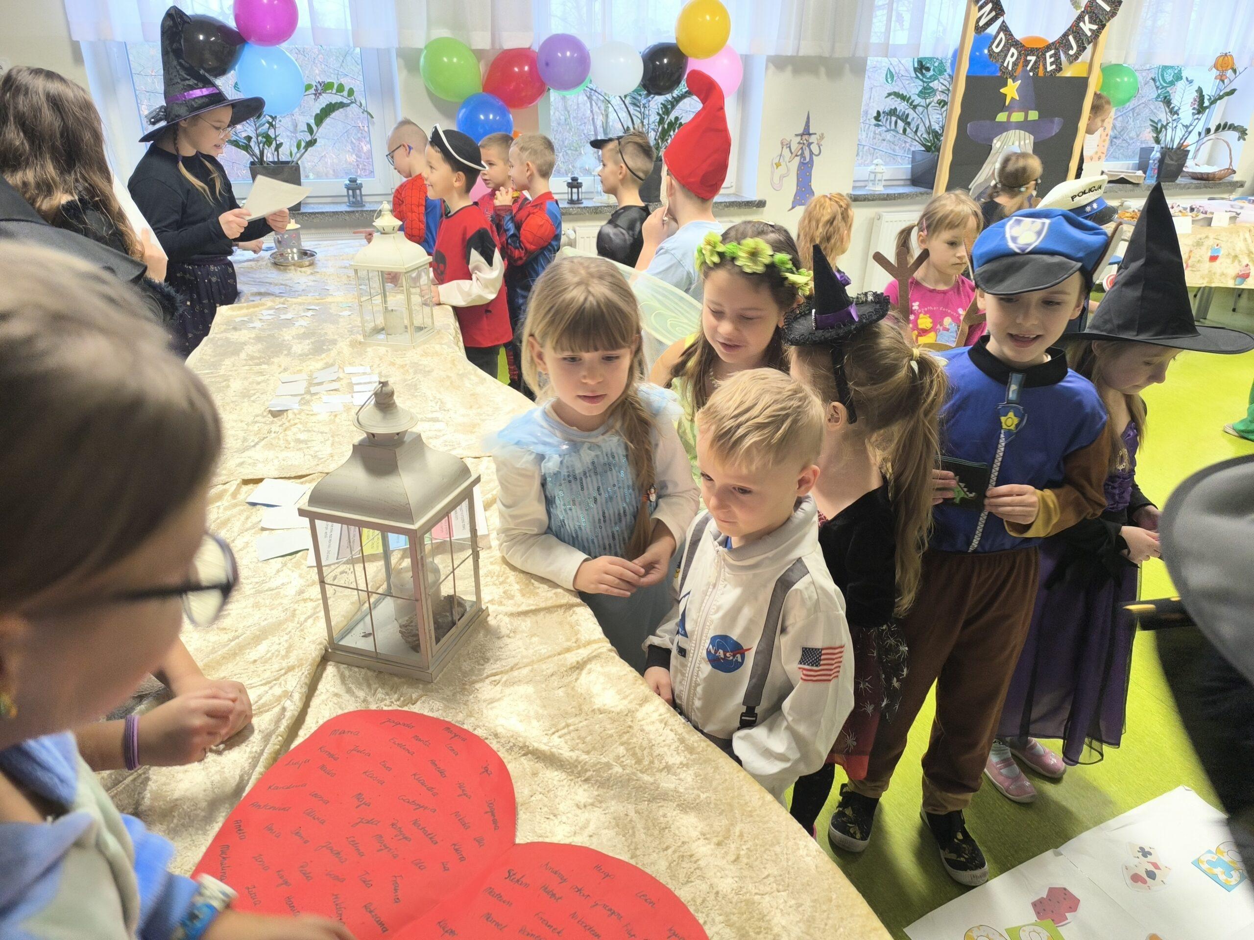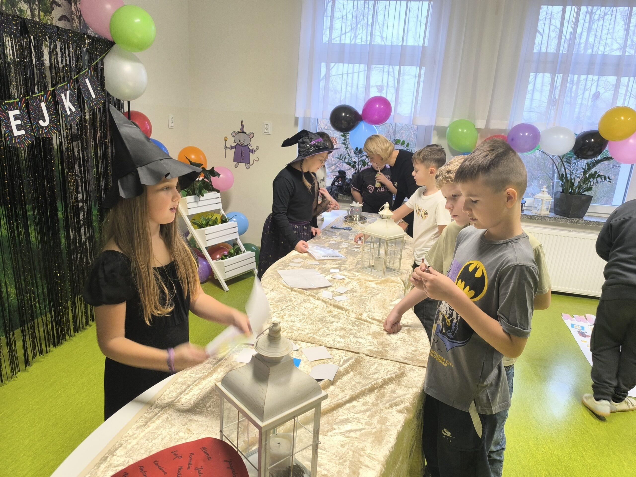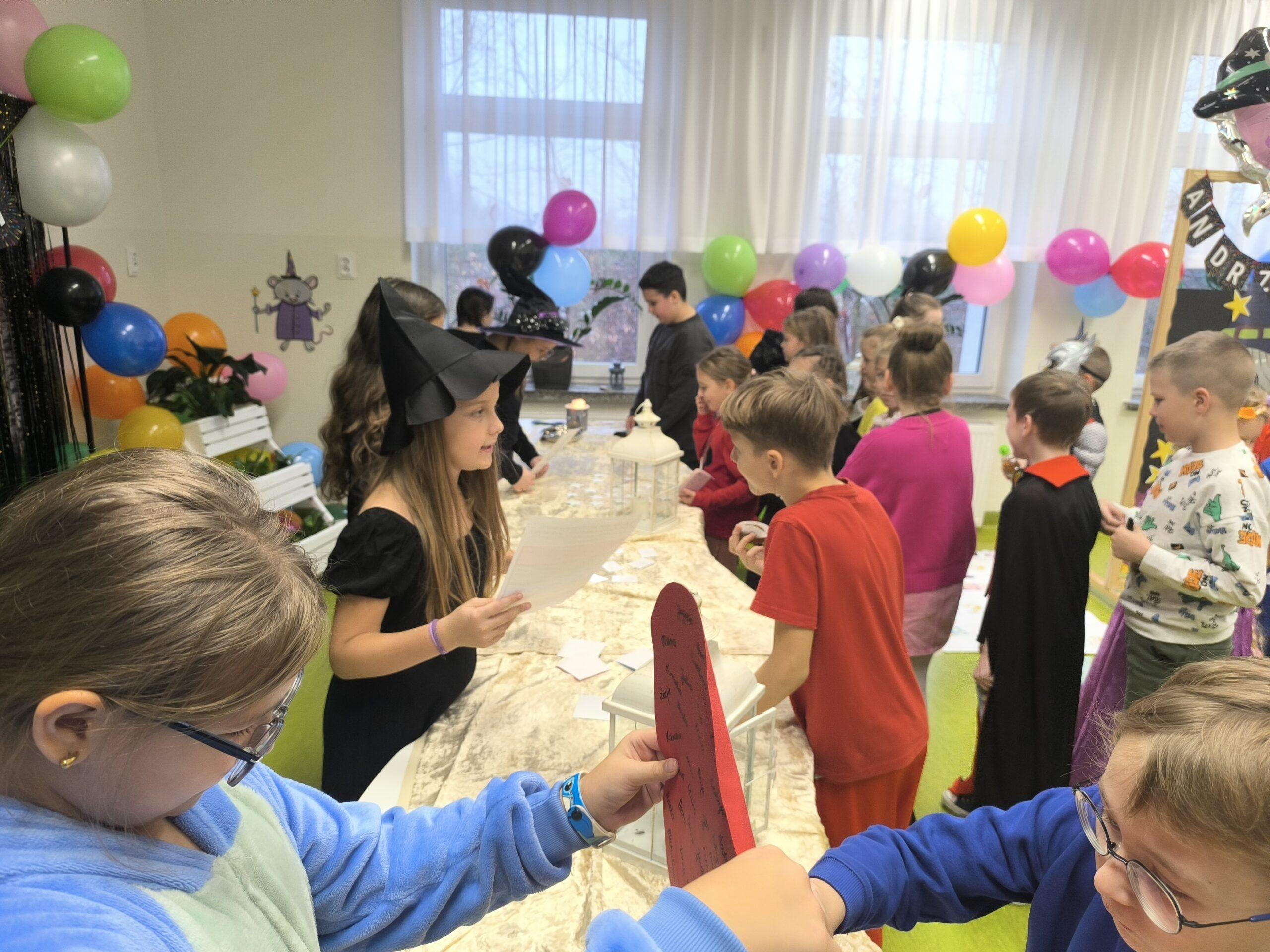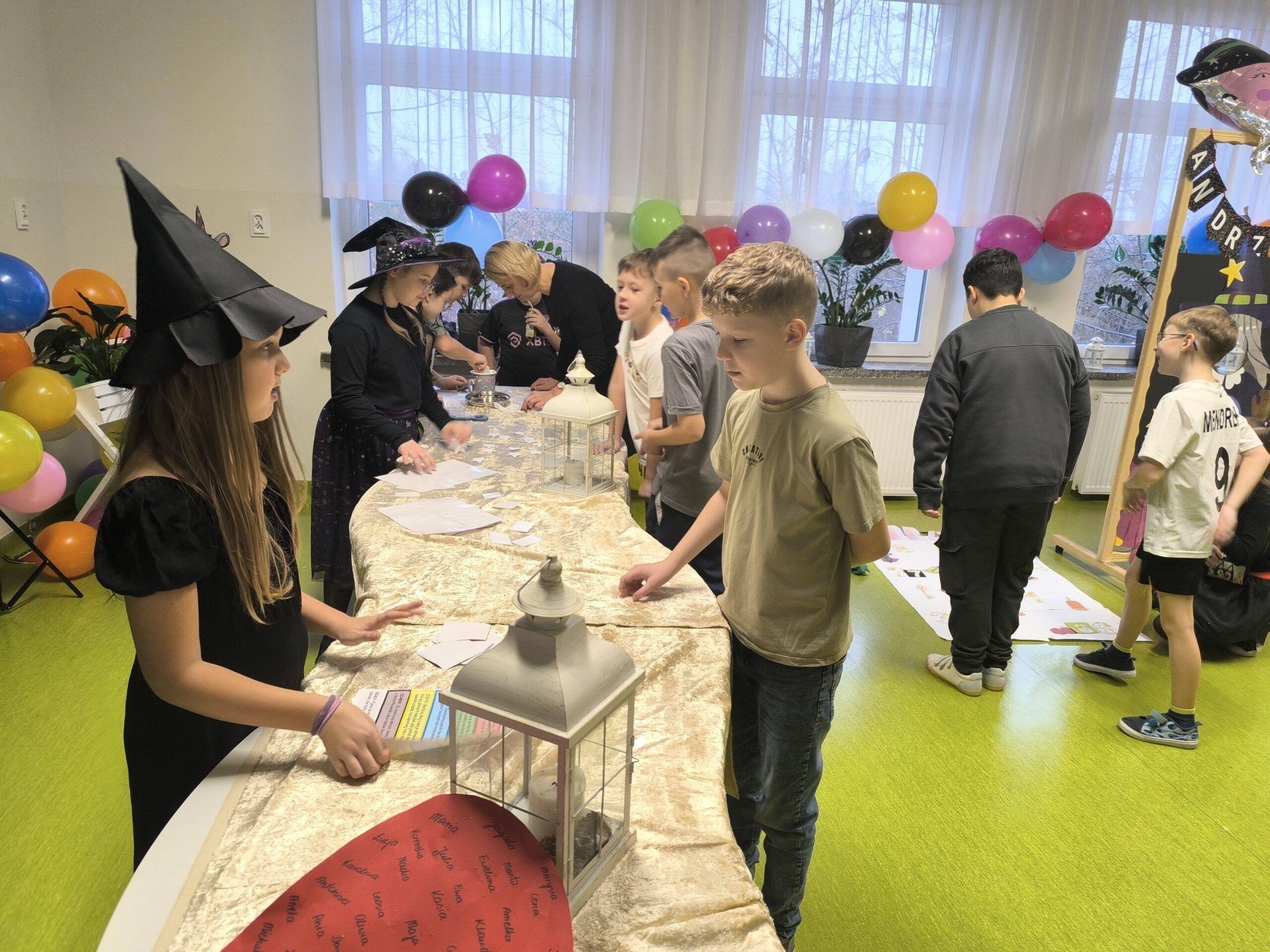 Dzień 29 listopada w naszej szkole przebiegał pod hasłem wróżb i zabaw andrzejkowych. Już od samego rana, sala lekcyjna zamieniła się w miejsce czarów i magii. Każdy uczestnik andrzejkowych szaleństw z niecierpliwością przekłuwał papierowe serce, aby odczytać imię swojej sympatii, losował magiczne bileciki z nazwami zawodów w przyszłości, szukał swojej szczęśliwej liczby, poznawał znaczenie swojego ulubionego koloru.