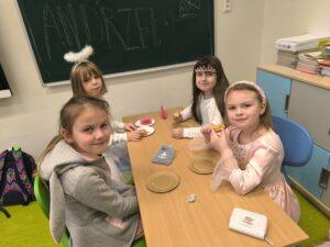Katalog wróżb był obszerny i bogaty, a każdy pragnął wywróżyć sobie coś wyjątkowego. W przerwie andrzejkowego szaleństwa, uczniowie zajadali się zaczarowanymi słodkościami. Dzień ten dostarczył wielu przeżyć i emocji, a także stał się okazją do rozbudzenia dziecięcej ciekawości oraz chęci poznawania ludowej tradycji.