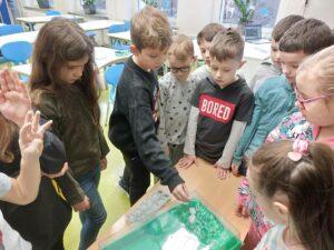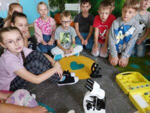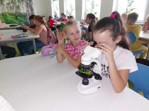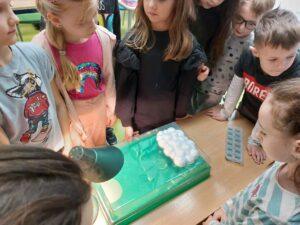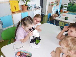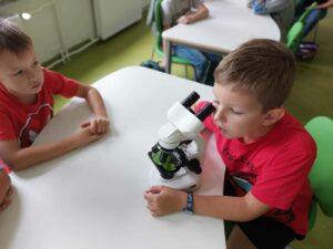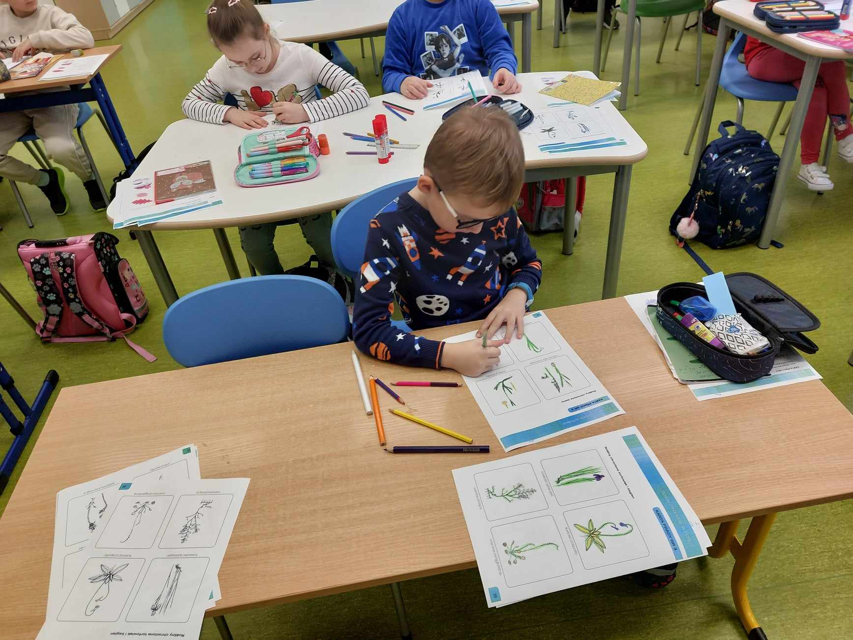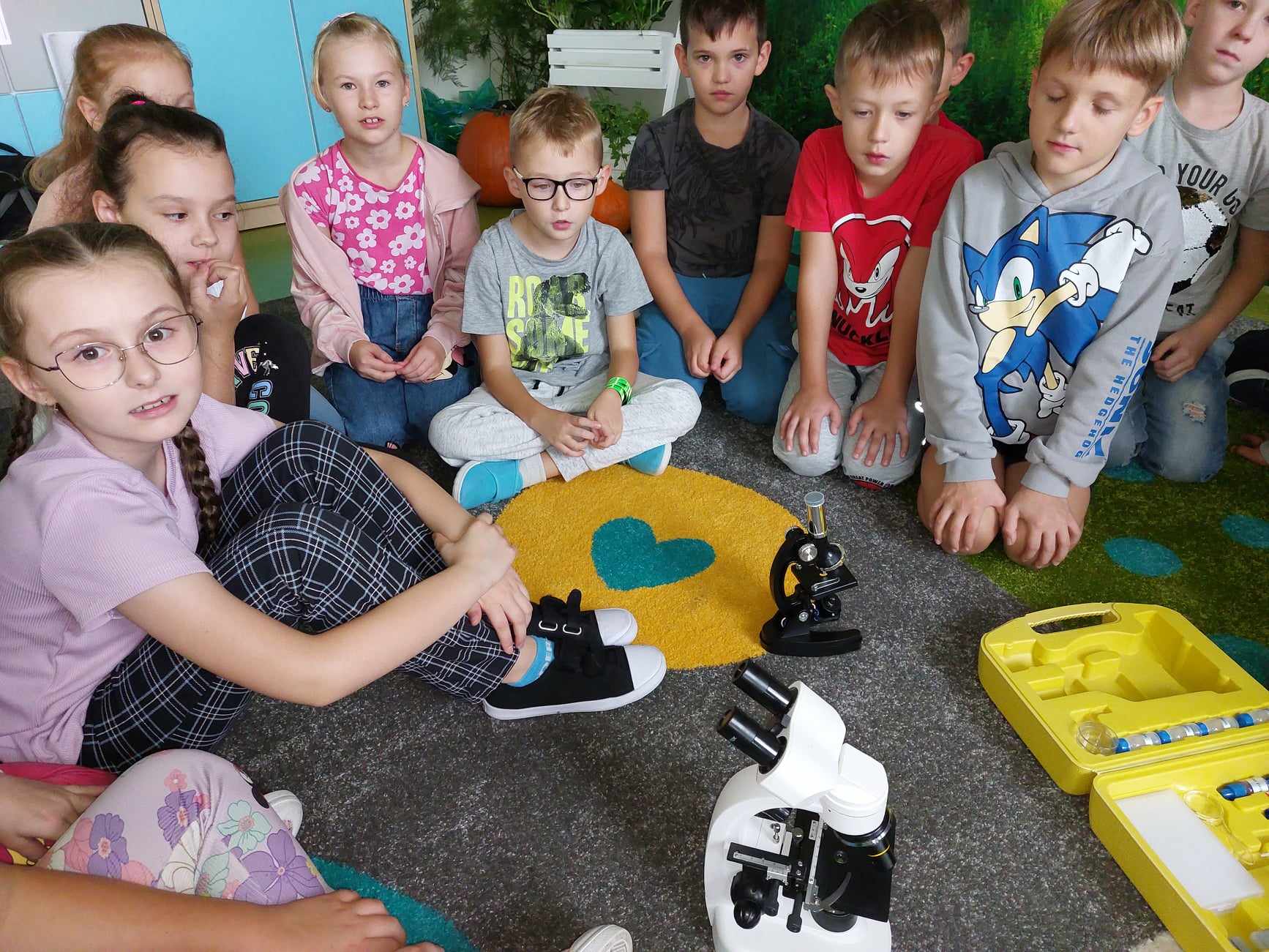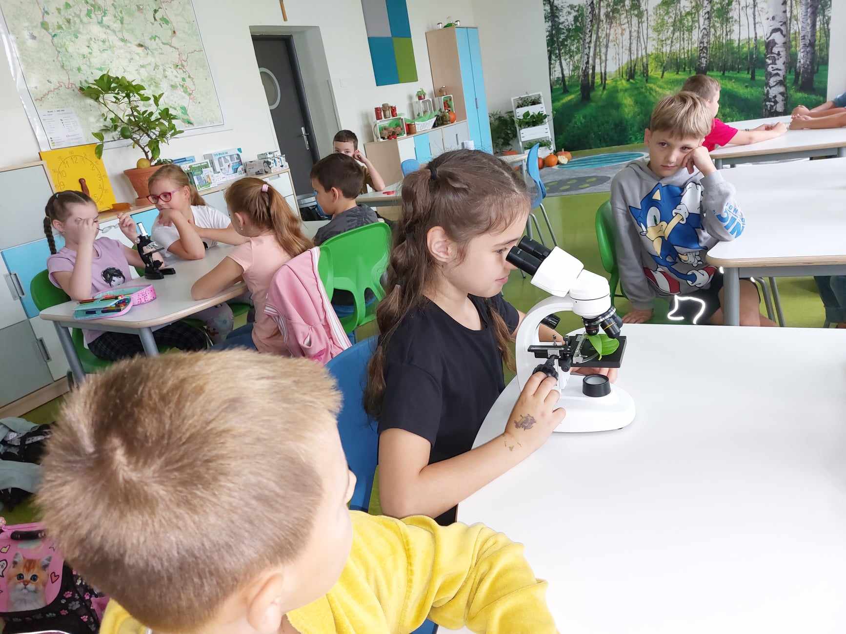 Na zajęciach rozwijających zainteresowania przyrodnicze uczniowie klasy 2a wzbogacają wiedzę na temat zwierząt, roślin, ekologii. Udział w zajęciach pozwala im zrozumieć rolę przyrody w życiu człowieka, a także uświadamia ogromną odpowiedzialność za stan środowiska przyrodniczego. Uczestnicy zajęć z chęcią podejmują różnorodne aktywności poprzez zadawanie pytań, poszukiwanie odpowiedzi, wykonywanie doświadczeń i eksperymentów. Uczniowie prowadzą obserwacje przyrodnicze w najbliższym otoczeniu, biorą udział w zajęciach terenowych, korzystają z lup, mikroskopów, map, globusów, atlasów przyrodniczych oraz programów edukacyjnych i prezentacji multimedialnych. Pomoce zakupione w ramach konkursu „Ekopracownia – zielone serce szkoły” pomagają w sposób atrakcyjny przeprowadzić zajęcia.