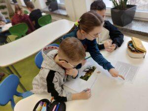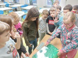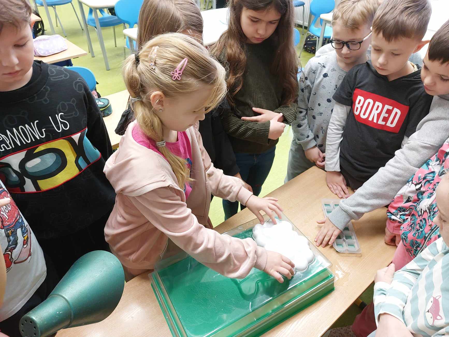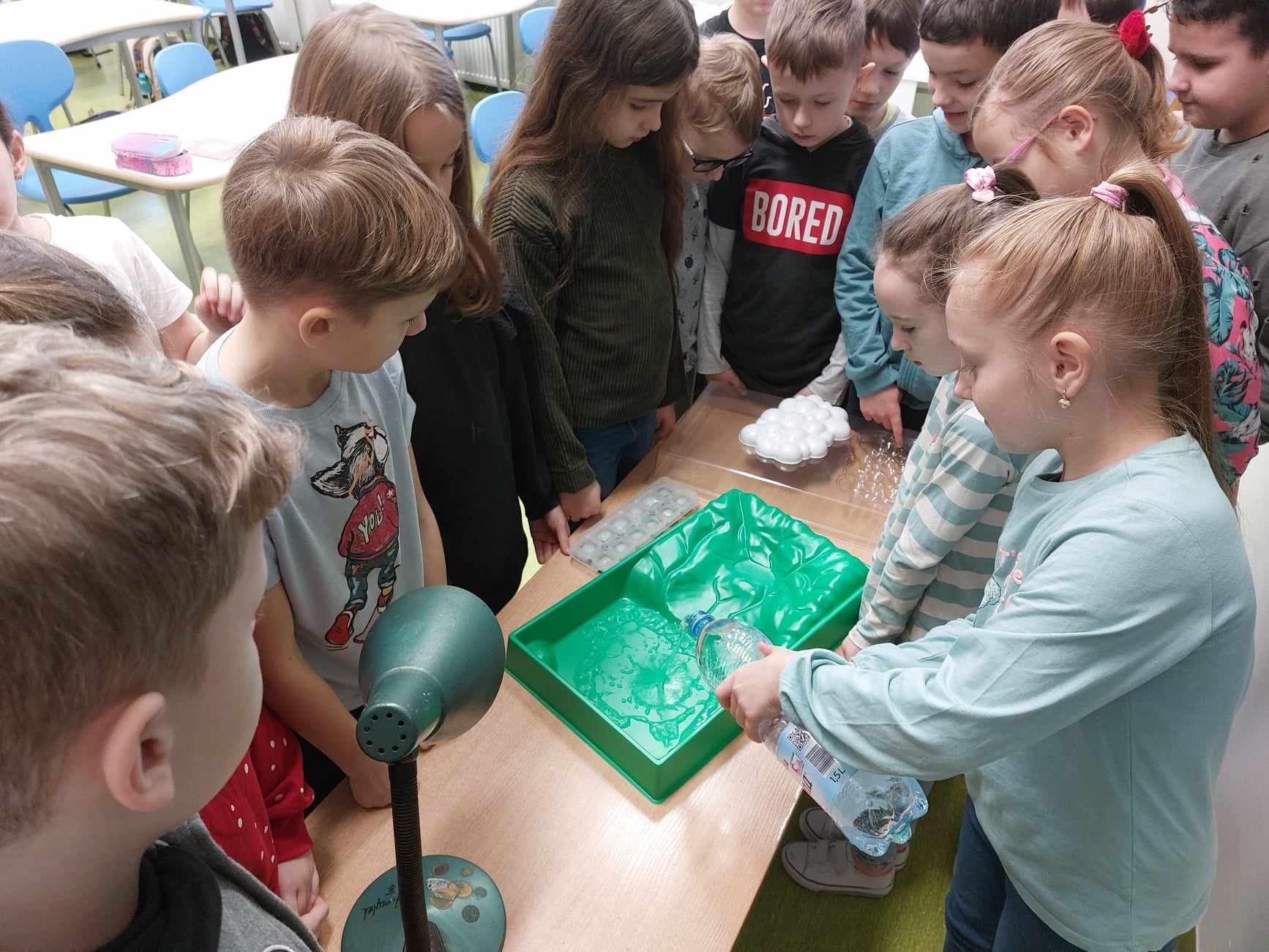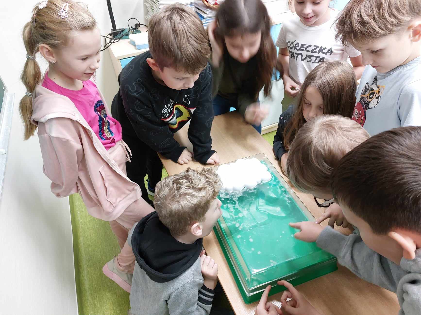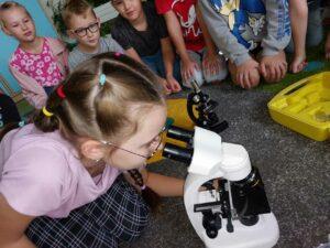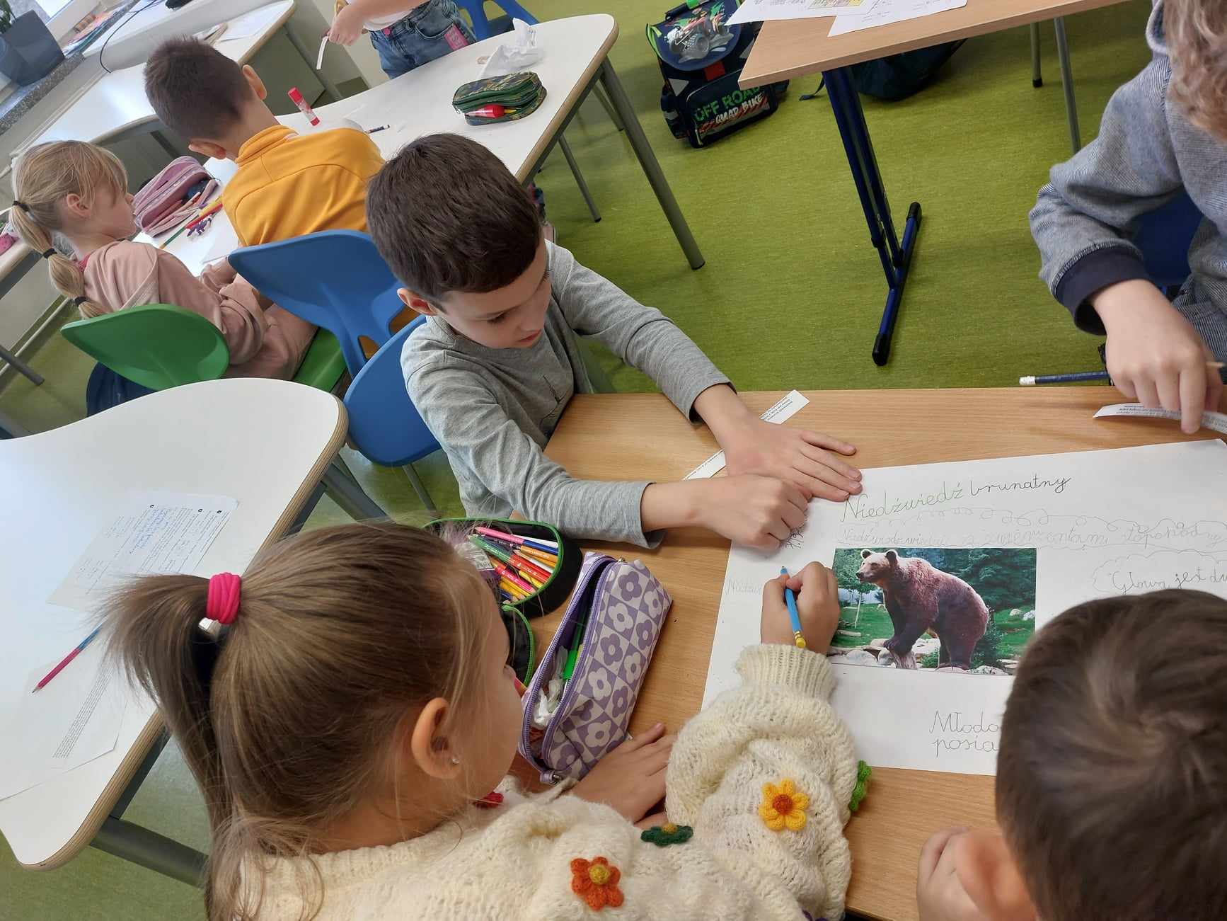 Na zajęciach rozwijających zainteresowania przyrodnicze uczniowie klasy 2a wzbogacają wiedzę na temat zwierząt, roślin, ekologii. Udział w zajęciach pozwala im zrozumieć rolę przyrody w życiu człowieka, a także uświadamia ogromną odpowiedzialność za stan środowiska przyrodniczego. Uczestnicy zajęć z chęcią podejmują różnorodne aktywności poprzez zadawanie pytań, poszukiwanie odpowiedzi, wykonywanie doświadczeń i eksperymentów. Uczniowie prowadzą obserwacje przyrodnicze w najbliższym otoczeniu, biorą udział w zajęciach terenowych, korzystają z lup, mikroskopów, map, globusów, atlasów przyrodniczych oraz programów edukacyjnych i prezentacji multimedialnych. Pomoce zakupione w ramach konkursu „Ekopracownia – zielone serce szkoły” pomagają w sposób atrakcyjny przeprowadzić zajęcia.