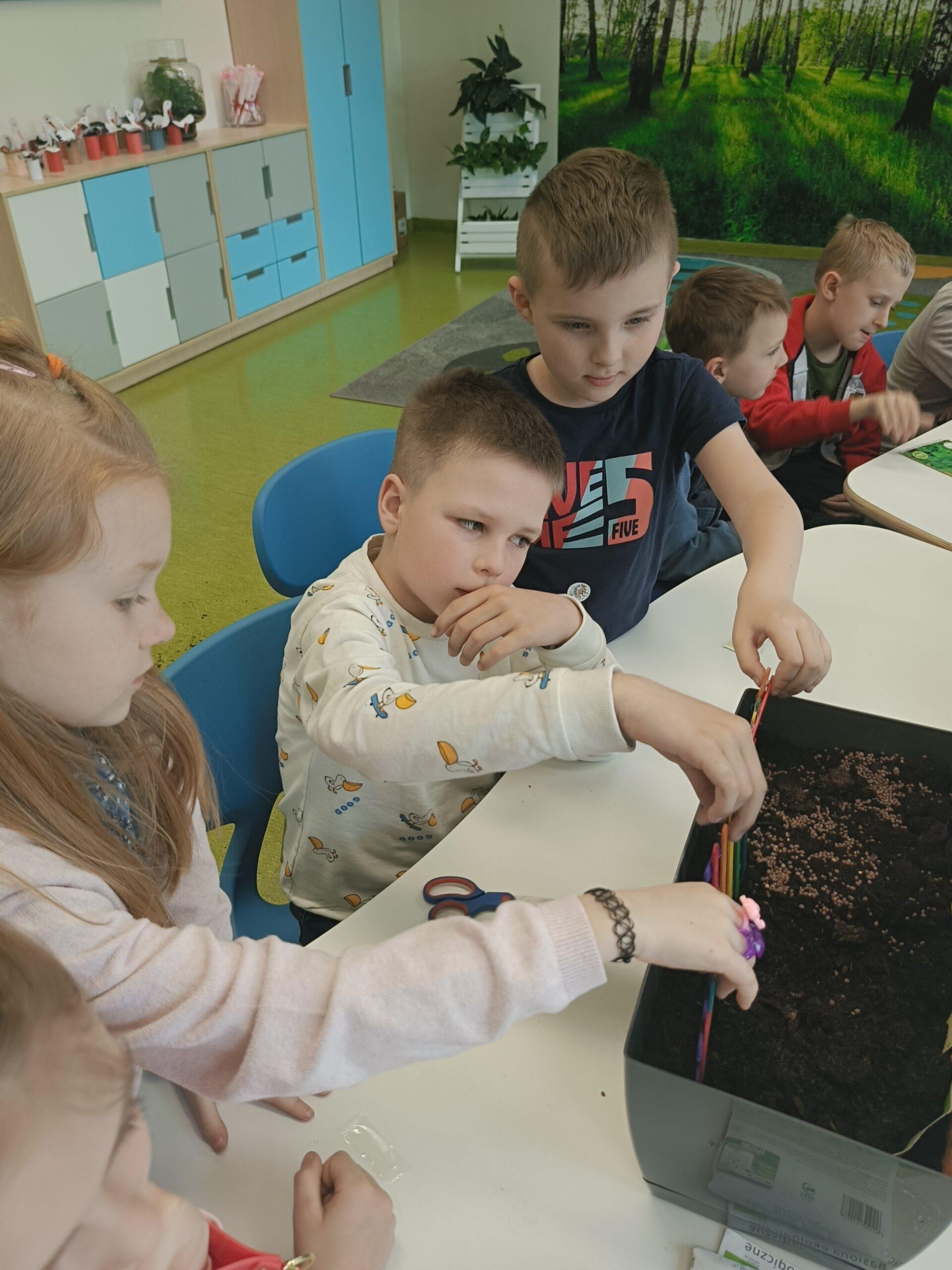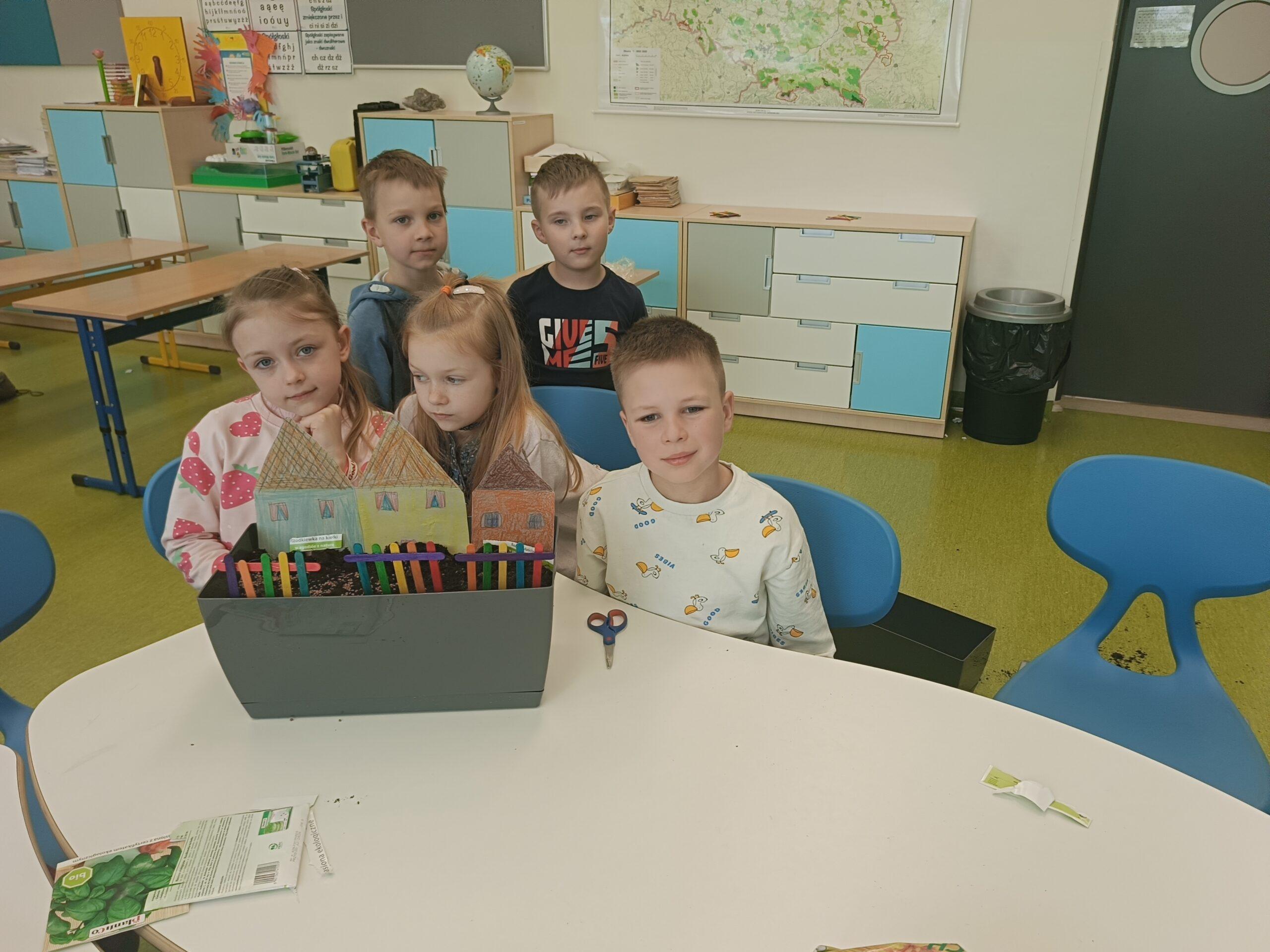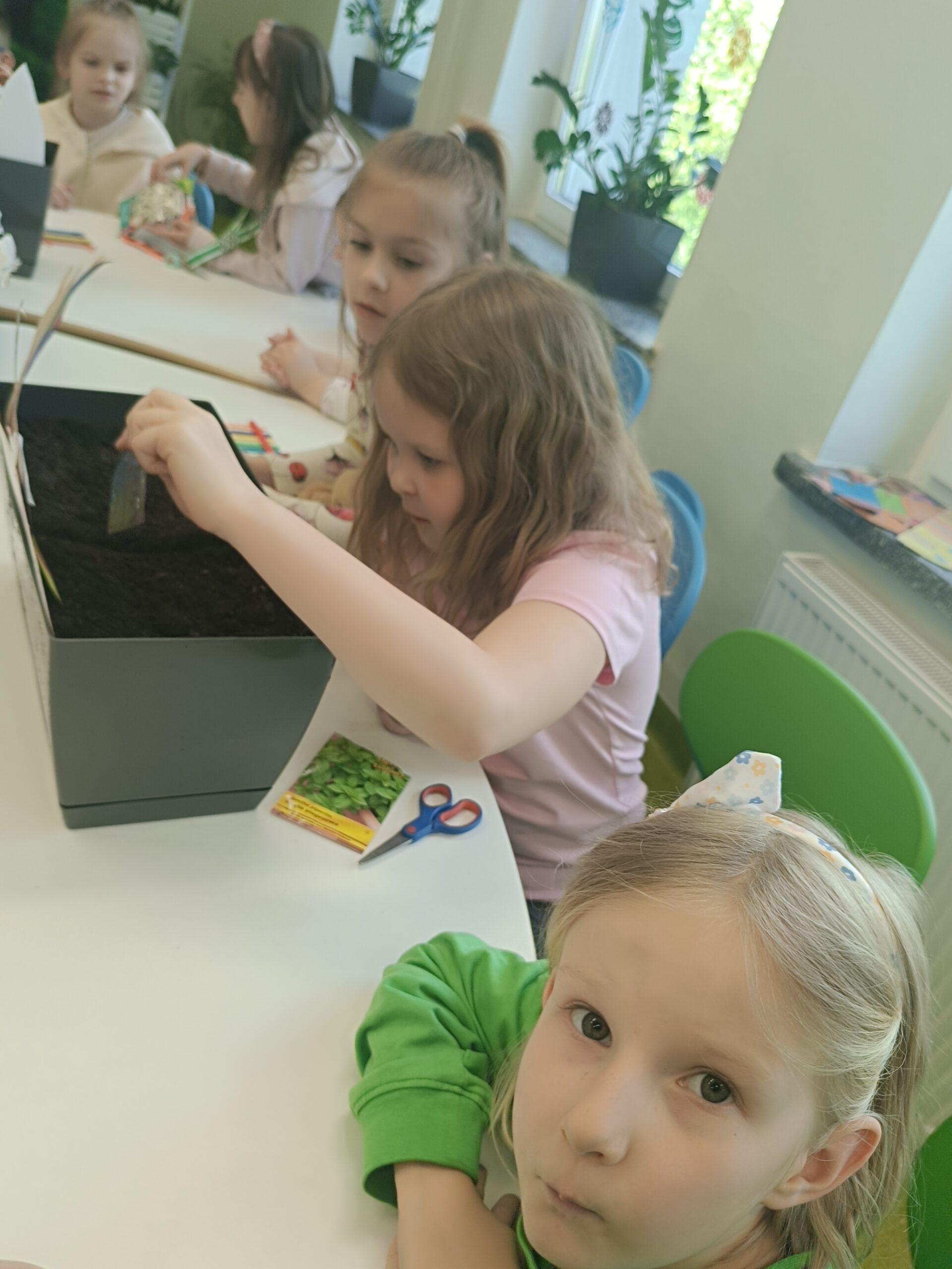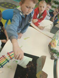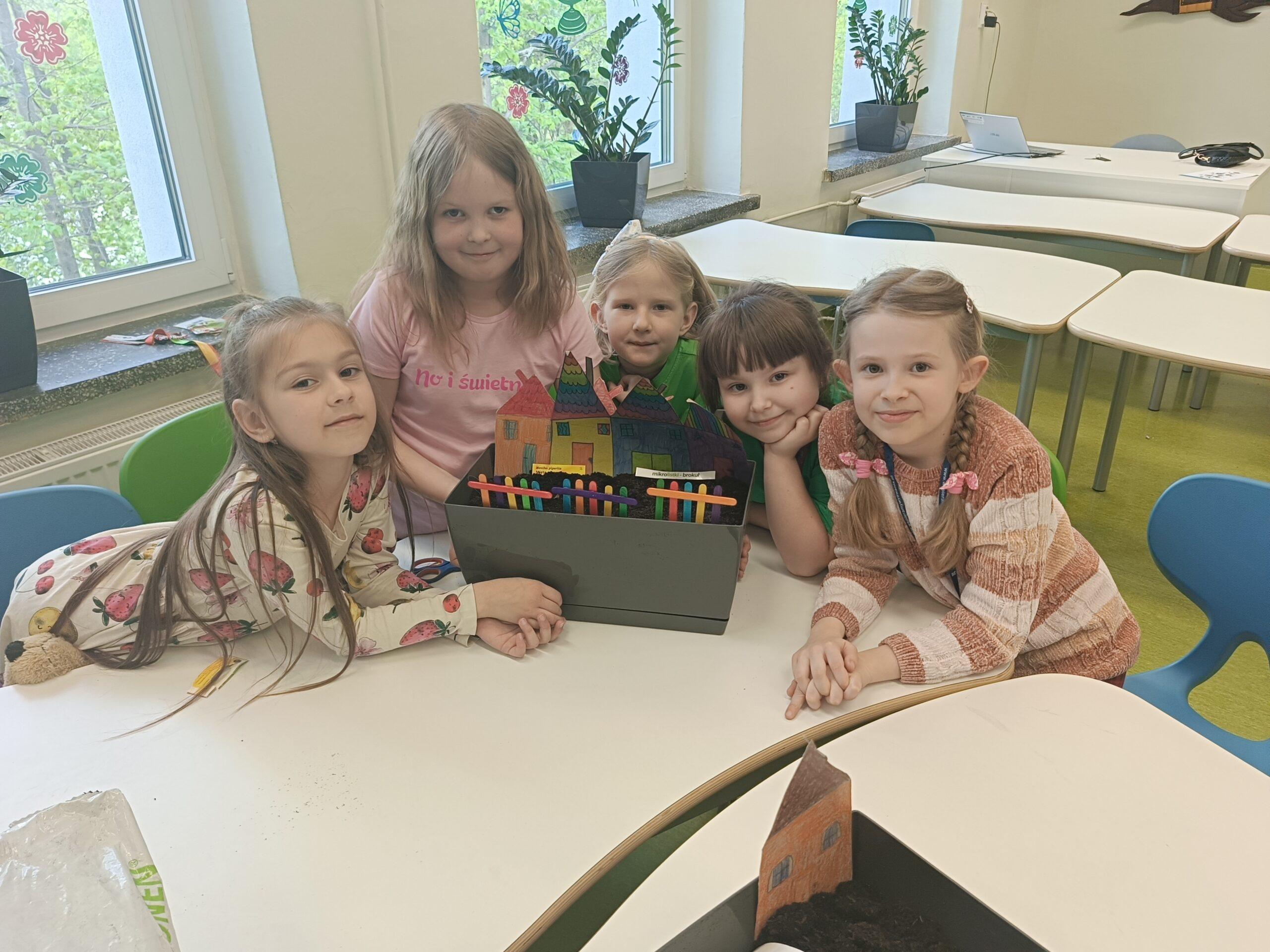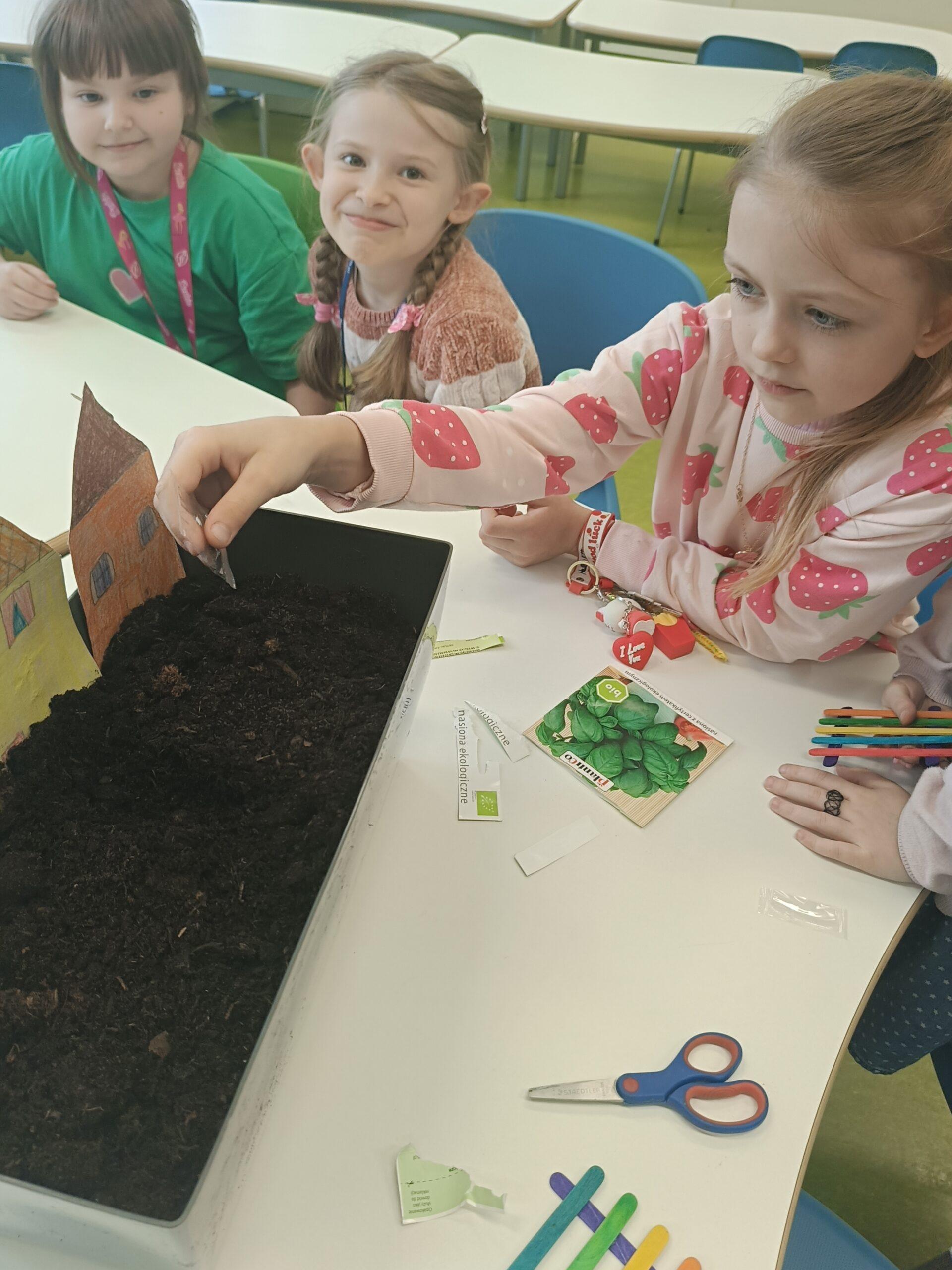 Wiosna w pełni! W zielonym sercu szkoły, niebawem zazieleni się jeszcze bardziej! Uczniowie klasy 1b podjęli wyzwanie założenia swojego pierwszego klasowego ogródka. W naszej Ekopracowni stworzyli namiastkę przydomowych zielników. Do skrzynek sypali ziemię i siali ziarna ziół, które następnie obficie podlali. Pobudowali nawet domy i starannie ogrodzili swoje działki drewnianymi płotkami. Podczas prac ogrodniczych poznali niezbędne dla wzrostu roślin warunki oraz zasady ich pielęgnacji. W ten sposób dzieci kolejny raz przekonały się, że nauka nie musi być nudna, a ich wychowawczyni, że uczniowie najlepiej uczą się podczas zajęć praktycznych. Teraz wszyscy z niecierpliwością czekają na owoce ich pracy.