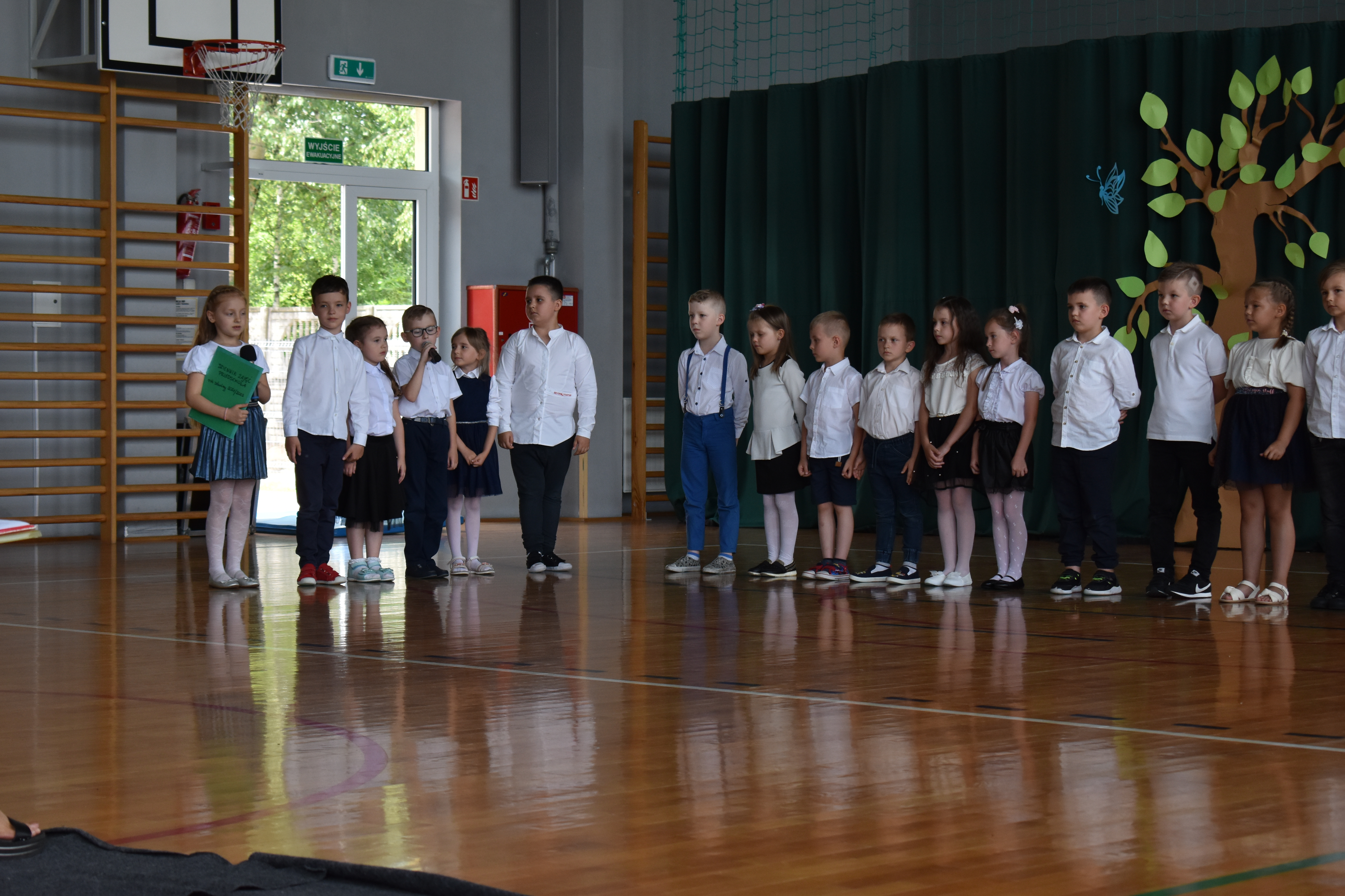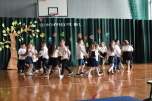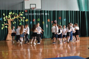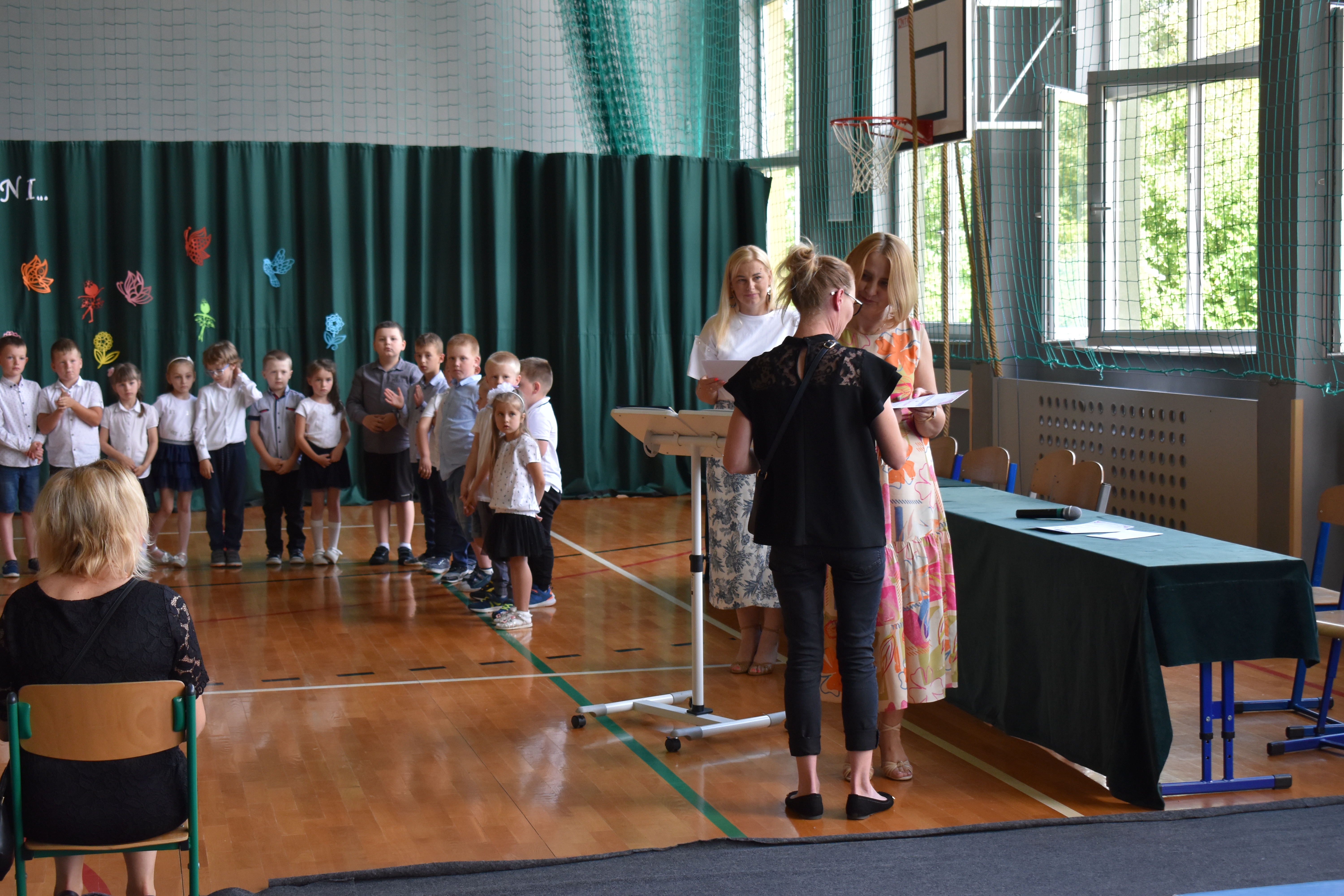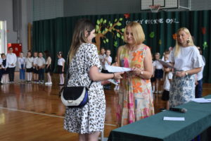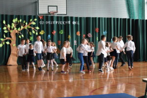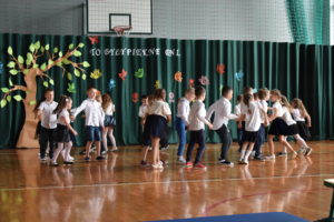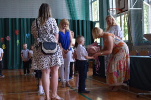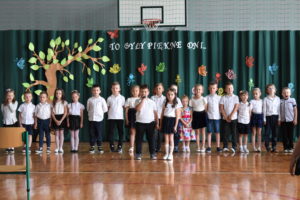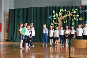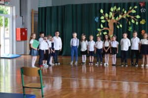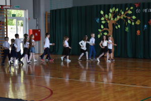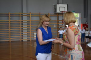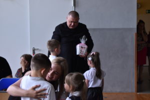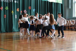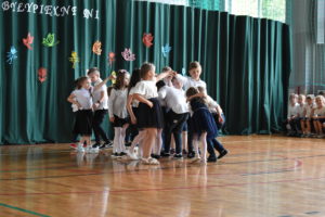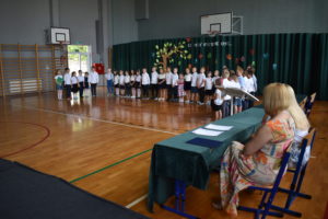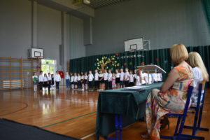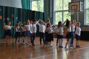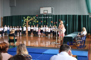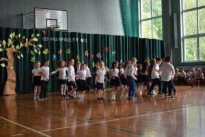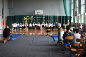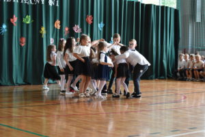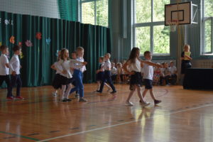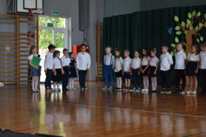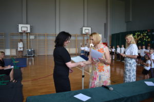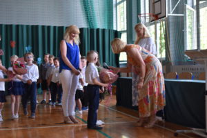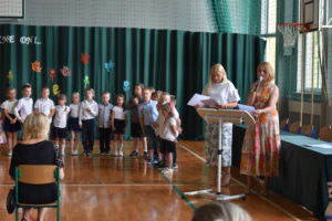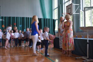 Na zakończenie roku dzieci zaprezentowały program artystyczny. Pięknie recytowały wierszyki, śpiewały piosenki oraz tańczyły. Podziękowały Paniom Dyrektor, nauczycielom i rodzicom za trud włożony w ich edukację. Na zakończenie uroczystości głos zabrała Pani Dyrektor, która życzyła wszystkim dzieciom samych sukcesów w ich dalszej edukacji oraz udanych i bezpiecznych wakacji. Wszystkie dzieci otrzymały dyplomy ukończenia zerówki oraz upominki.