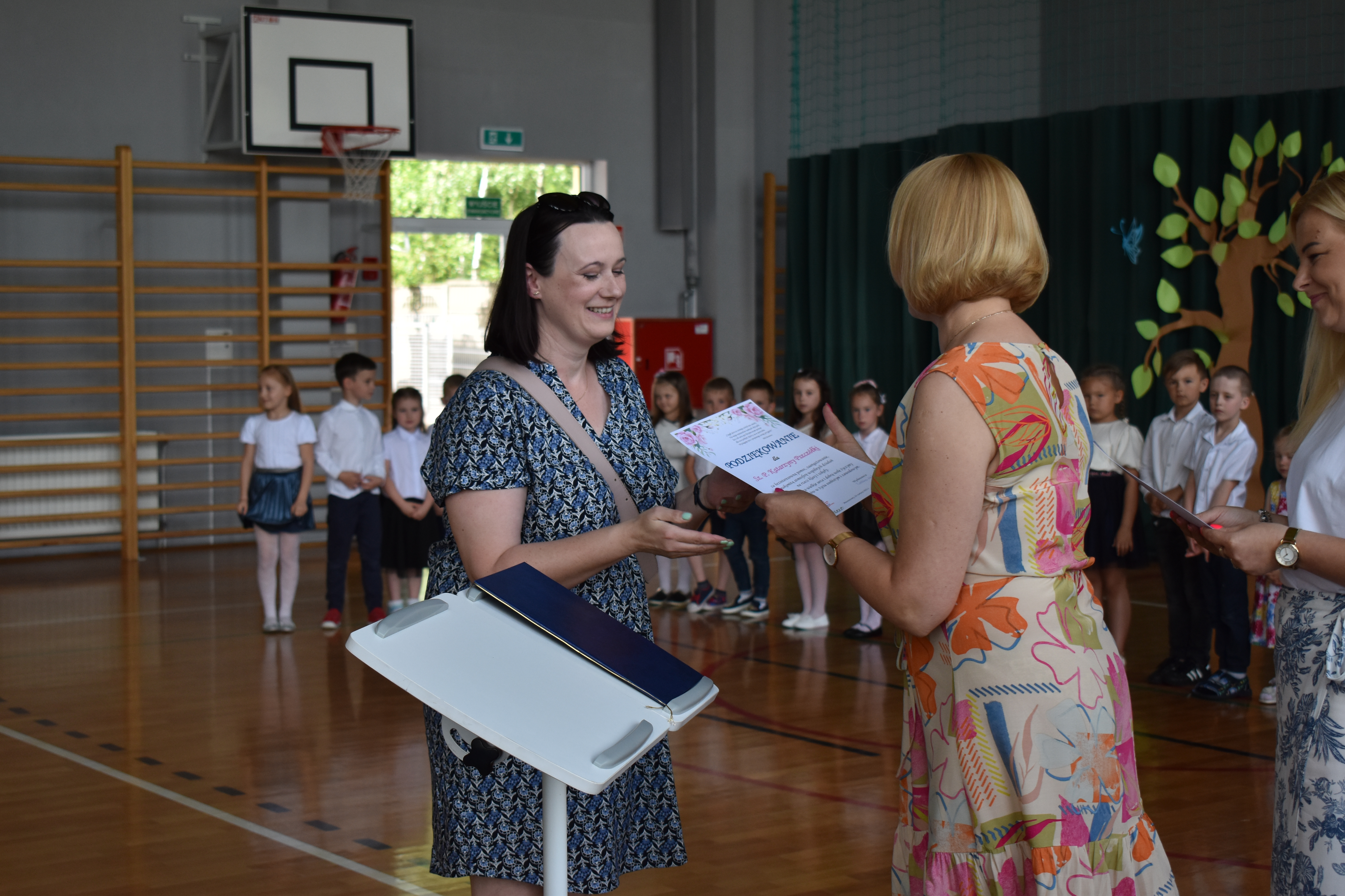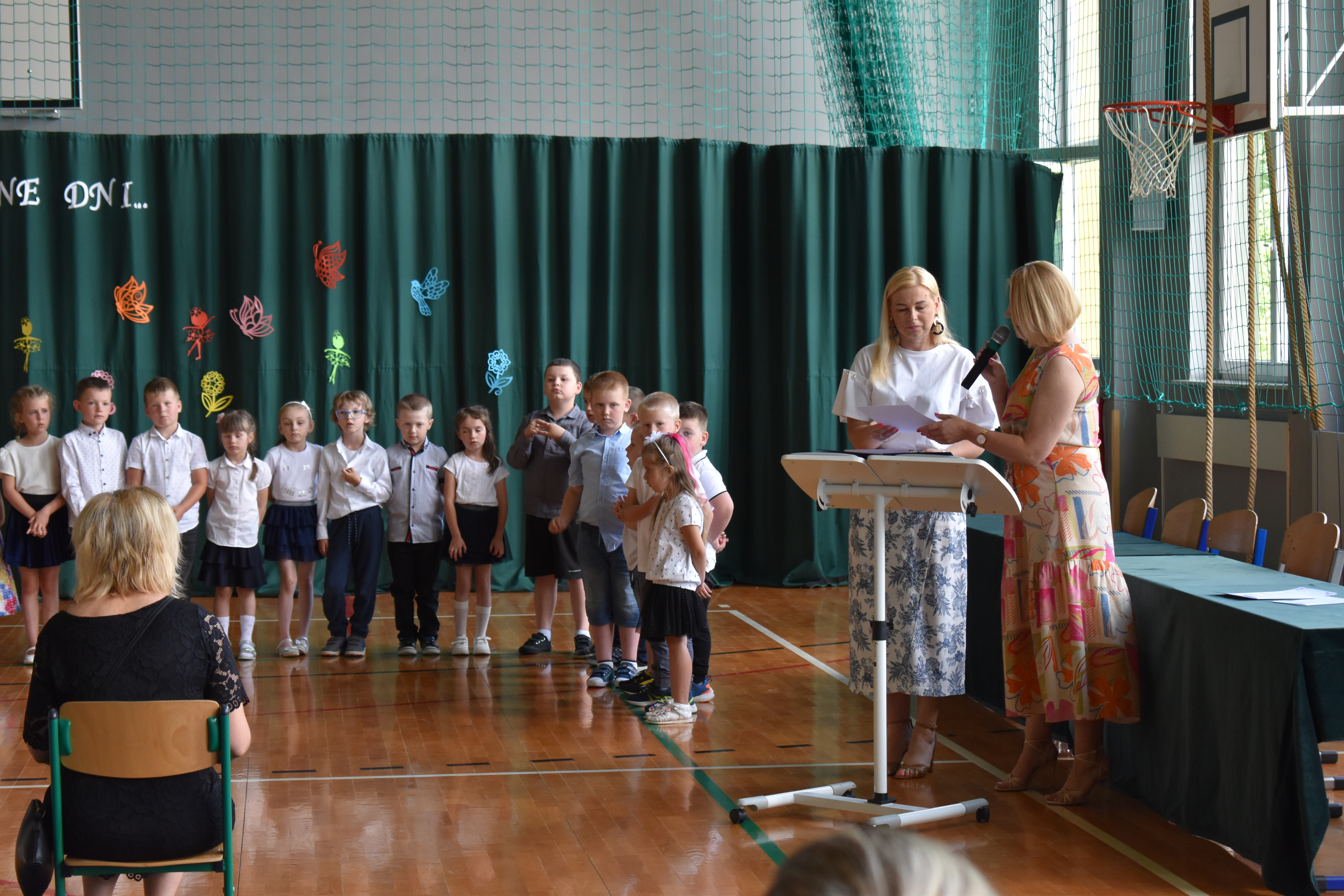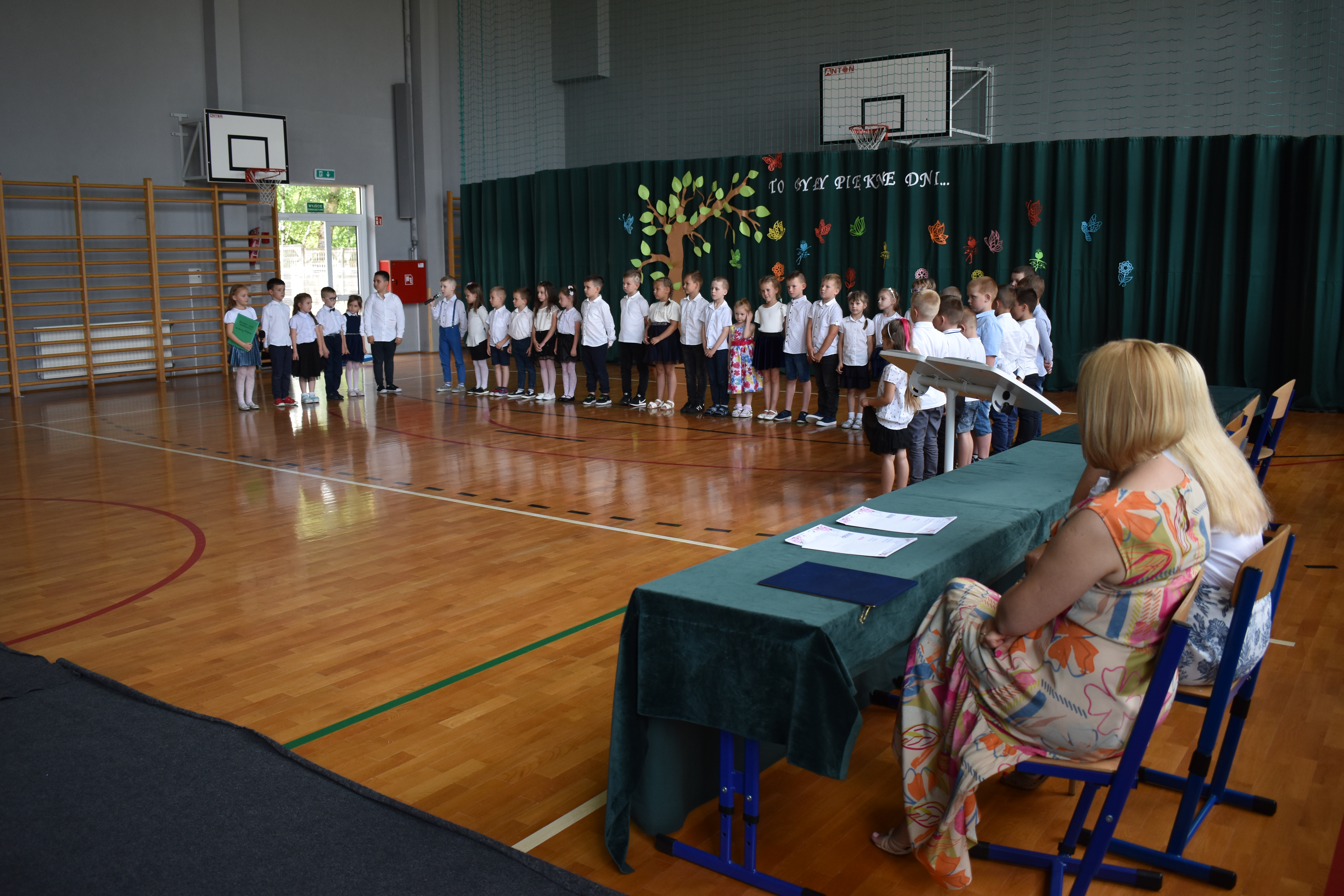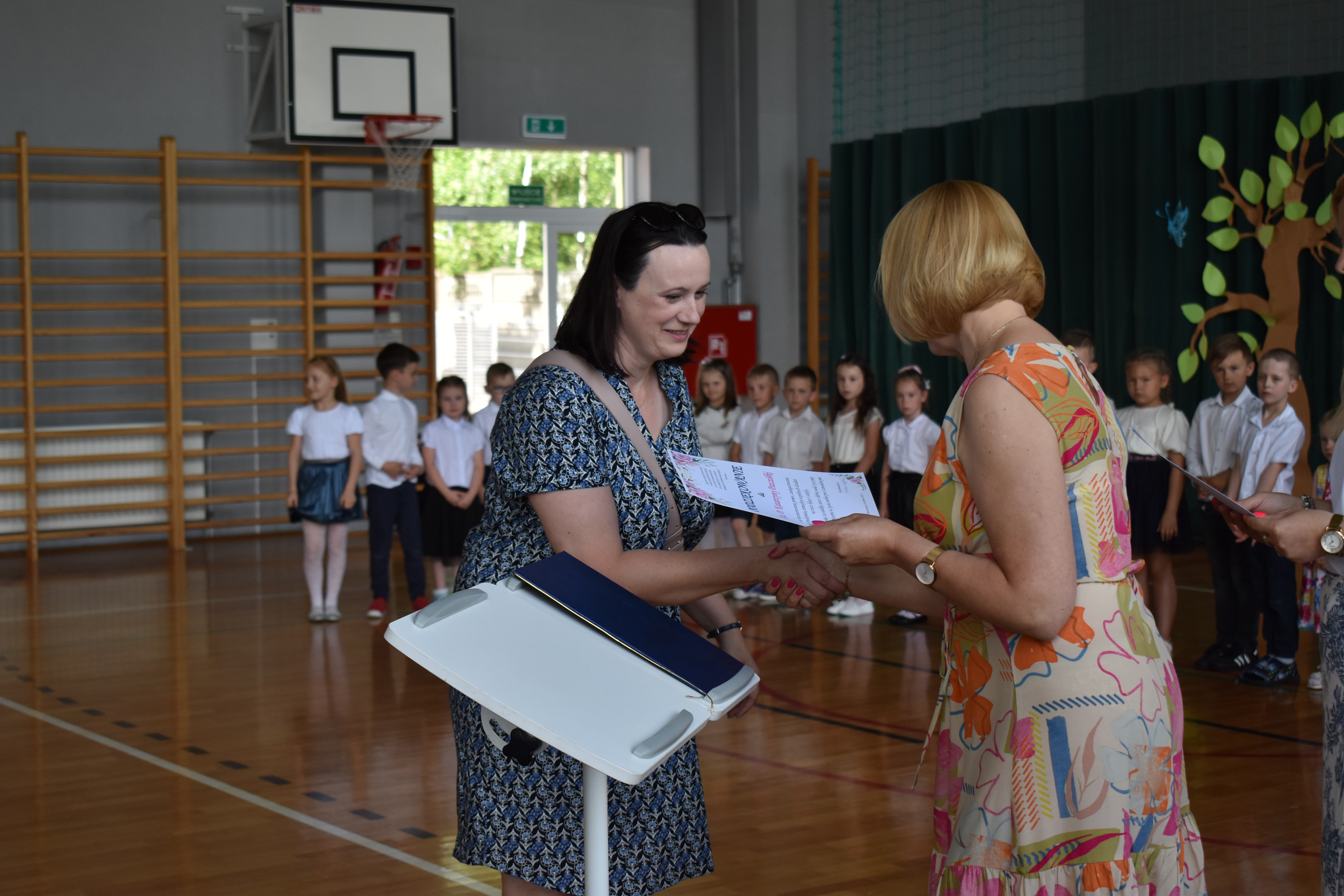 Na zakończenie roku dzieci zaprezentowały program artystyczny. Pięknie recytowały wierszyki, śpiewały piosenki oraz tańczyły. Podziękowały Paniom Dyrektor, nauczycielom i rodzicom za trud włożony w ich edukację. Na zakończenie uroczystości głos zabrała Pani Dyrektor, która życzyła wszystkim dzieciom samych sukcesów w ich dalszej edukacji oraz udanych i bezpiecznych wakacji. Wszystkie dzieci otrzymały dyplomy ukończenia zerówki oraz upominki.