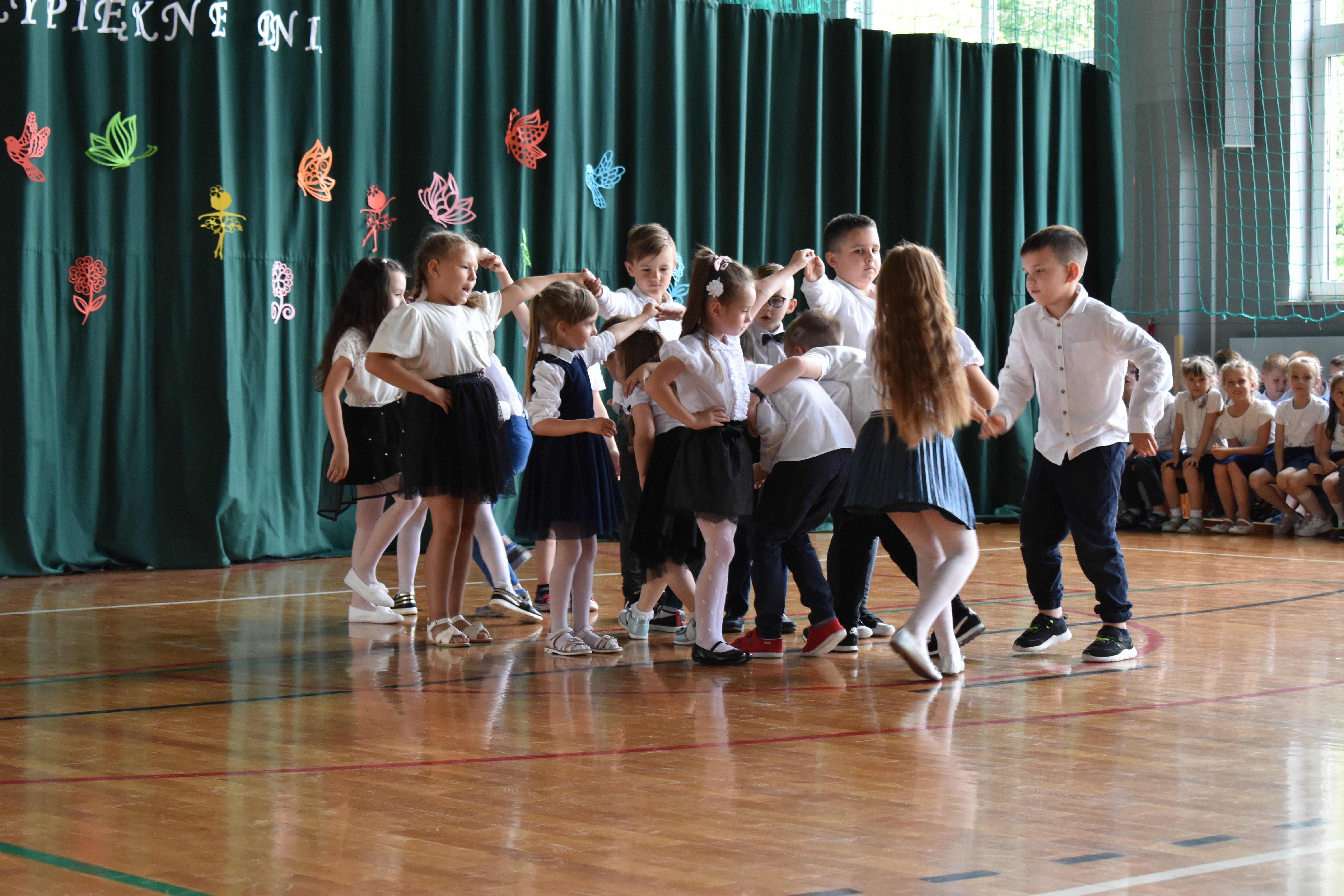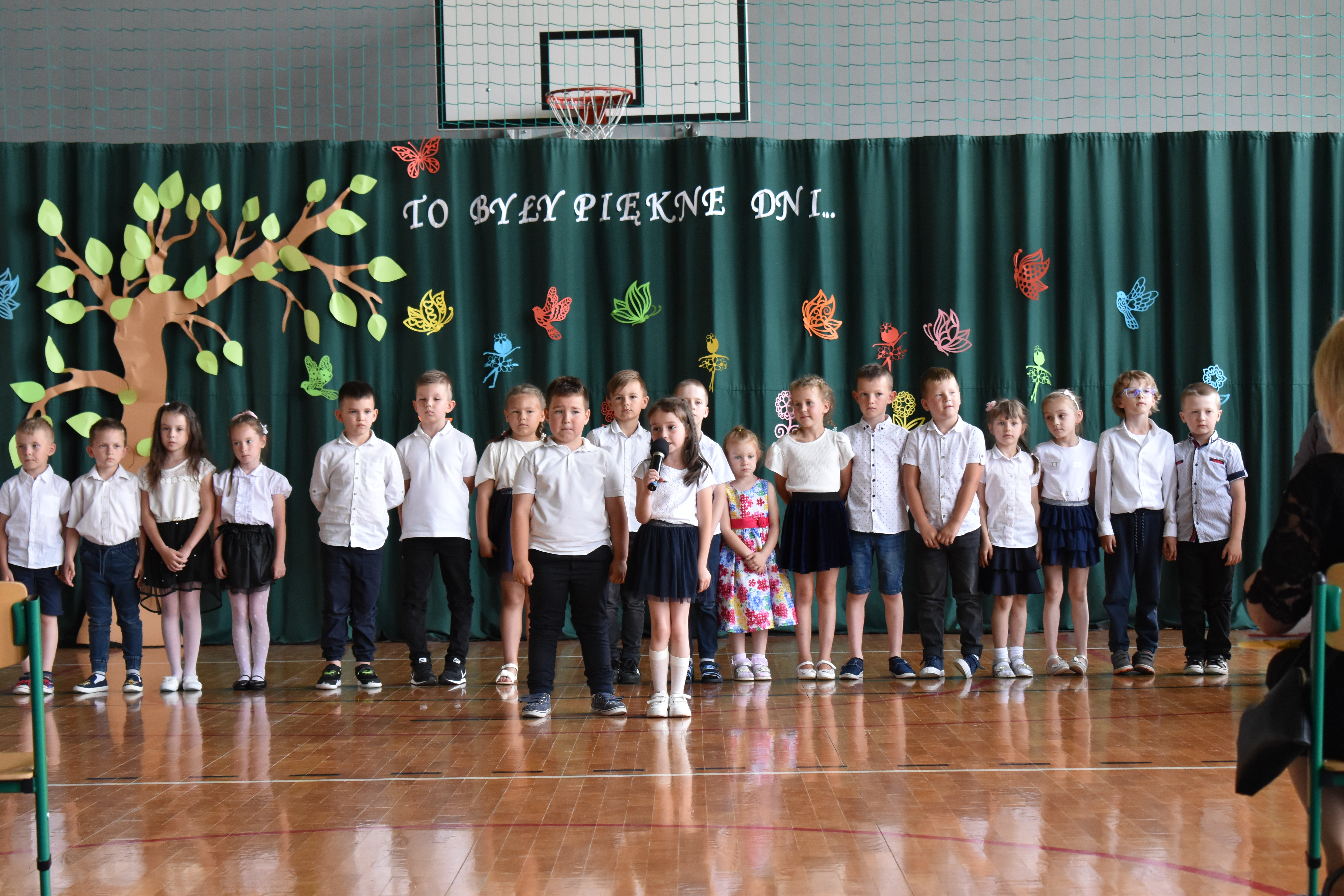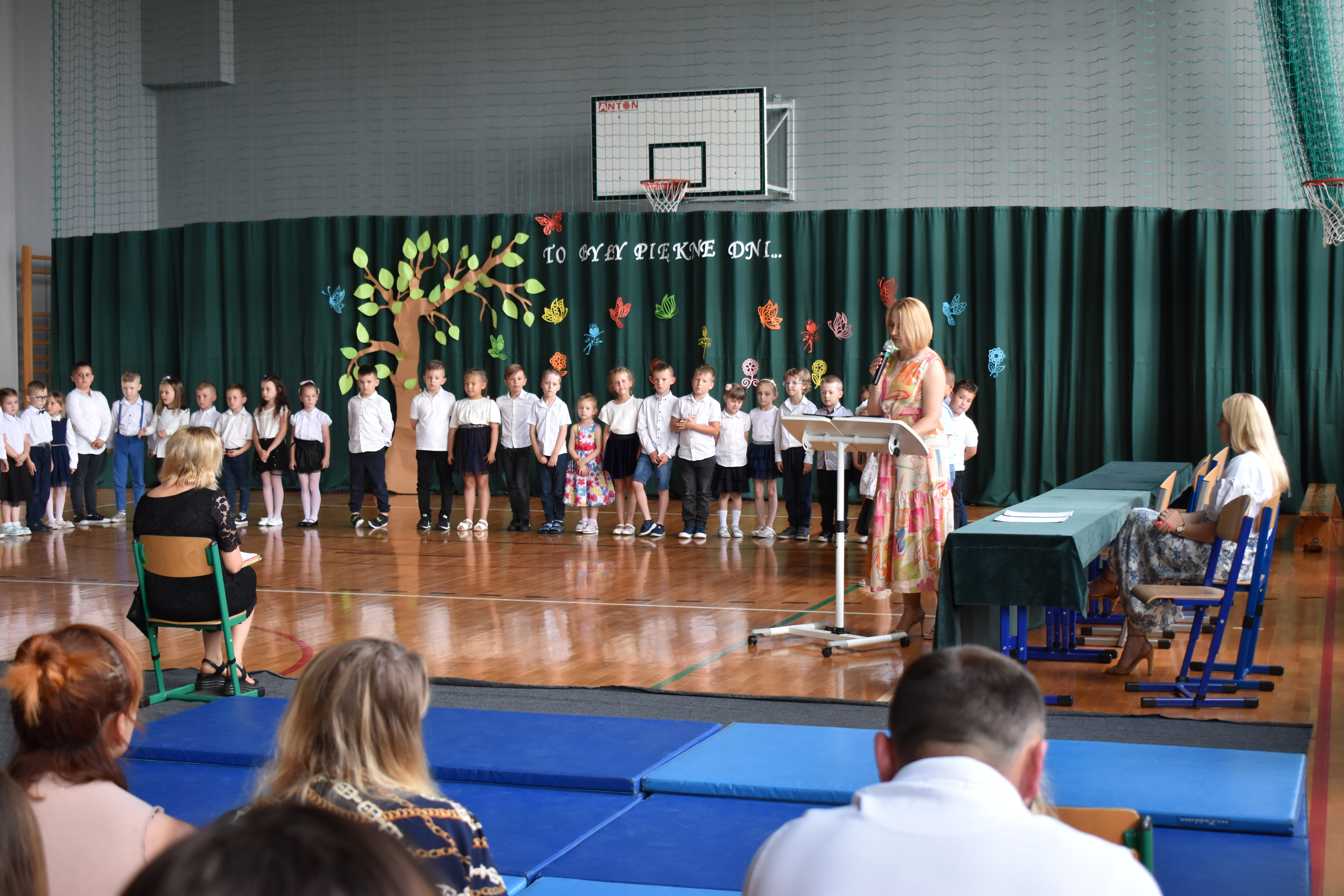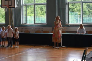Na zakończenie roku dzieci zaprezentowały program artystyczny. Pięknie recytowały wierszyki, śpiewały piosenki oraz tańczyły. Podziękowały Paniom Dyrektor, nauczycielom i rodzicom za trud włożony w ich edukację. Na zakończenie uroczystości głos zabrała Pani Dyrektor, która życzyła wszystkim dzieciom samych sukcesów w ich dalszej edukacji oraz udanych i bezpiecznych wakacji. Wszystkie dzieci otrzymały dyplomy ukończenia zerówki oraz upominki.