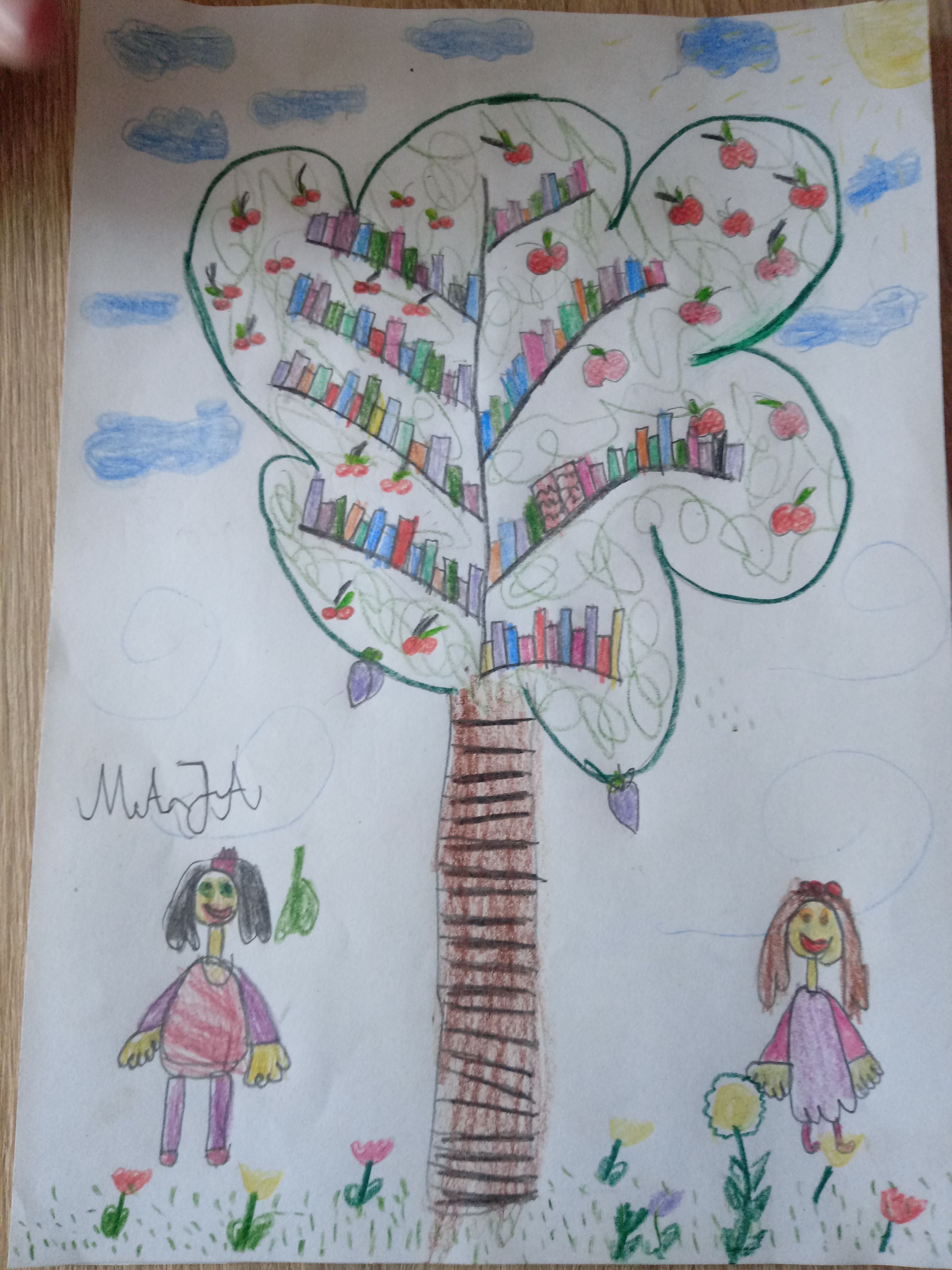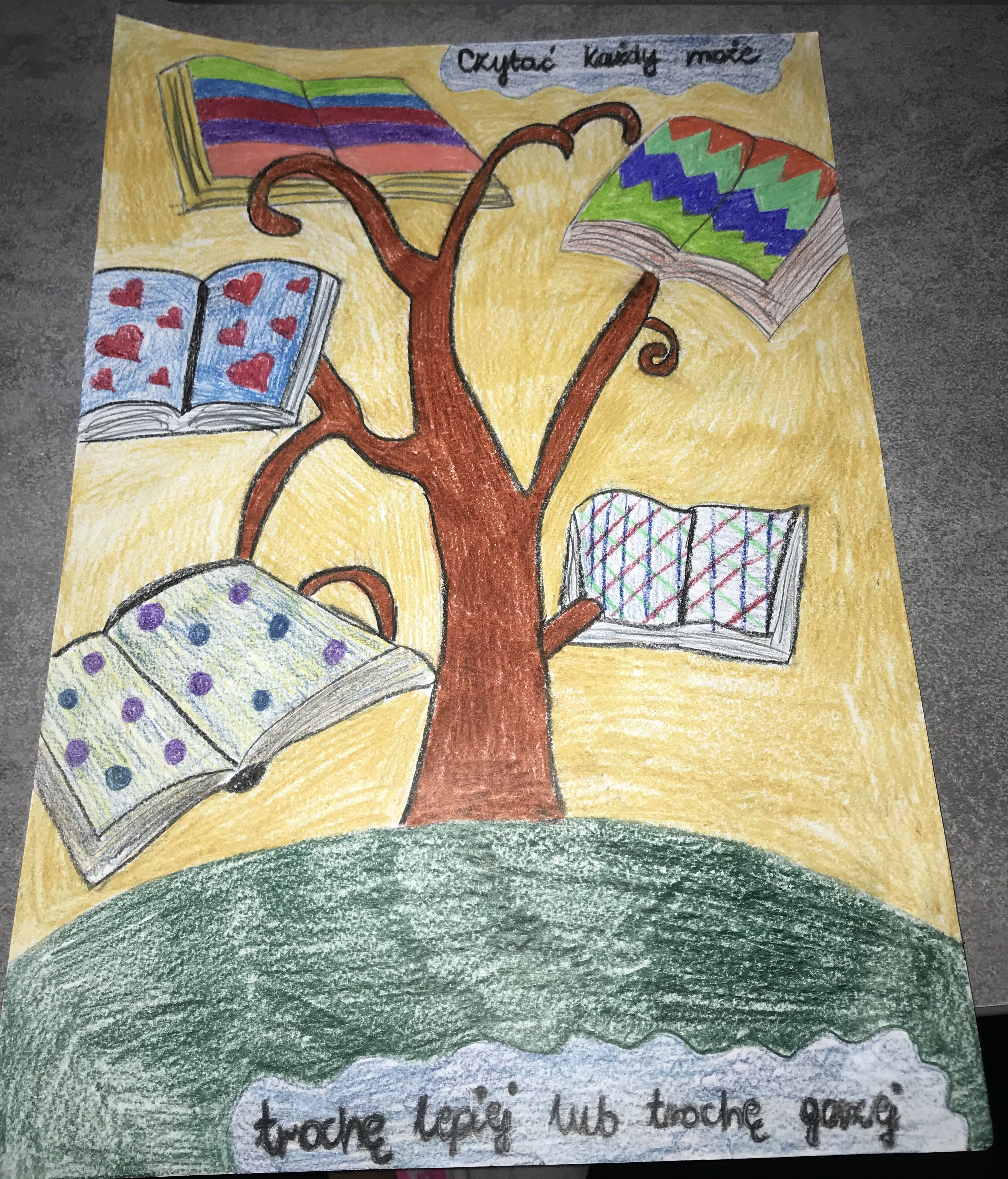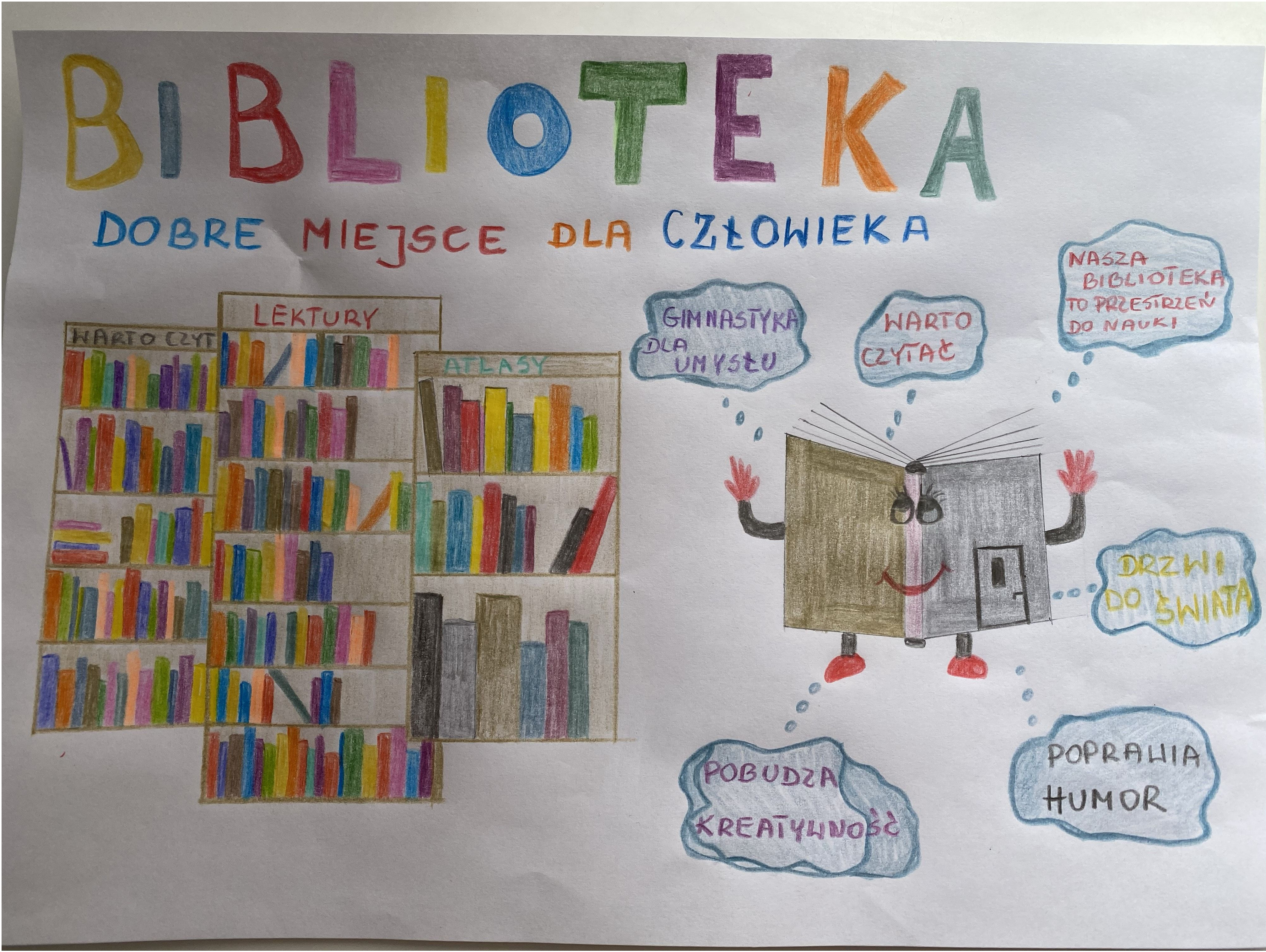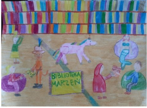 Uczniowie klas I-III zmierzyli się z tematem: „BIBLIOTEKA MOICH MARZEŃ”. W swoich pracach plastycznych przedstawiali wymarzoną bibliotekę, pokazywali, dlaczego lubią ją odwiedzać i jakie zbiory oraz jakich bohaterów literackich chcieliby tam spotkać. Najmłodsi dali się ponieść fantazji i swoim marzeniom! Wyobrazili sobie bibliotekę z hamakami, fotelami bujanymi, obsługiwaną przez postaci z bajek i baśni lub bibliotekę, w której serwuje się smakołyki z McDonalds, filmy Netflix itp.
