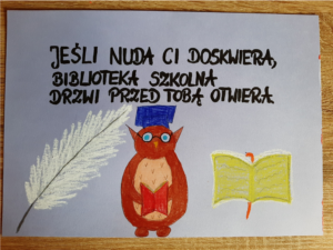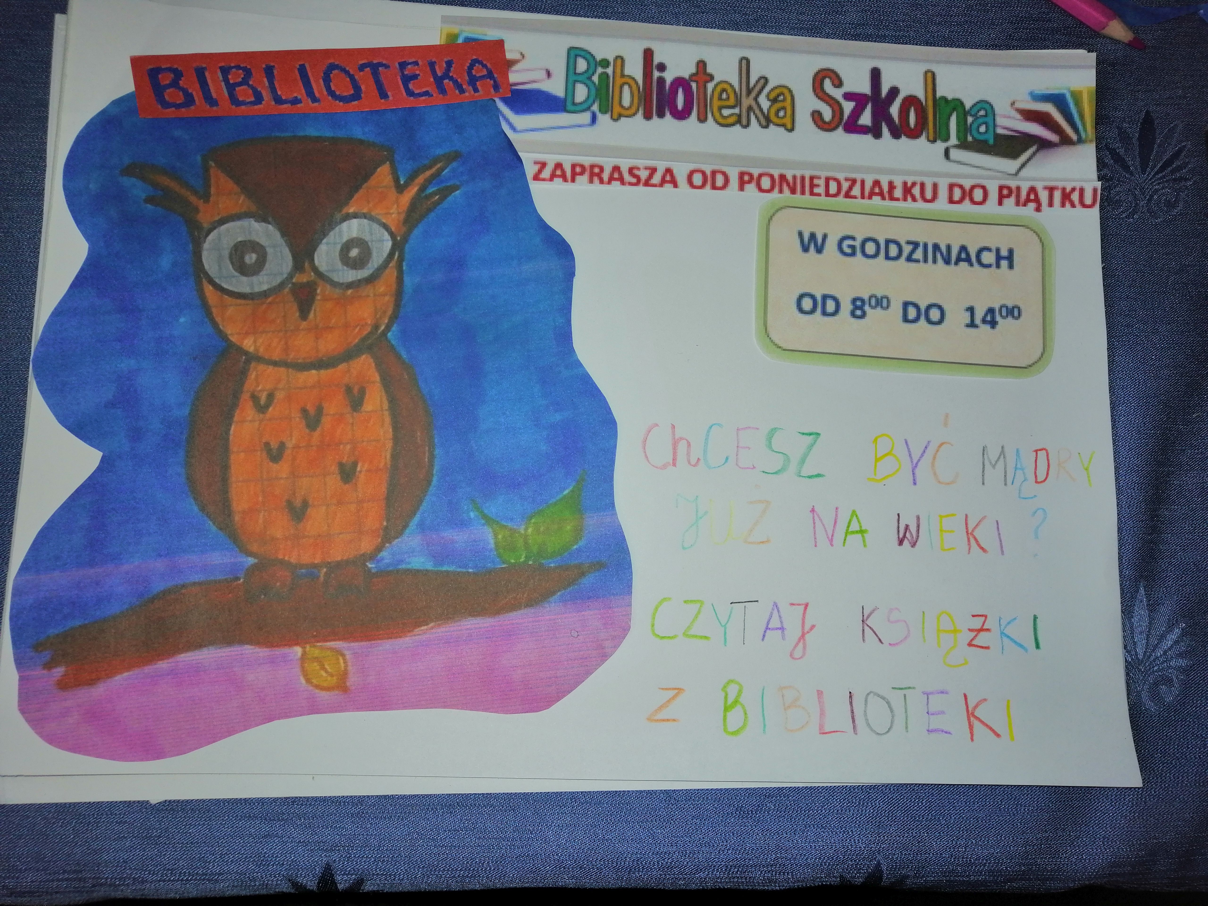 Zadaniem uczniów klas IV-VI było wykonanie plakatu, reklamującego bibliotekę szkolną i promującego jej działania. Uczniowie klas VII-VIII prezentowali hasła lub loga, promujące bibliotekę szkolną i czytelnictwo.