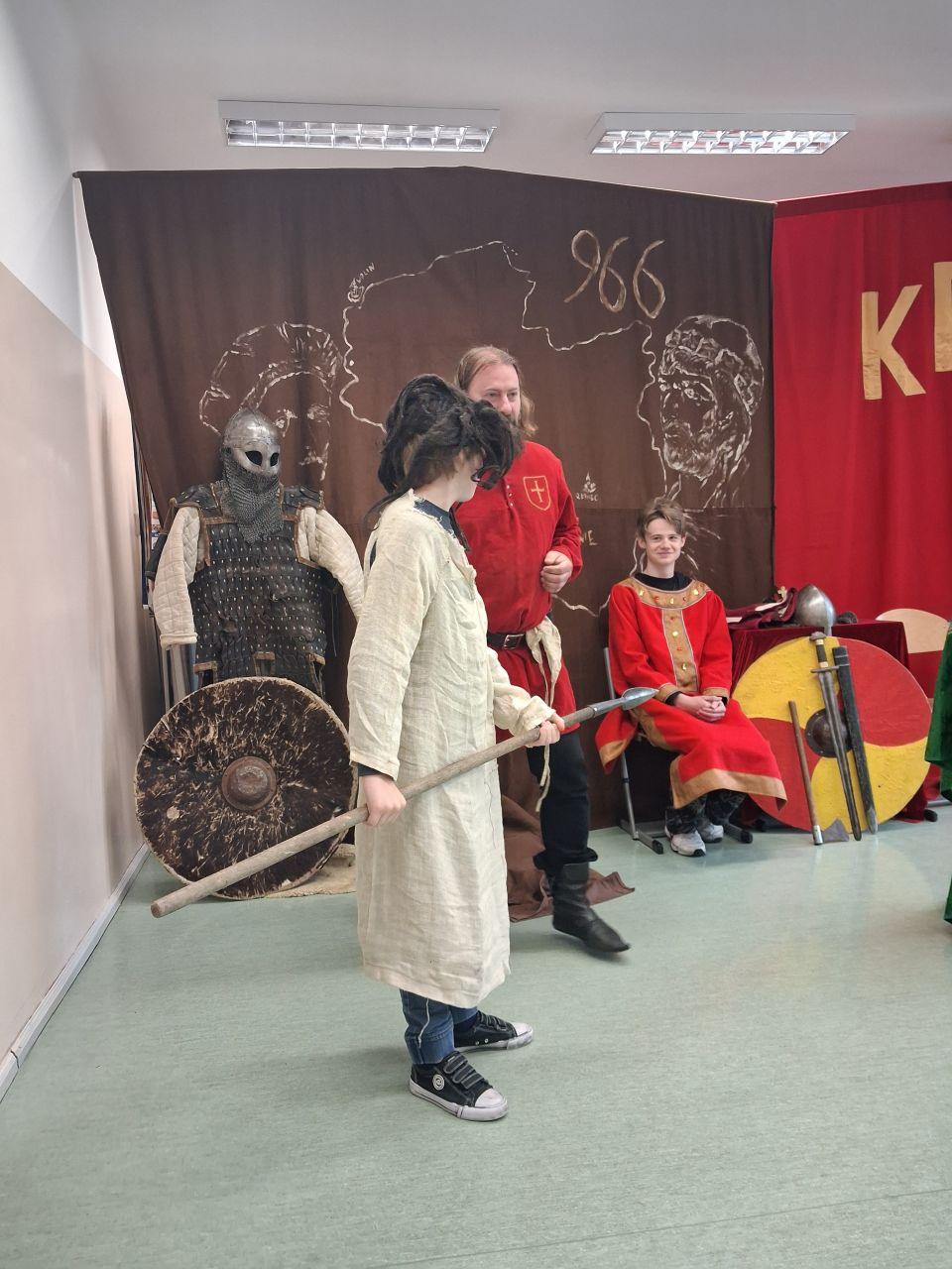 Podczas pokazu uczniowie zobaczyli autentyczne rekonstrukcje strojów i uzbrojenia, posłuchali opowieści o wyprawach wojennych, politycznych intrygach, a także sami angażowali się w odgrywanie historycznych ról.